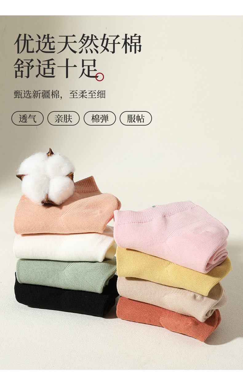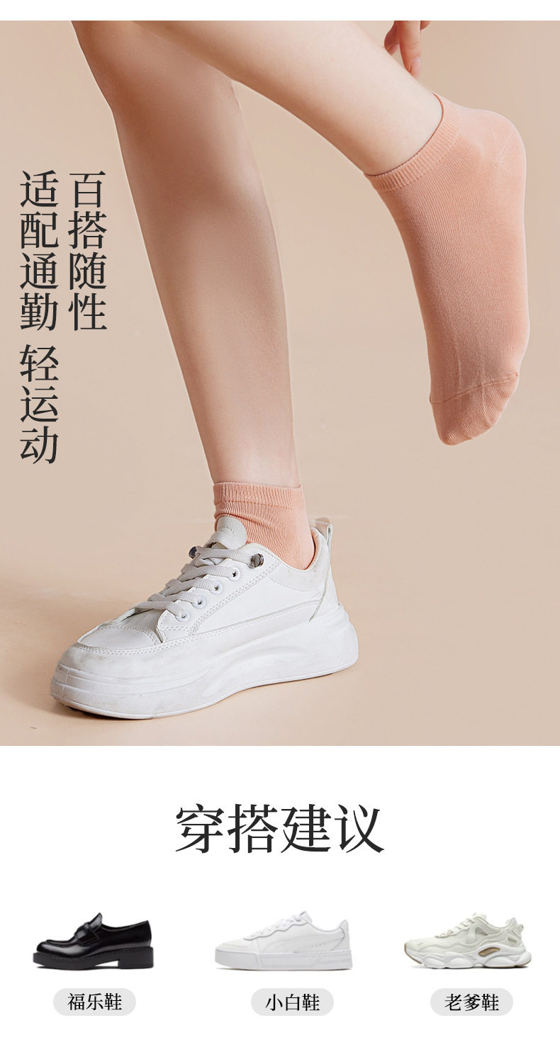SYWY-X05 【1双】袜子女春秋船袜不掉跟棉袜抗菌防臭女士透气休闲袜短袜白色