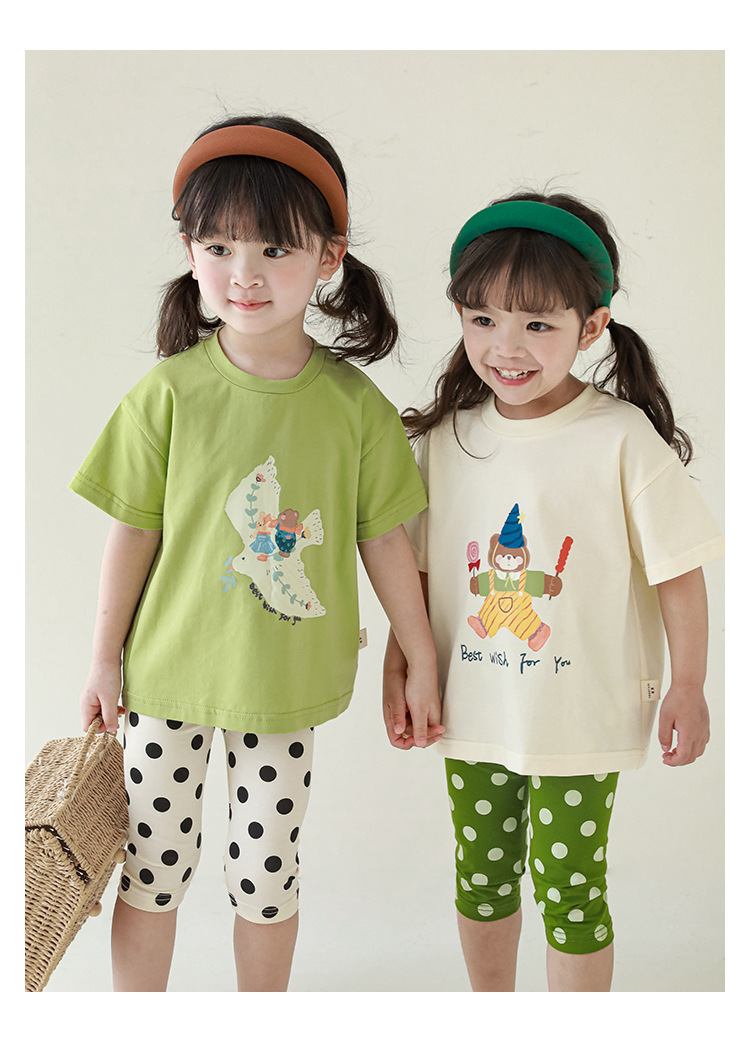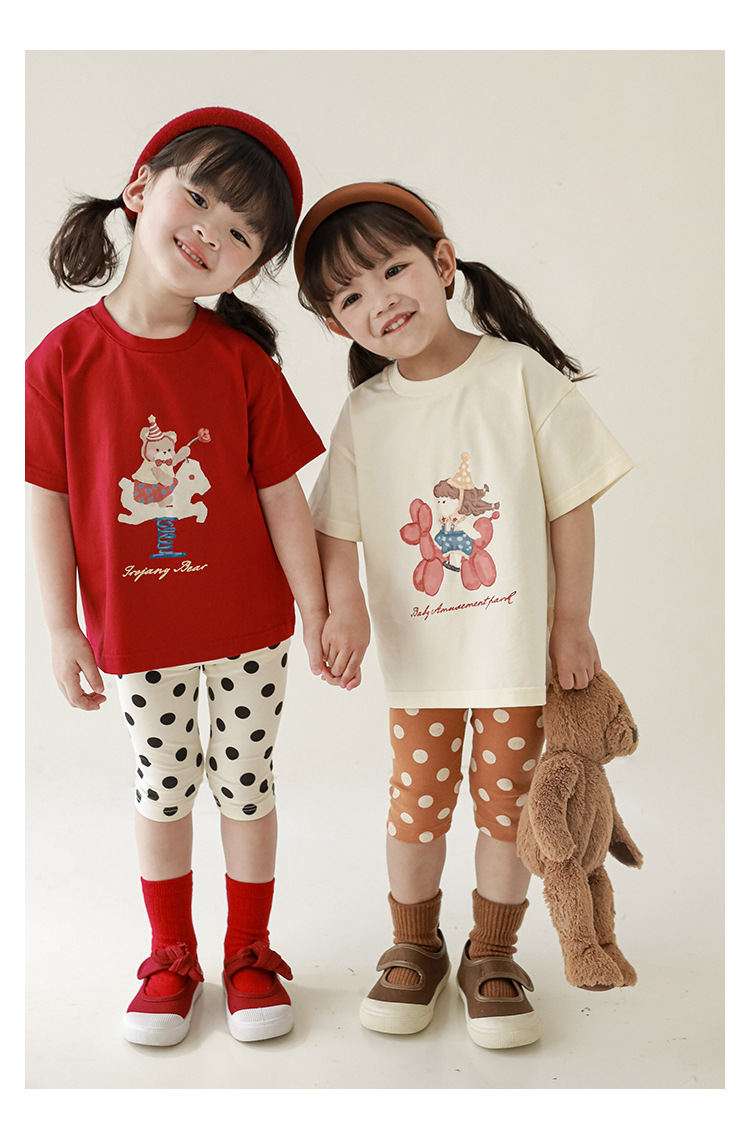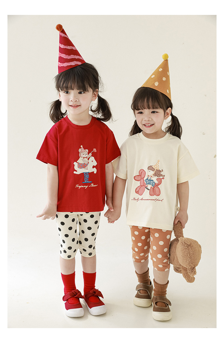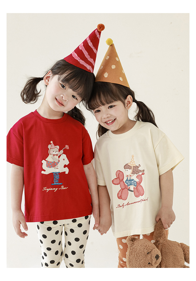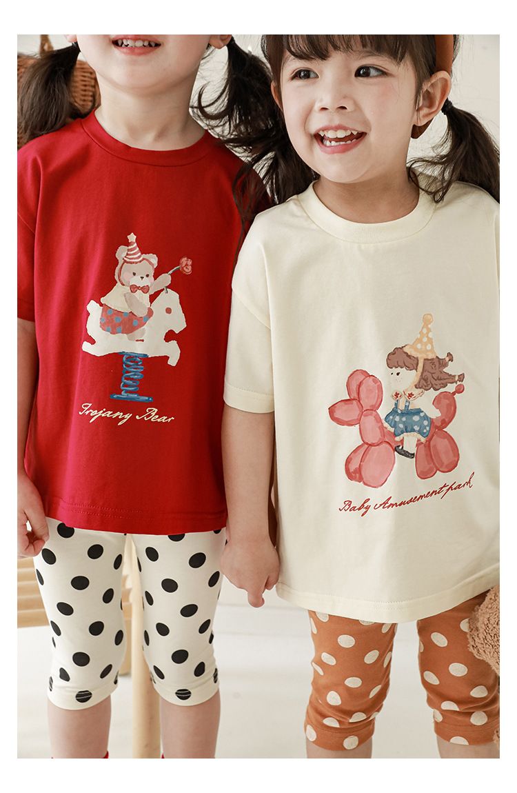 女童春夏宽松童装T恤趣味印花弹力针织纯棉男宝宝短袖复古舒适潮