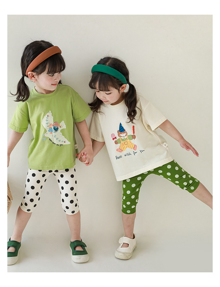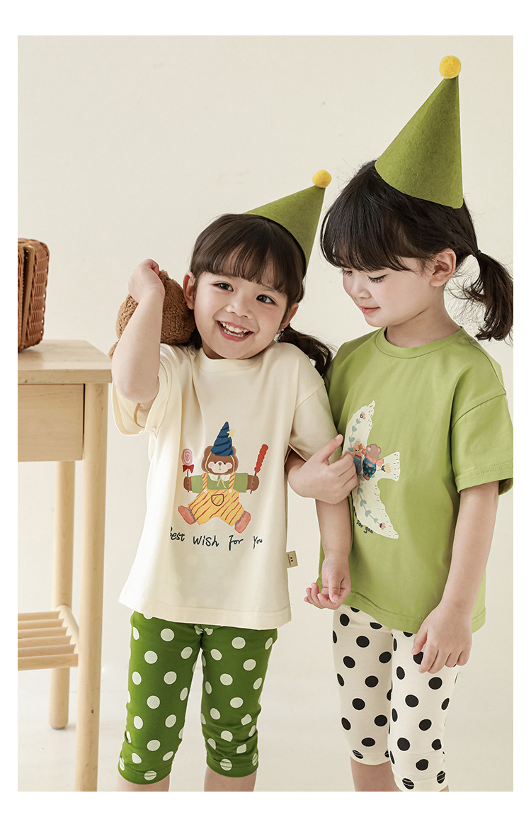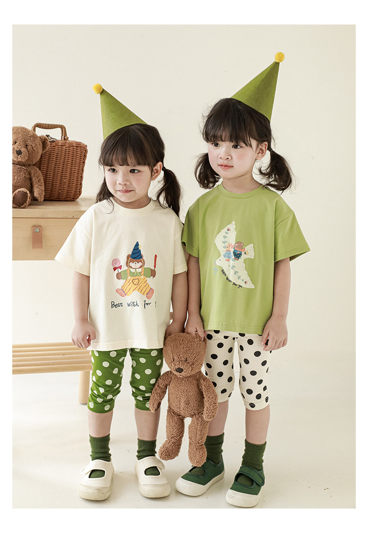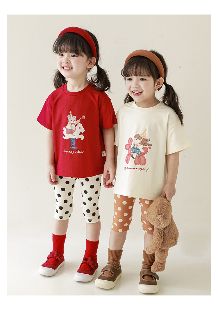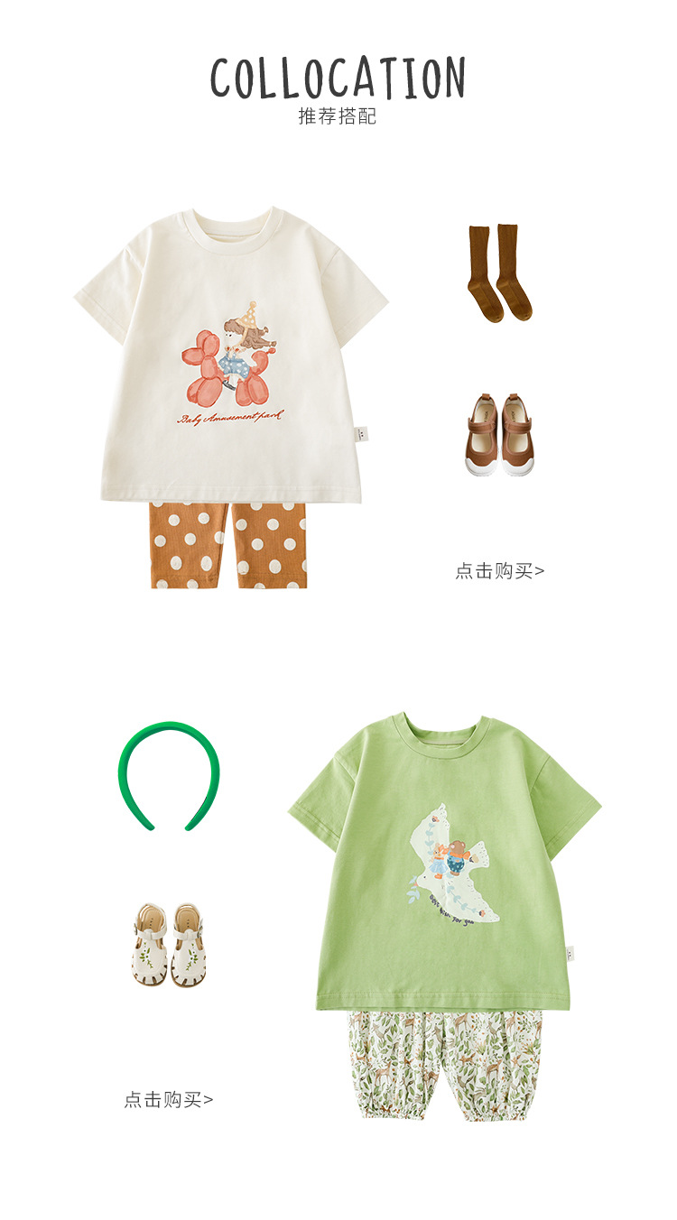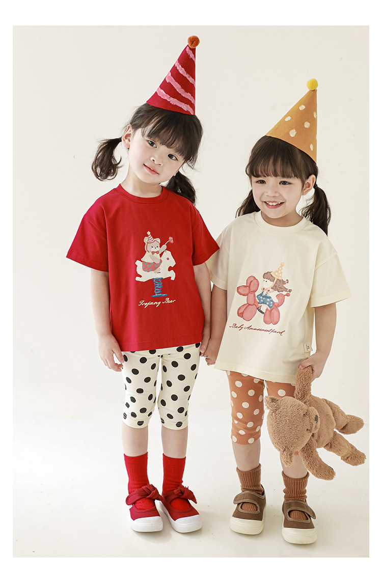 女童春夏宽松童装T恤趣味印花弹力针织纯棉男宝宝短袖复古舒适潮