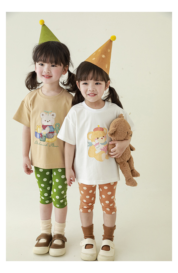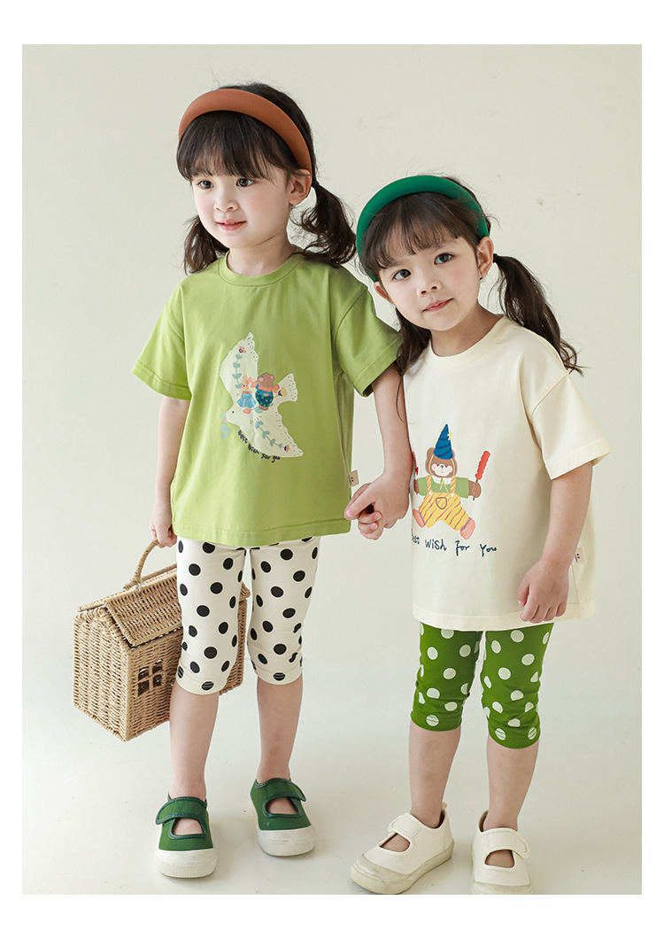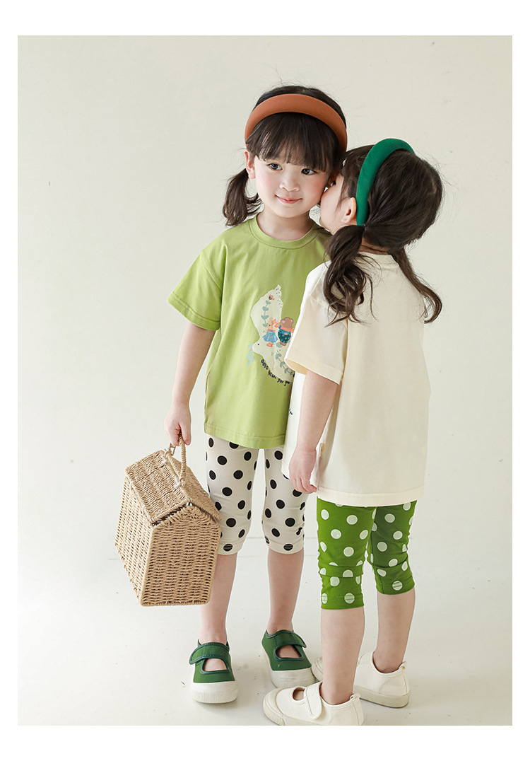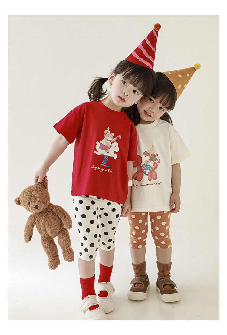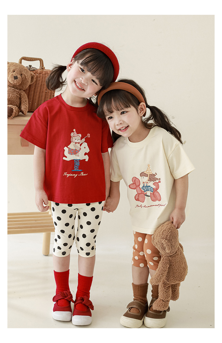 女童春夏宽松童装T恤趣味印花弹力针织纯棉男宝宝短袖复古舒适潮