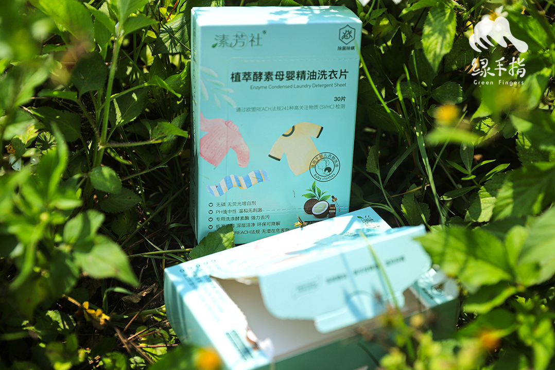 植萃酵素母婴洗衣片经过潜心研发,成功推出了成分天然无毒、环保无害的高浓缩洗衣片产品,告别塑料瓶包装。这款洗衣片为浓缩型设计,使用时只需将其放入水中,简单便捷。使用洗衣片,每年可为您减少至少 5 个塑料瓶的使用,体积小巧,有效降低运输过程中的碳排放,真正实现了一次性塑料瓶使用模式的创新变革。