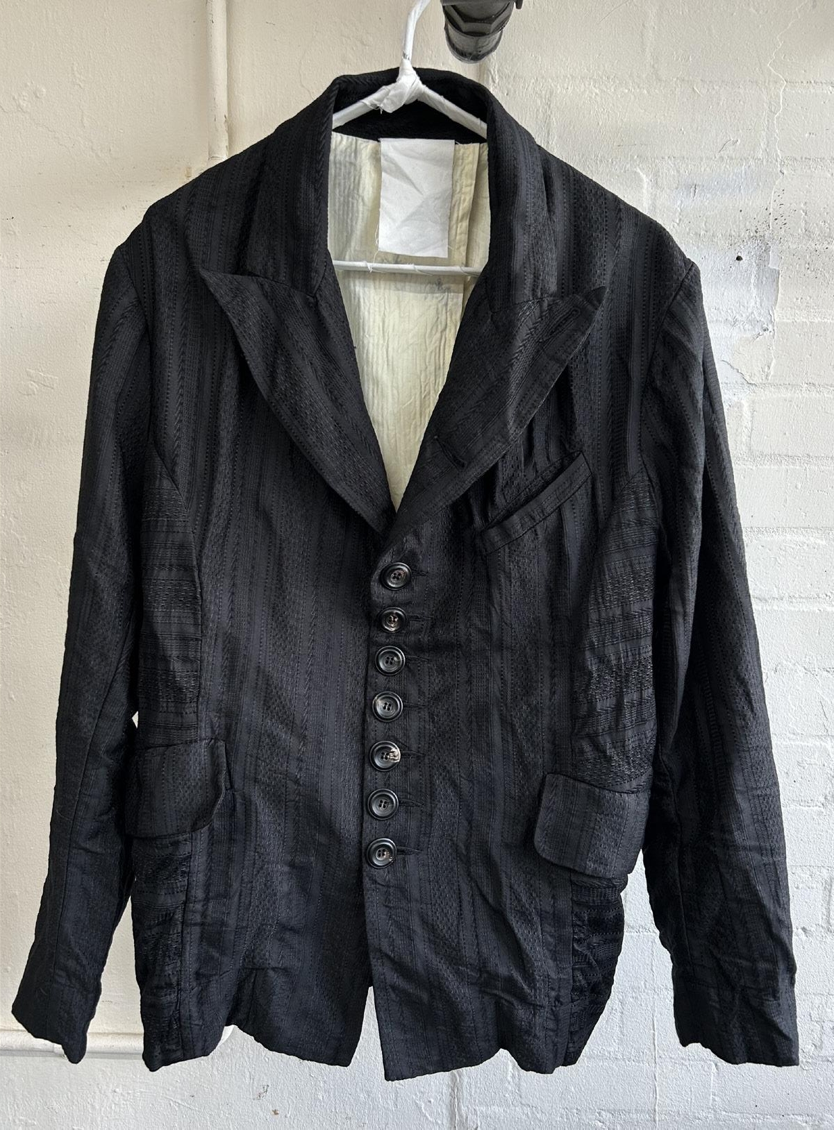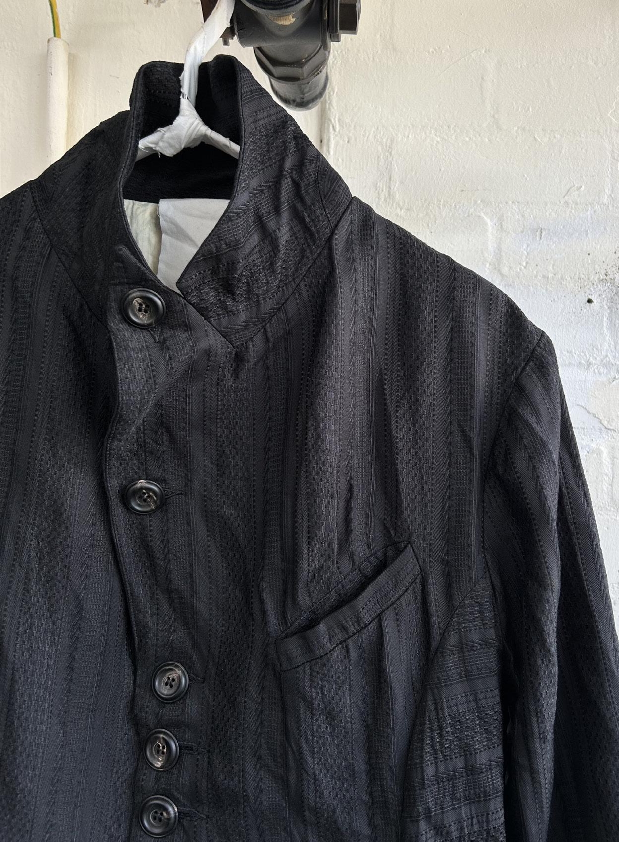 John Alexander Skelton 26SS 黑色英国条纹提花真丝诗人夹克