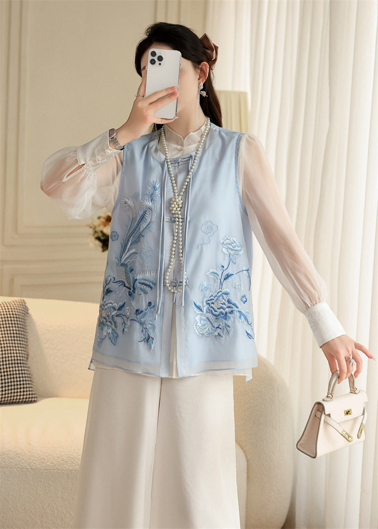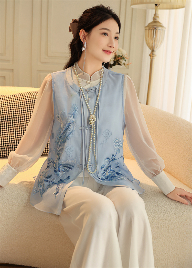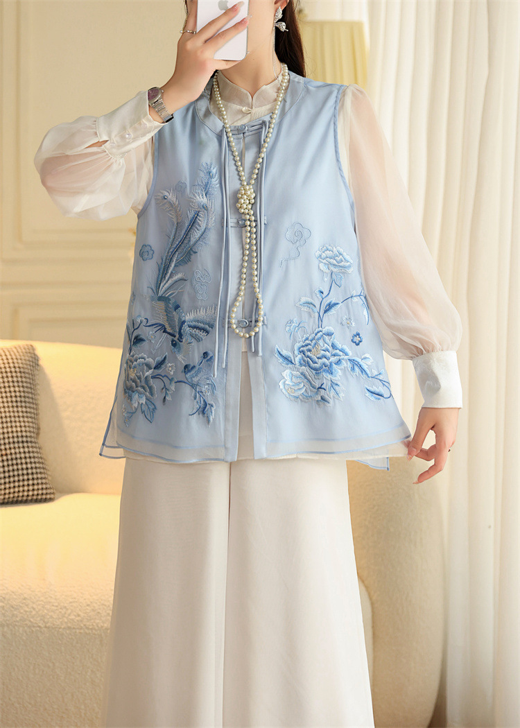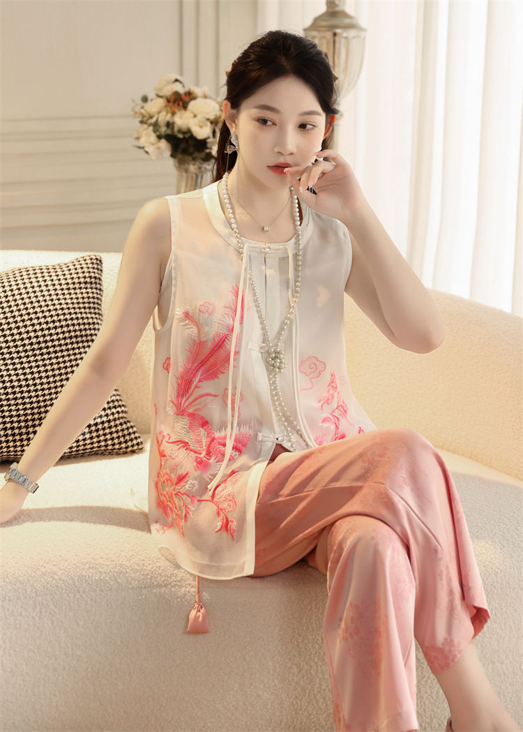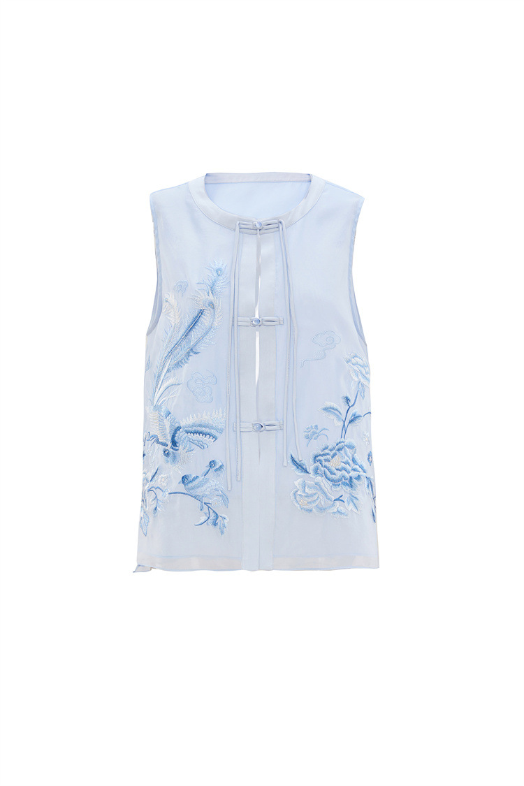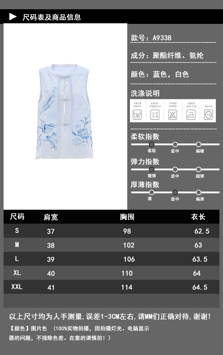 FLZD-A9338新中式国风马甲感云丝改良无袖上衣女夏重工凤凰刺绣宽松9338