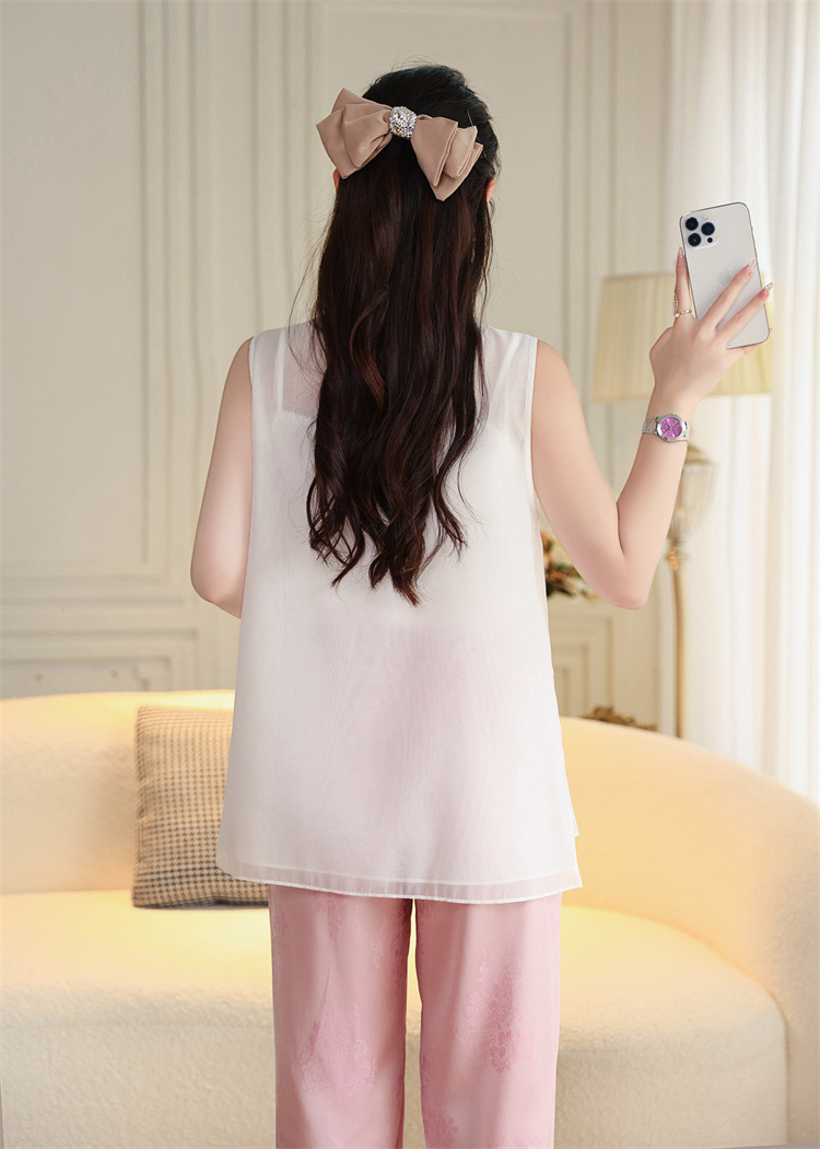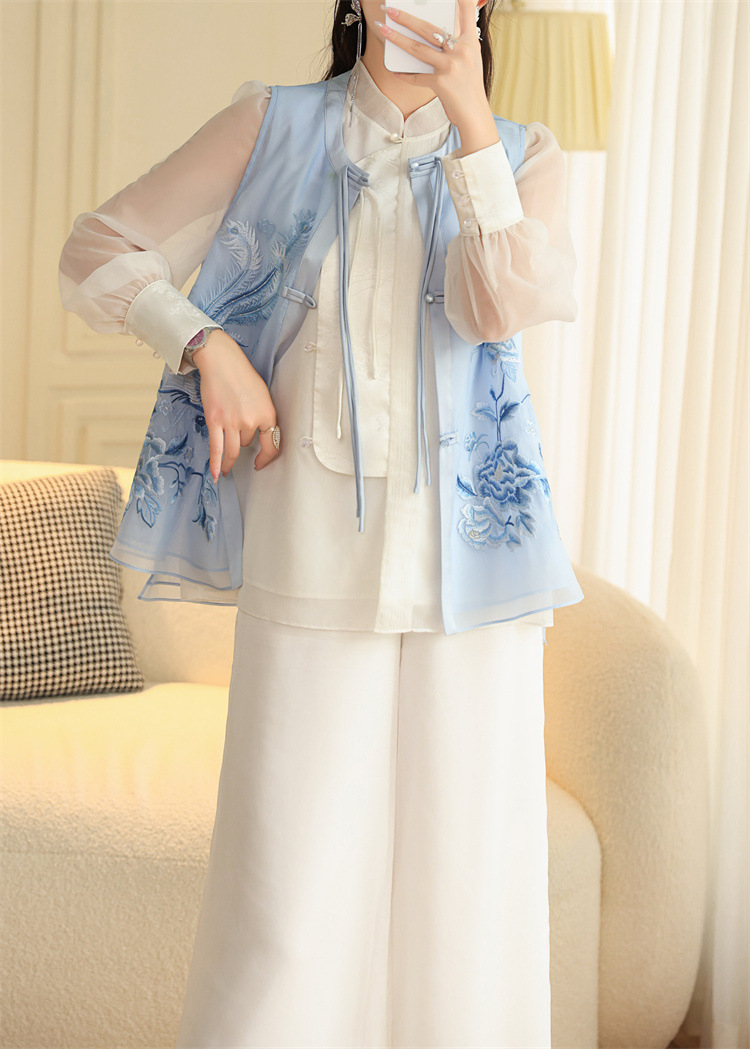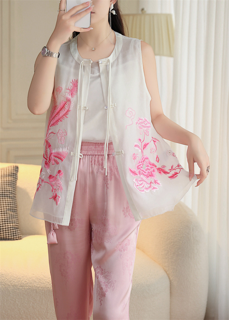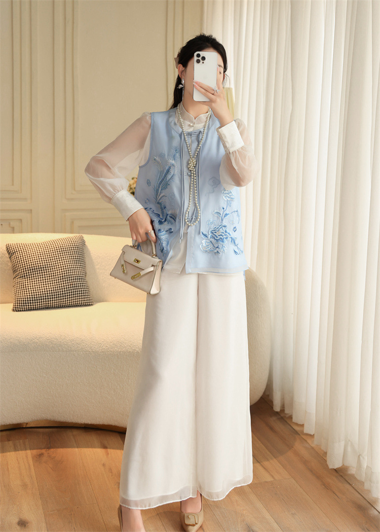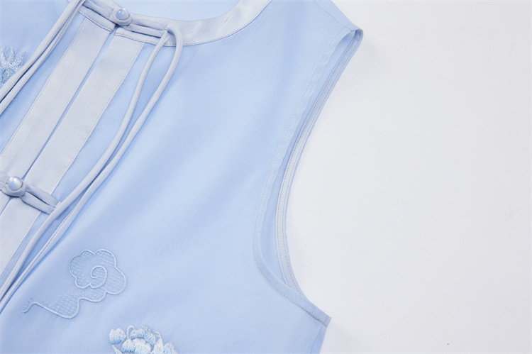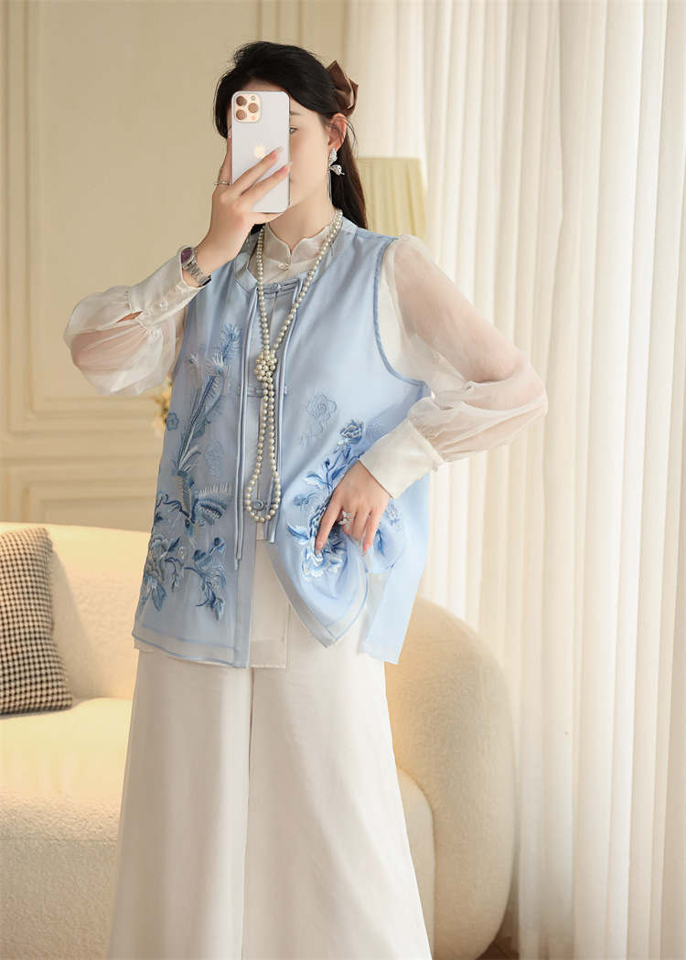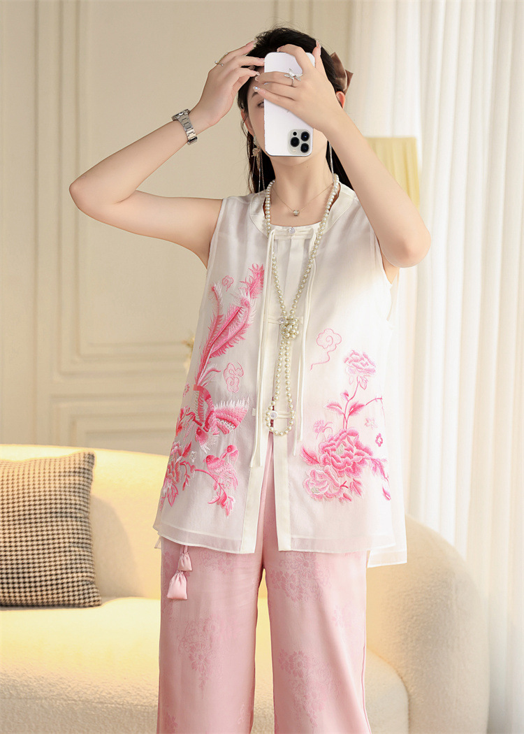 FLZD-A9338新中式国风马甲感云丝改良无袖上衣女夏重工凤凰刺绣宽松9338