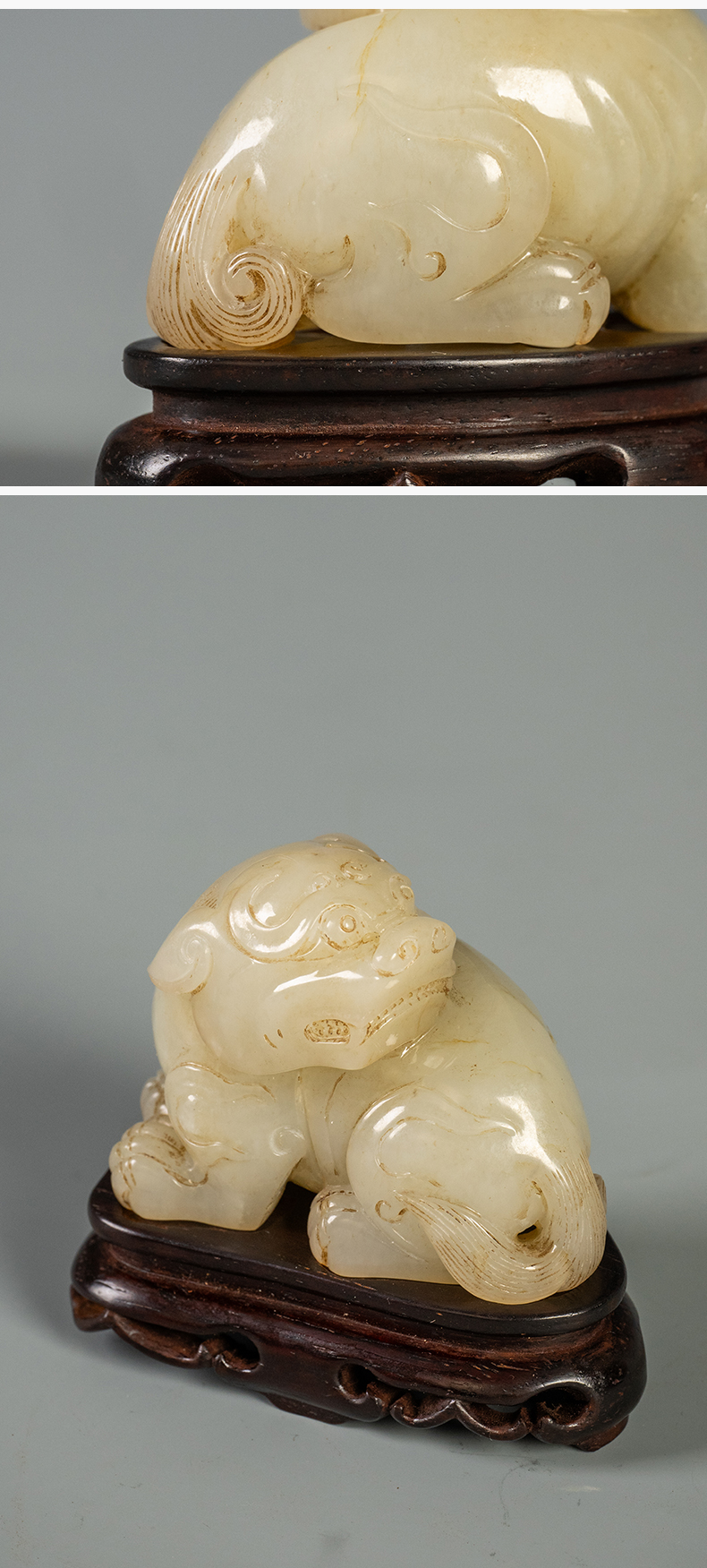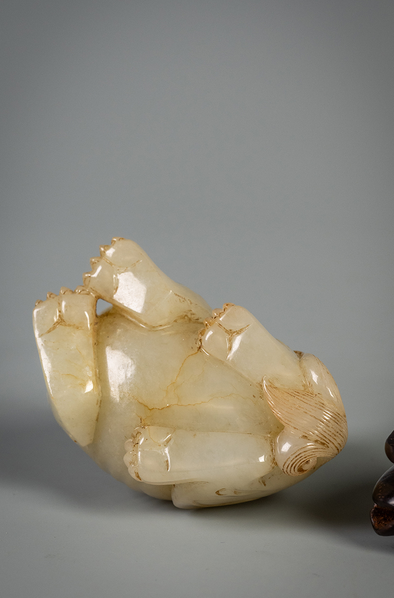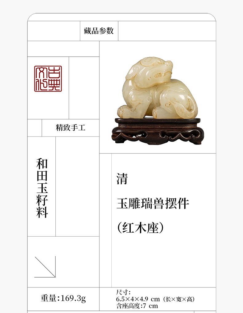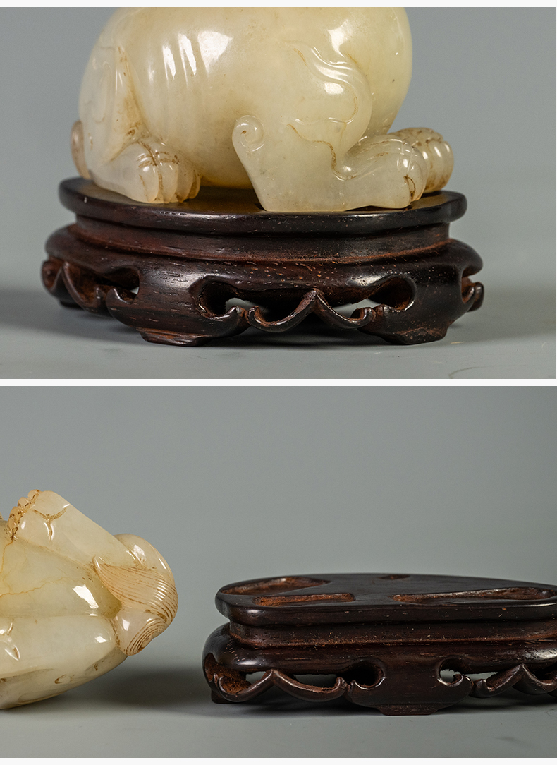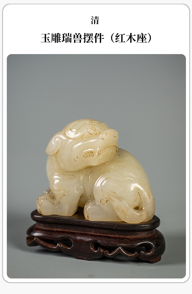 清 玉雕瑞兽摆件(红木座)