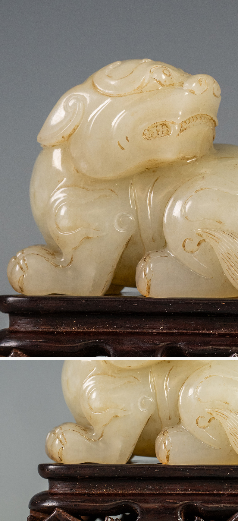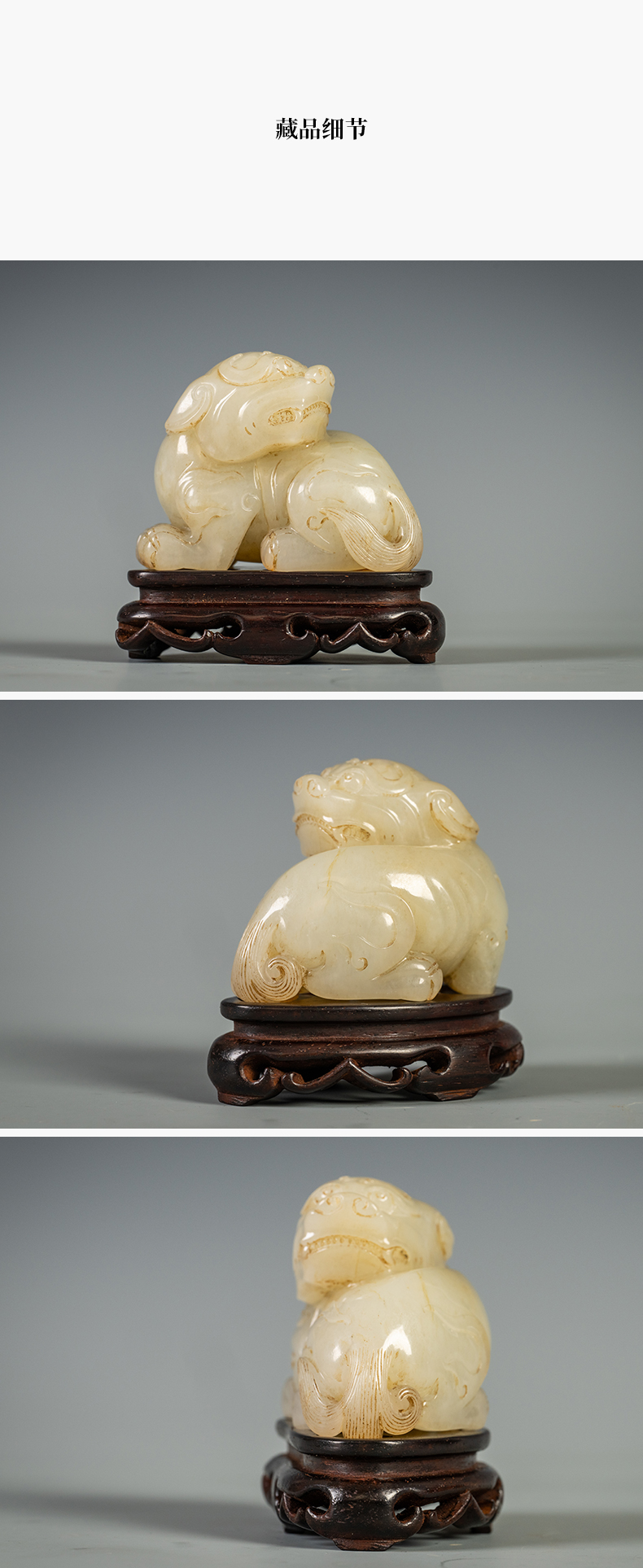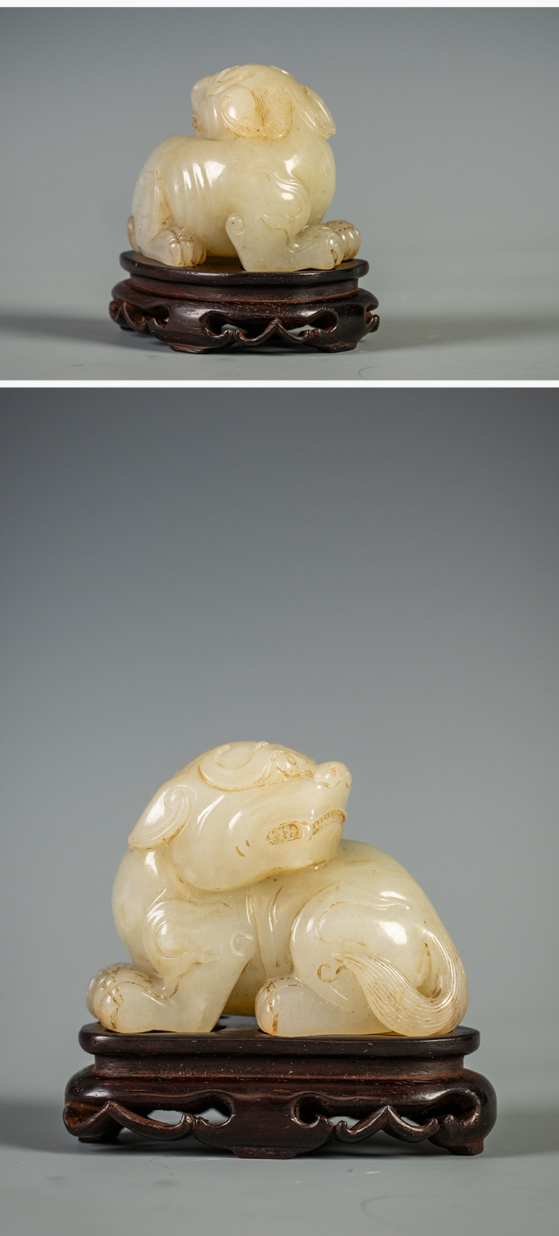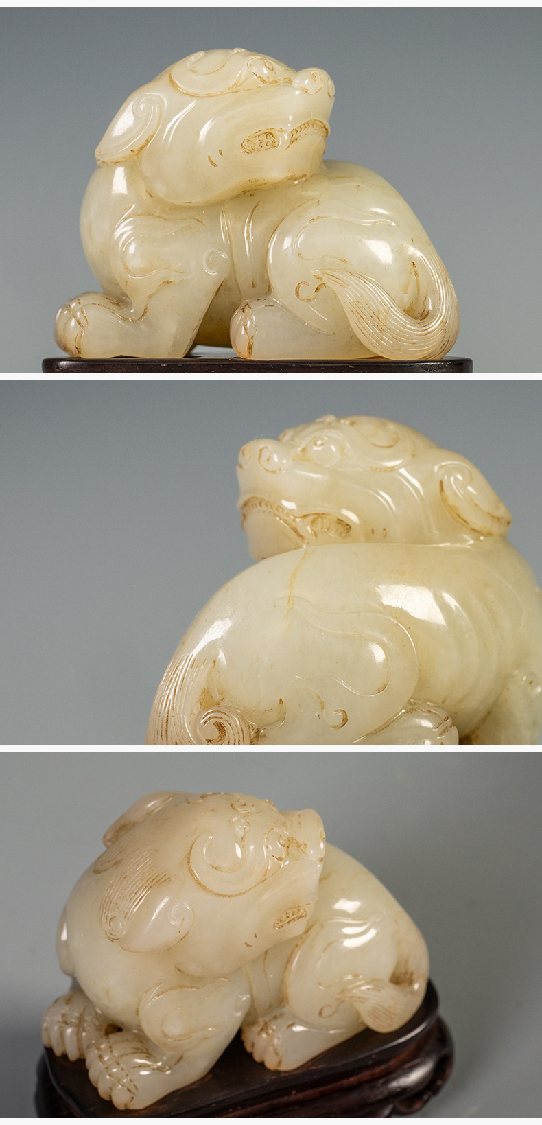 清 玉雕瑞兽摆件(红木座)