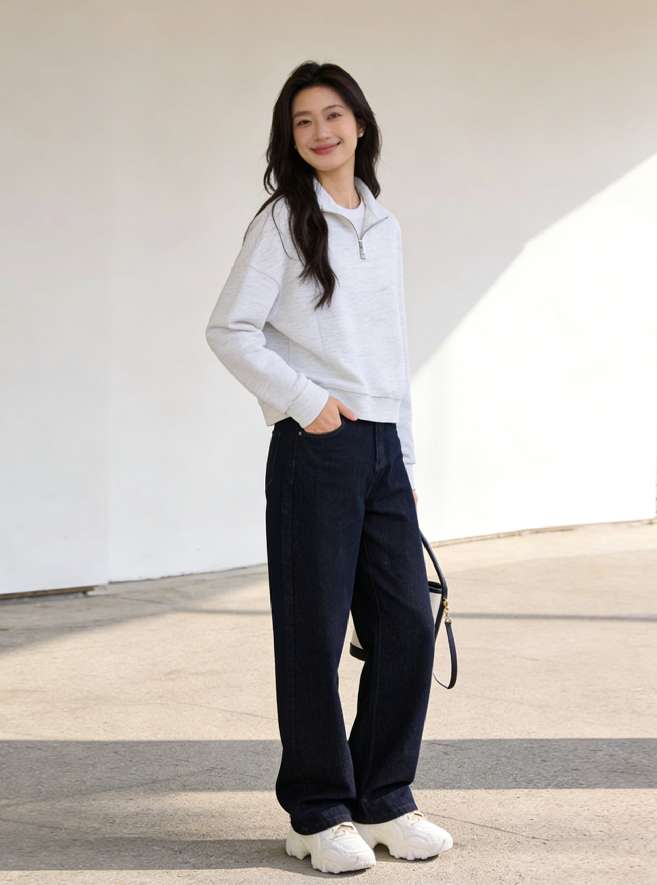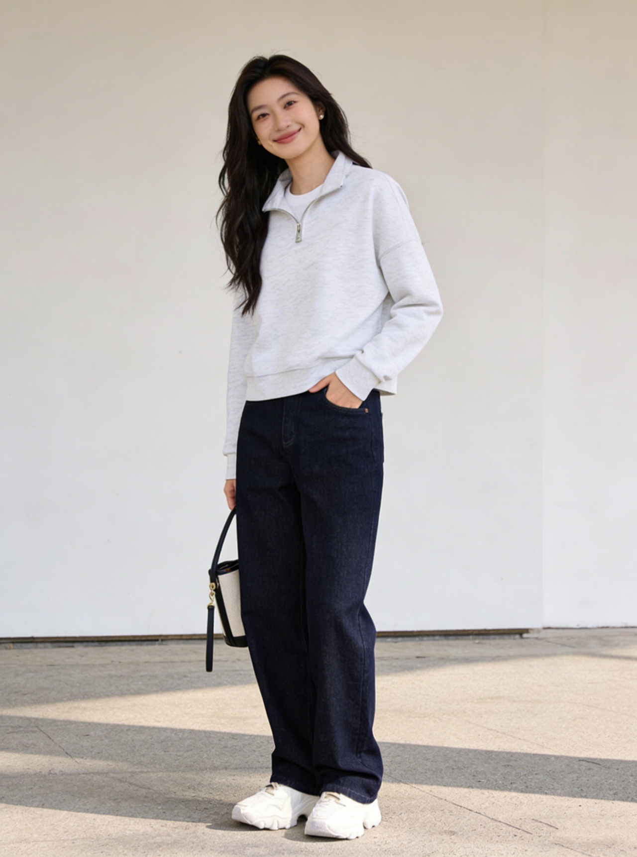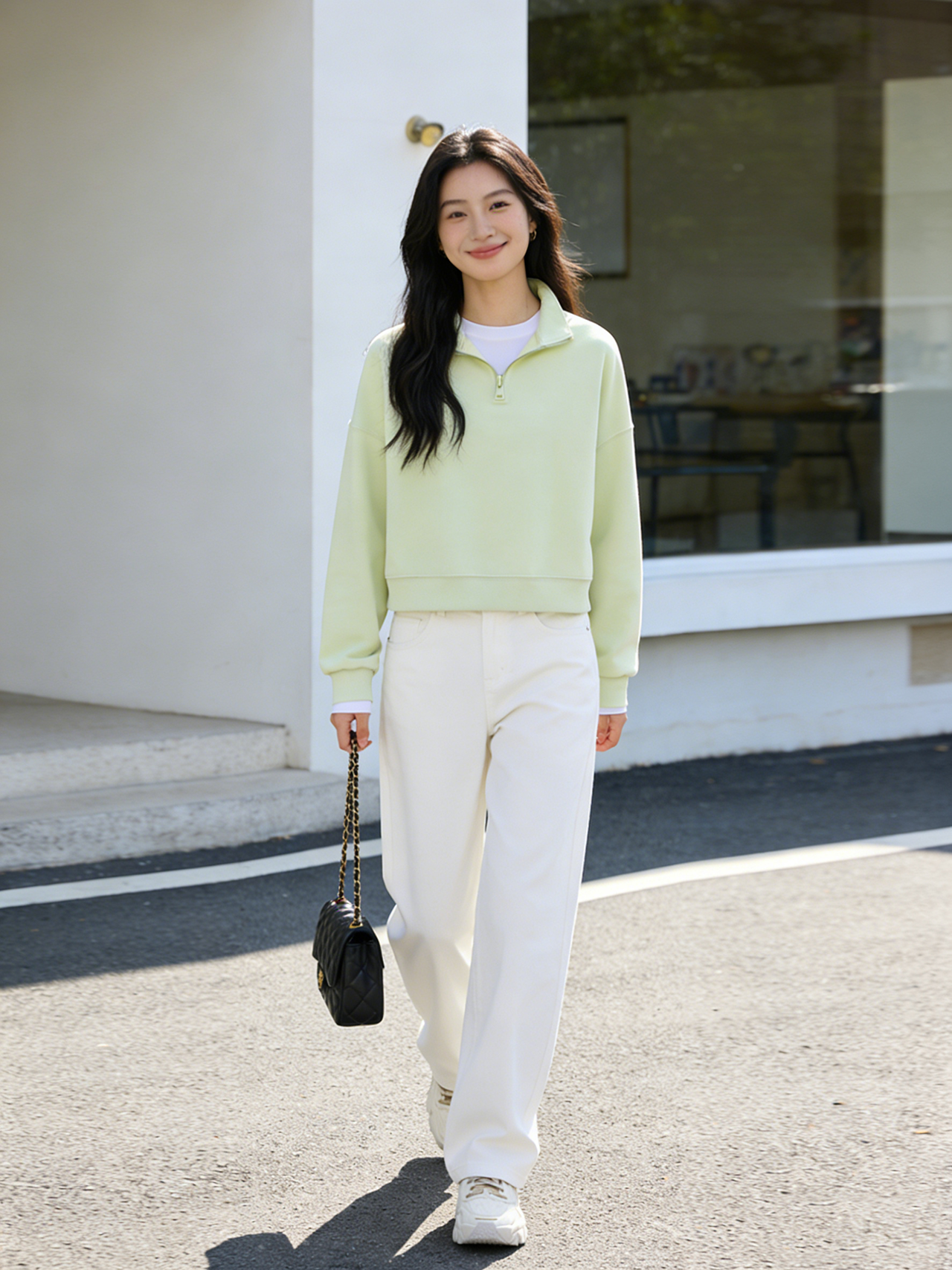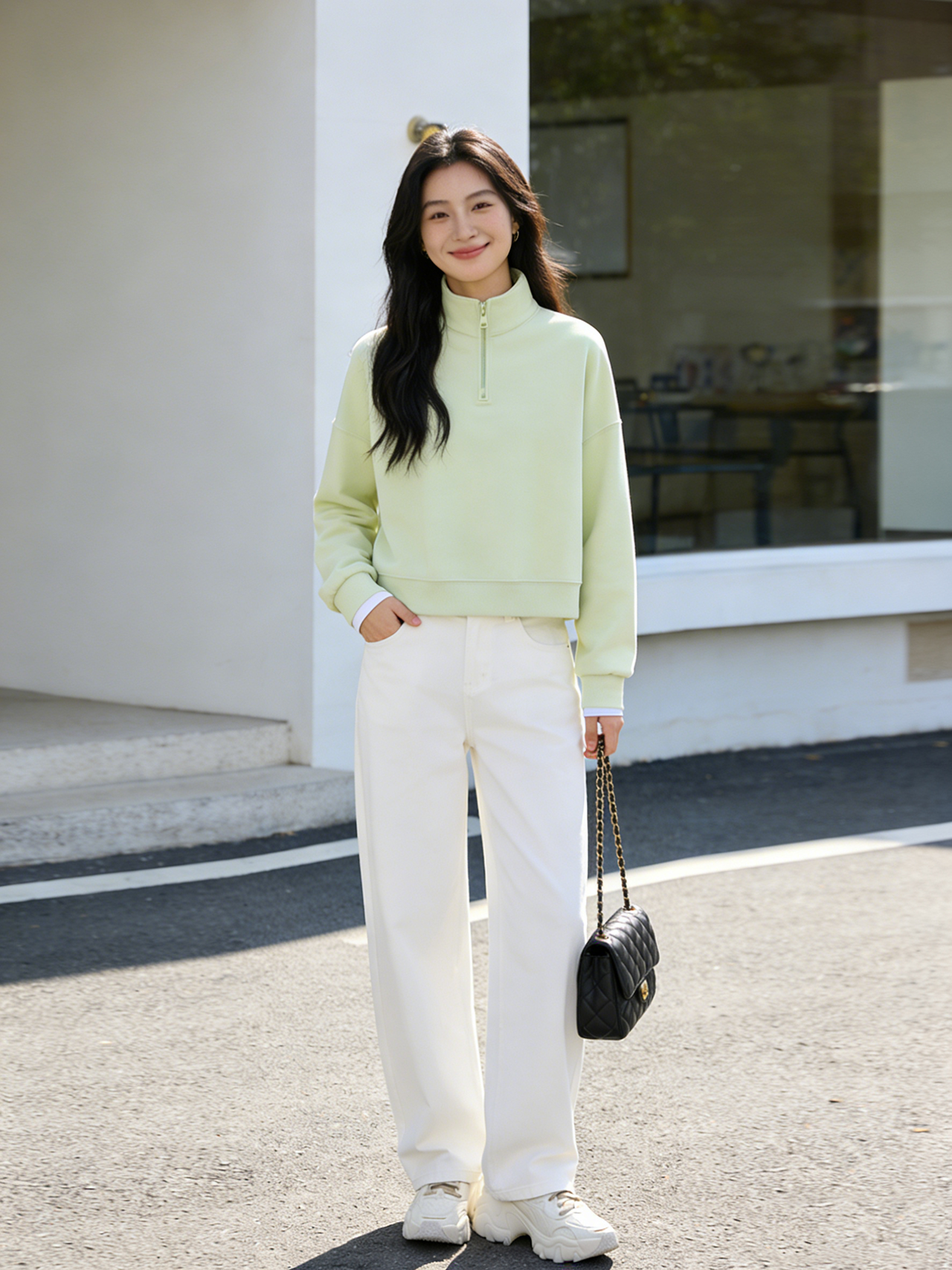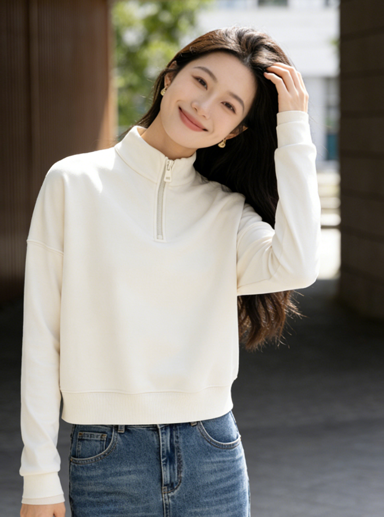 预售 臣禾 【半开襟拉链卫衣】短款落肩休闲运动上衣 9261050275