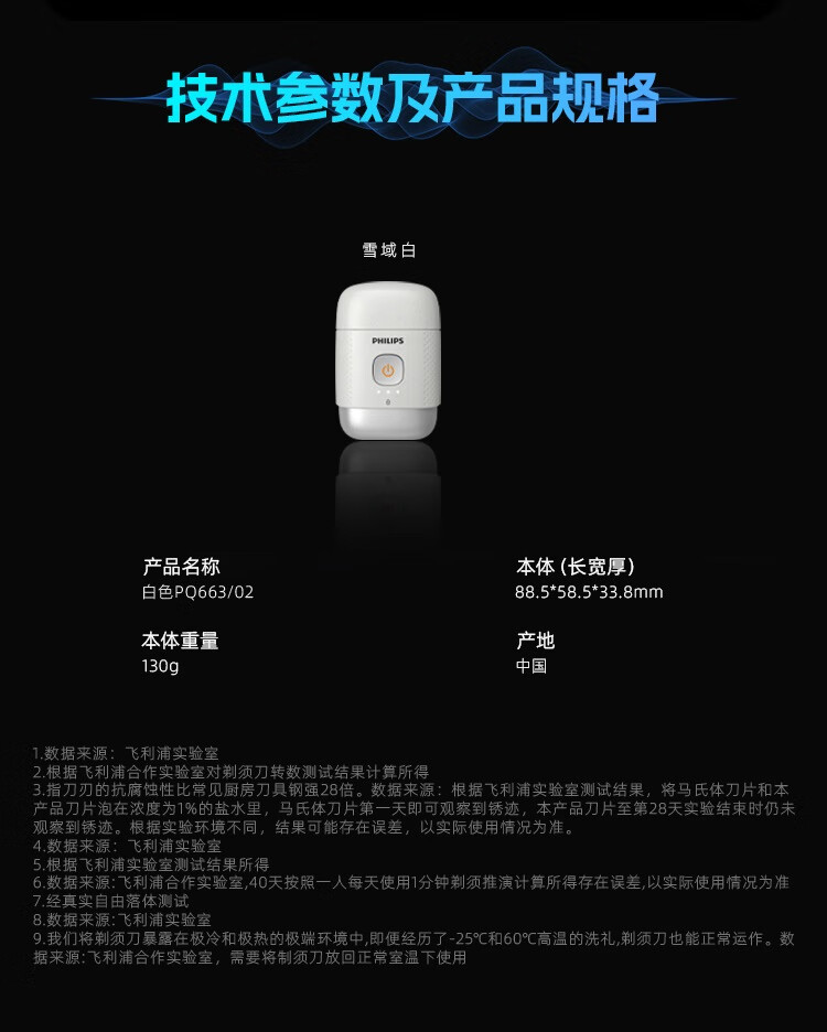 【飞利浦】鹅卵石便携剃须刀 PQ663 雪域白