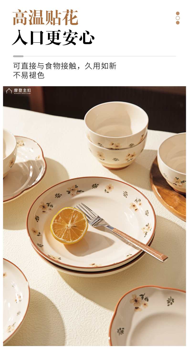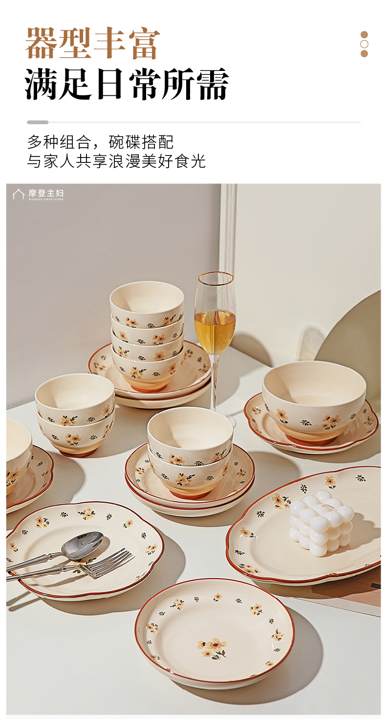 摩登主妇餐具米饭碗家用2024新款高颜值陶瓷碗具汤碗个人专用盘子