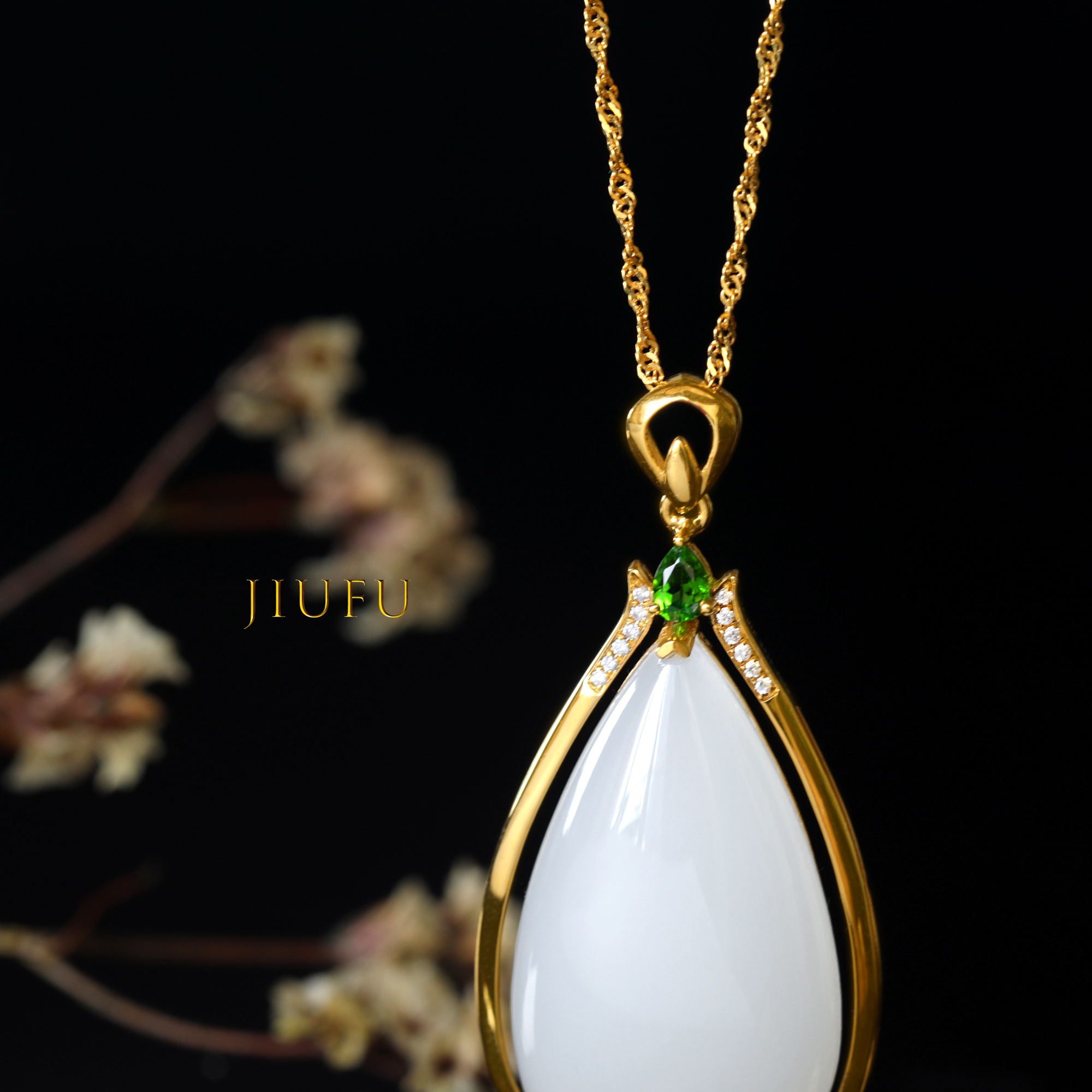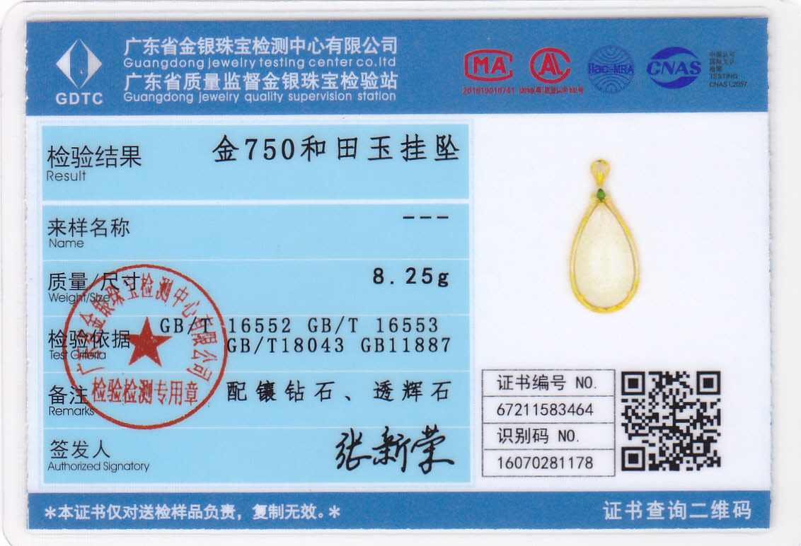 18K黄金和田玉(白玉)吊坠