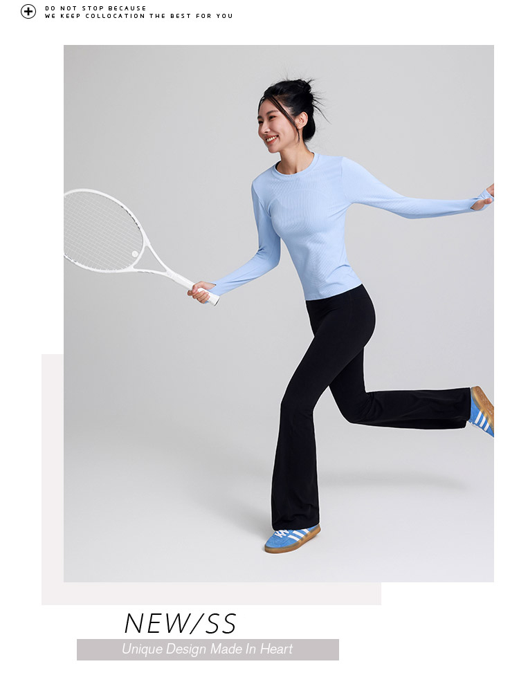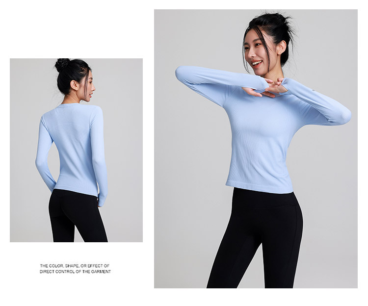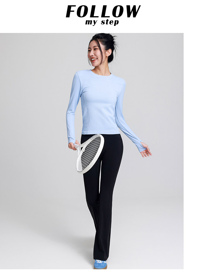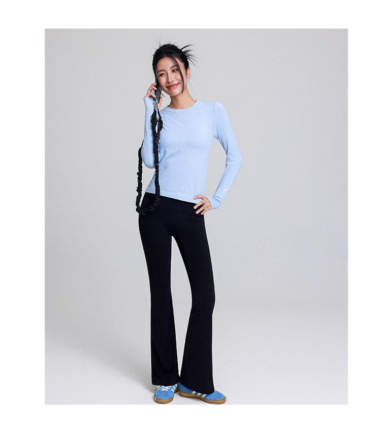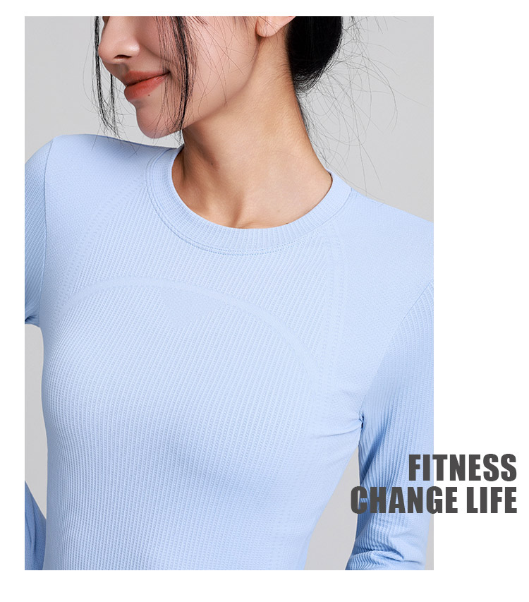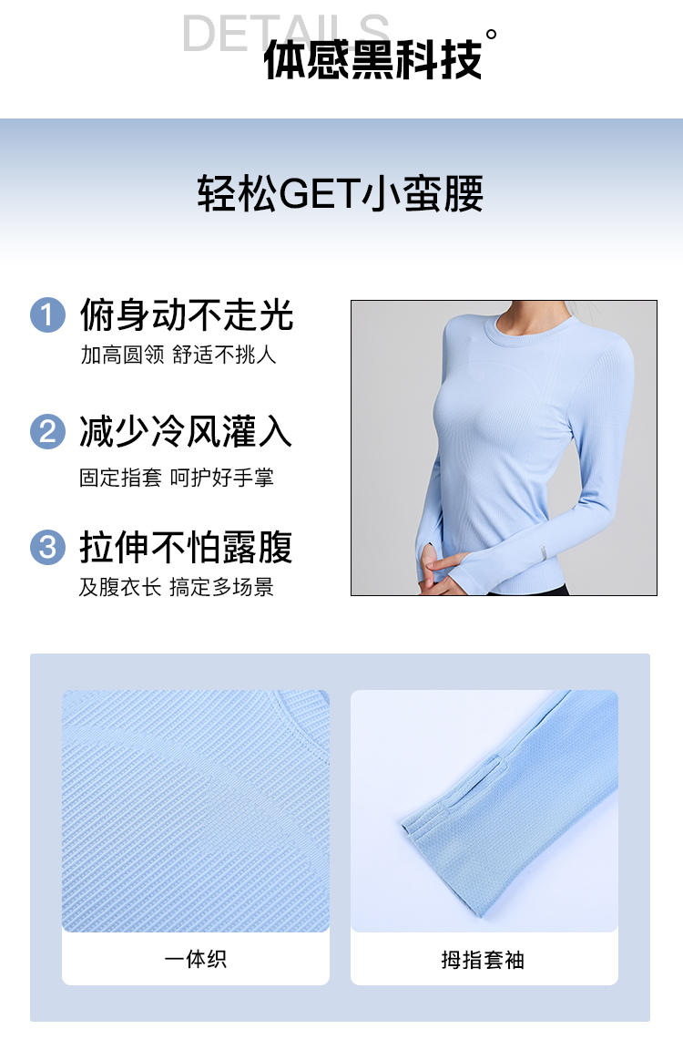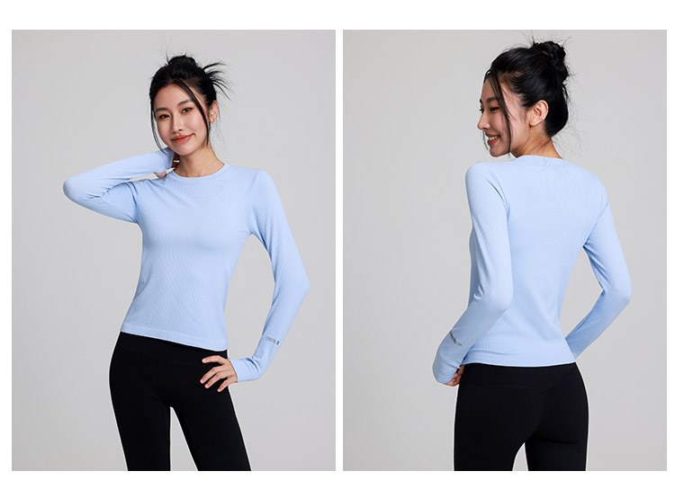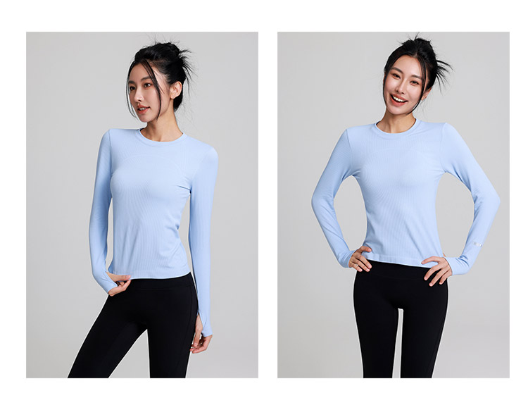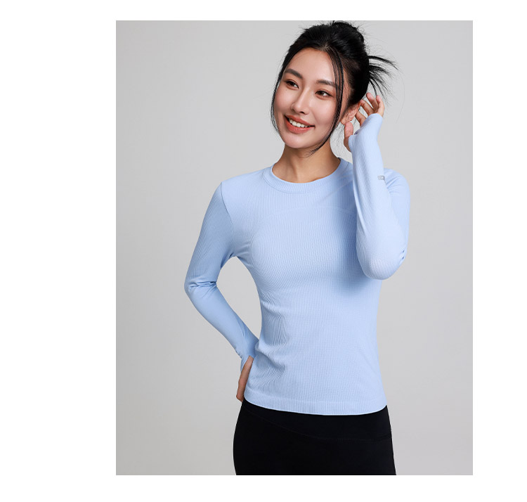 Gymicon能量符号 瑜伽服运动上衣女小细格修身圆领健身服跑步训练长袖YASY2528