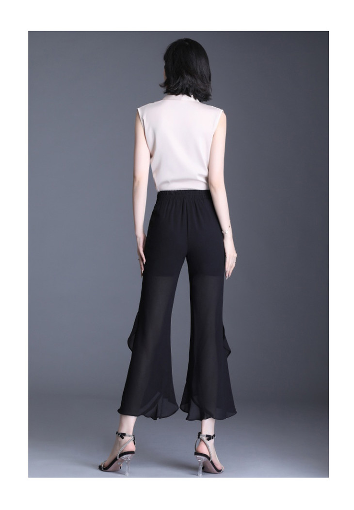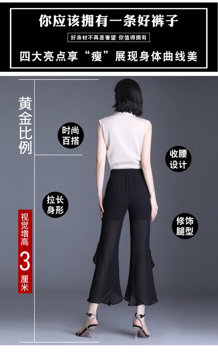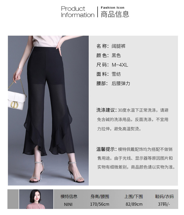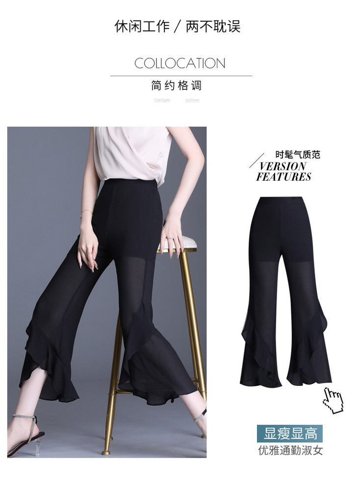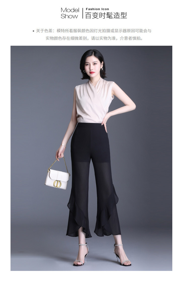 TY1957新款高腰薄款感微喇叭雪纺阔腿裤