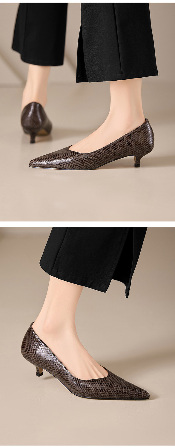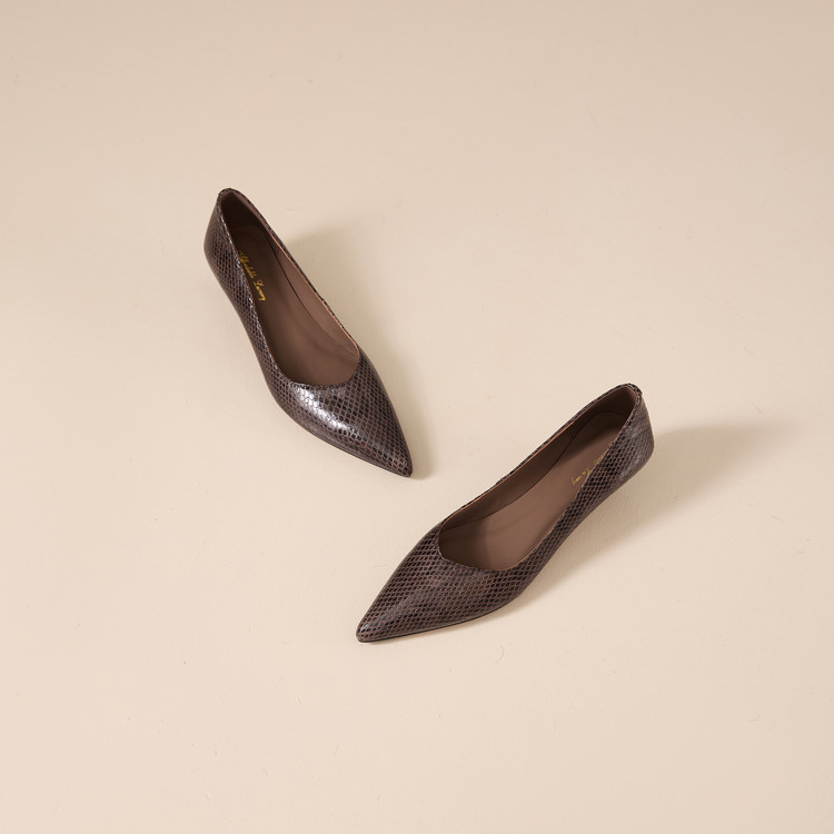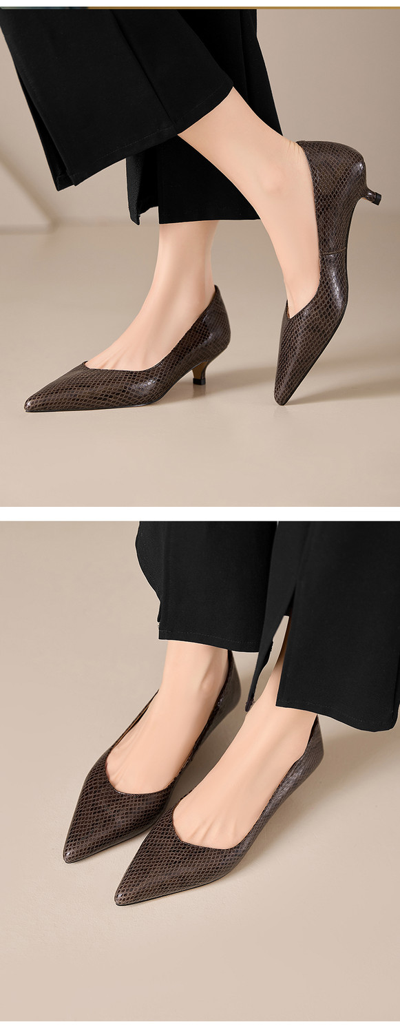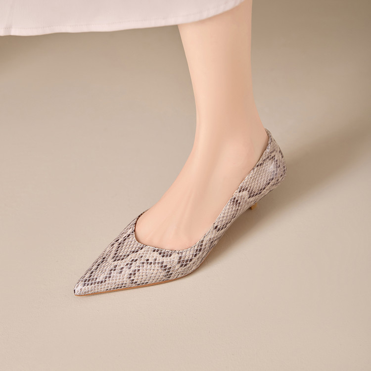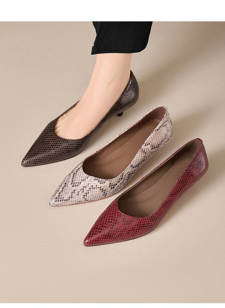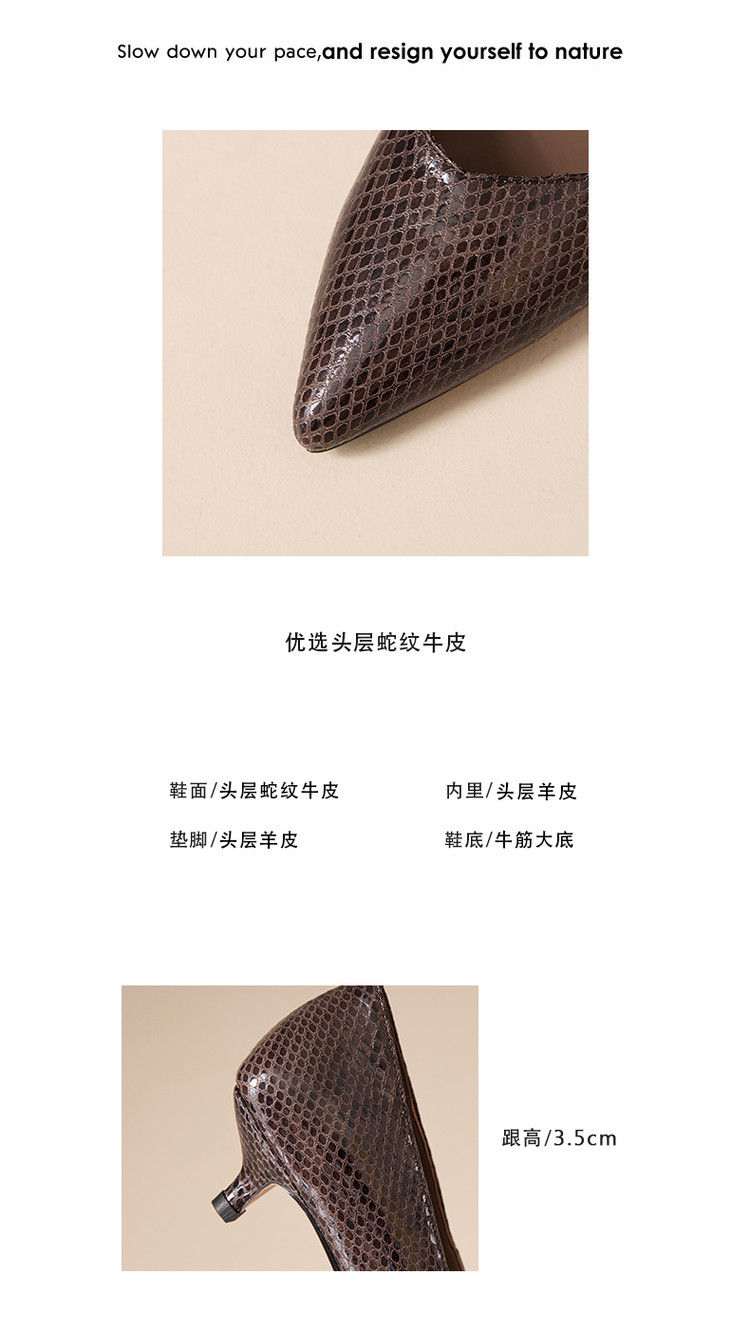 【预售5天】优雅气质通勤时尚职业百搭复古精致蛇纹牛皮浅口单鞋女MBJR&6943