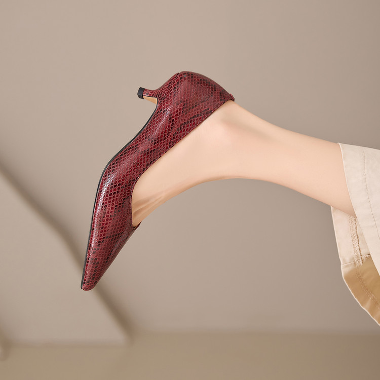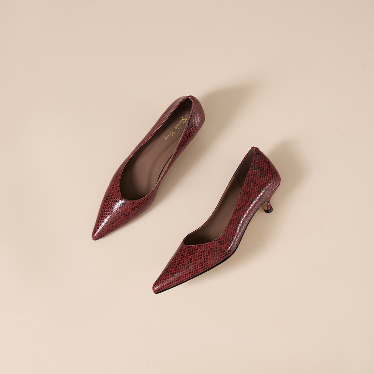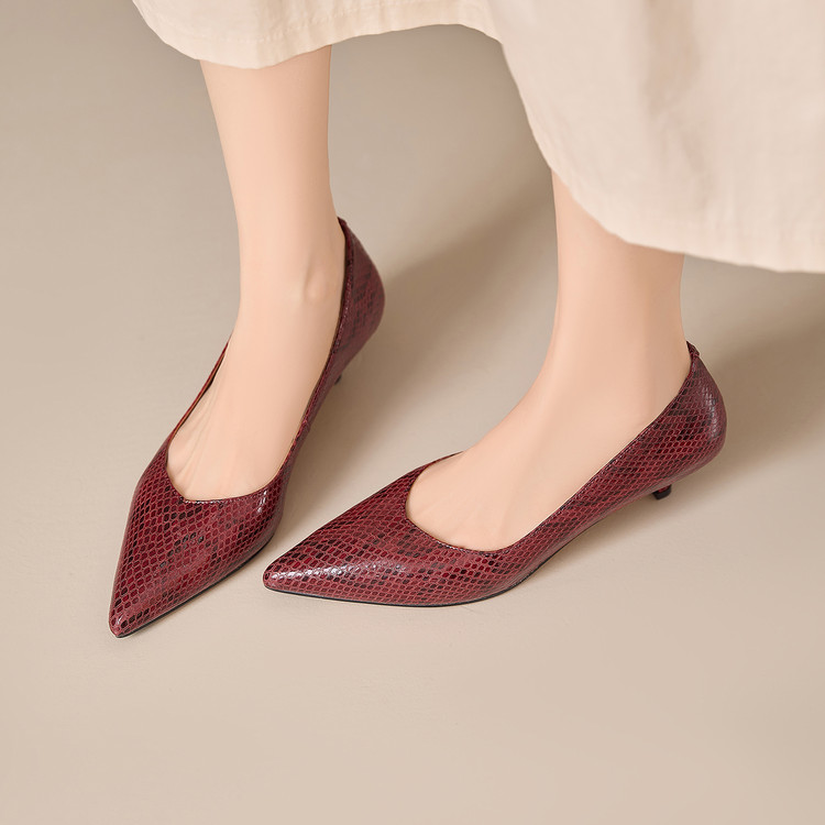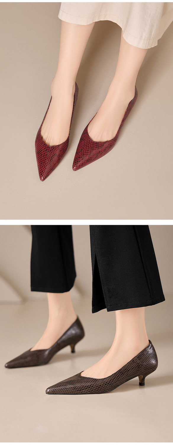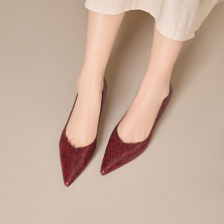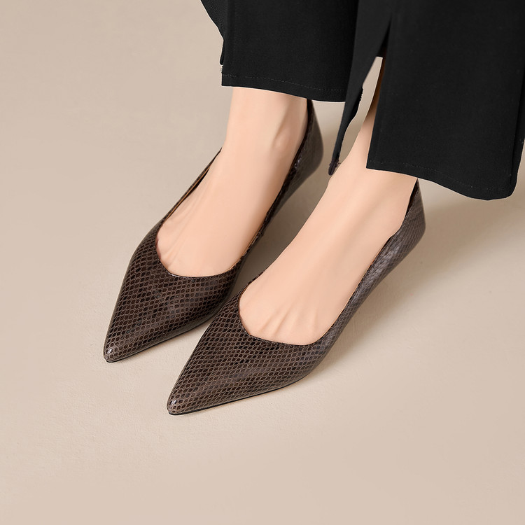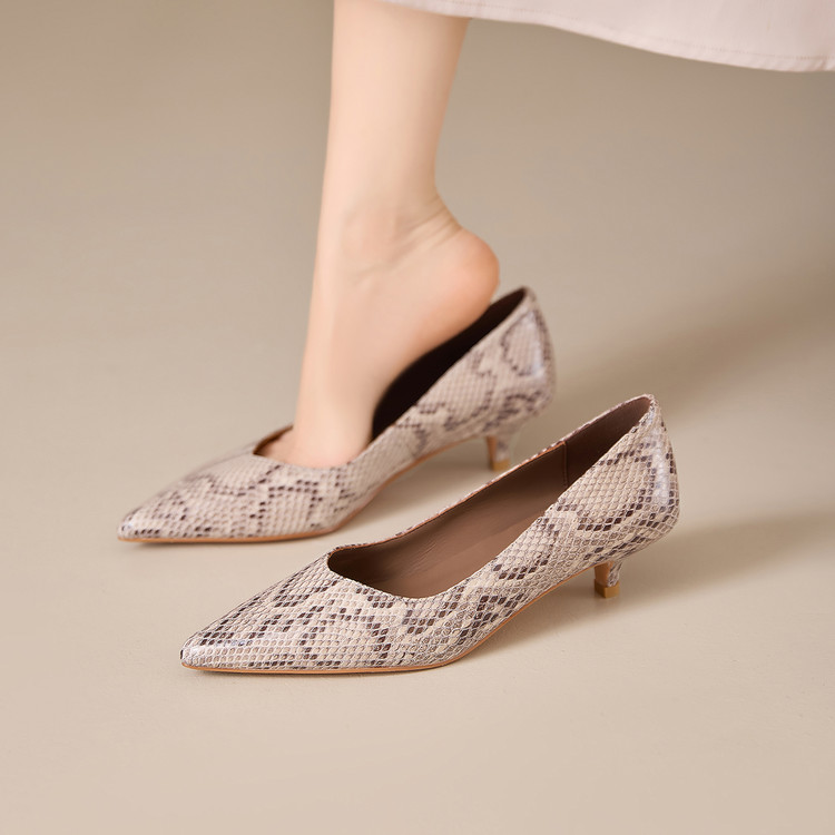 【预售5天】优雅气质通勤时尚职业百搭复古精致蛇纹牛皮浅口单鞋女MBJR&6943