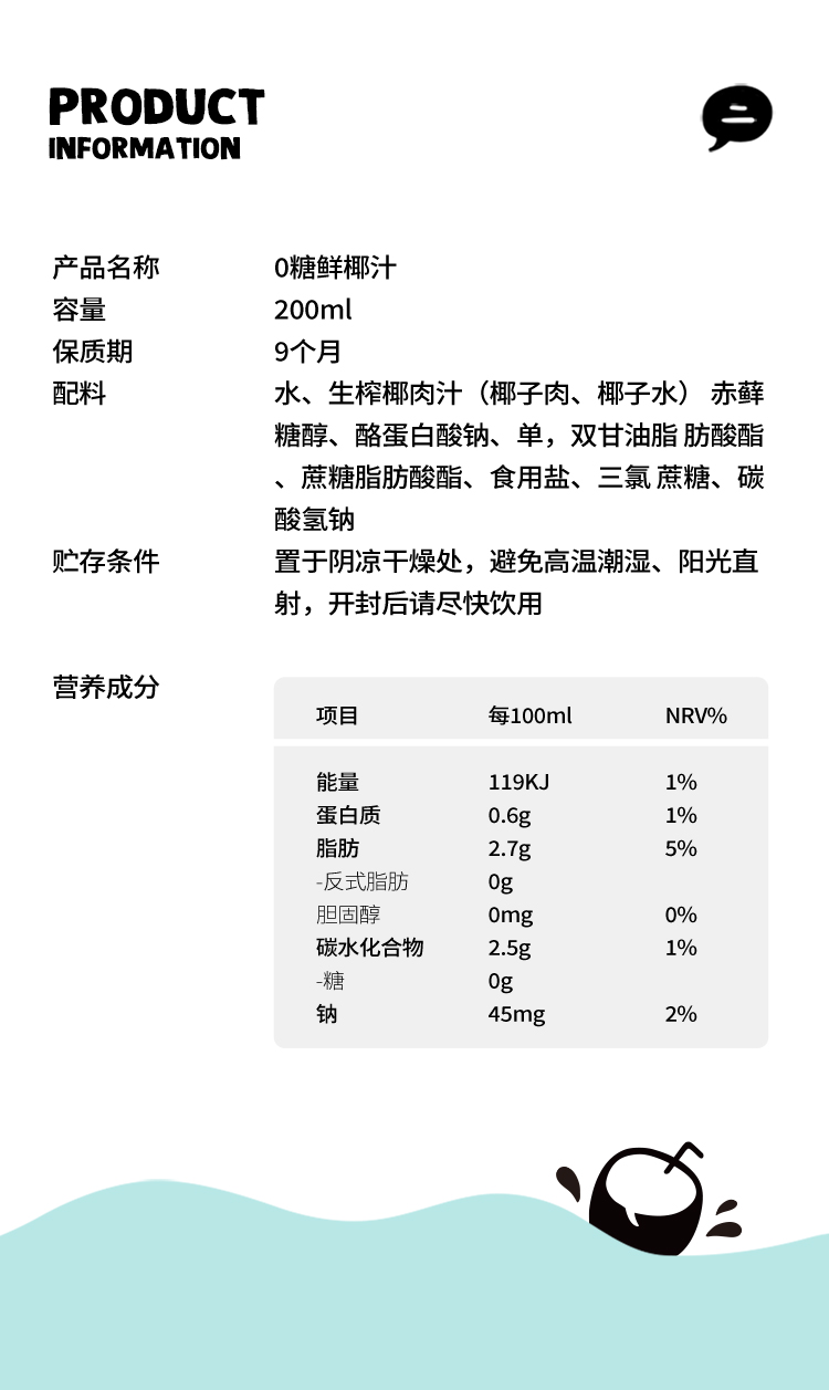 椰子知道【早餐装】0糖鲜椰汁200ml*9盒