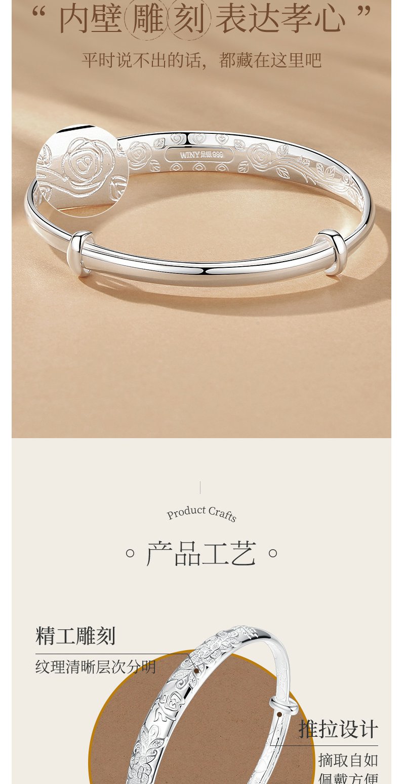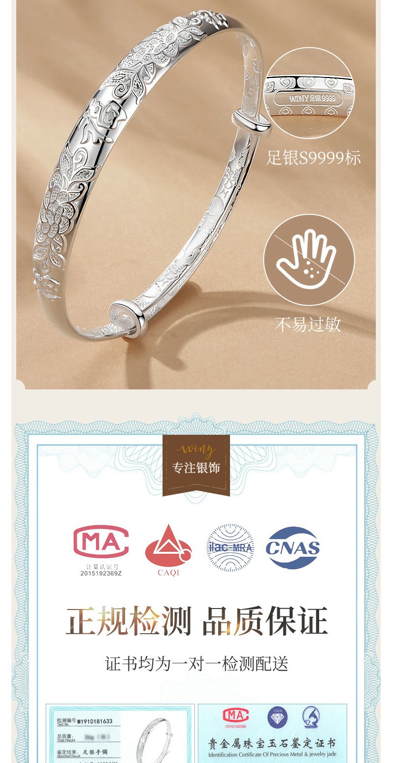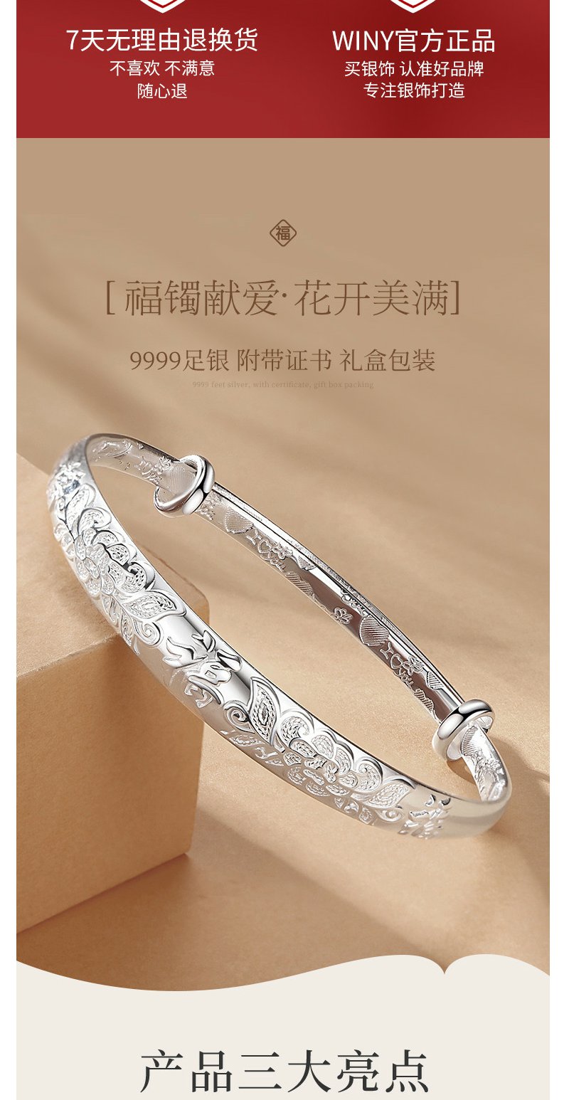 Winy9999足银福禄长久手镯送女友闺蜜节日生日礼物