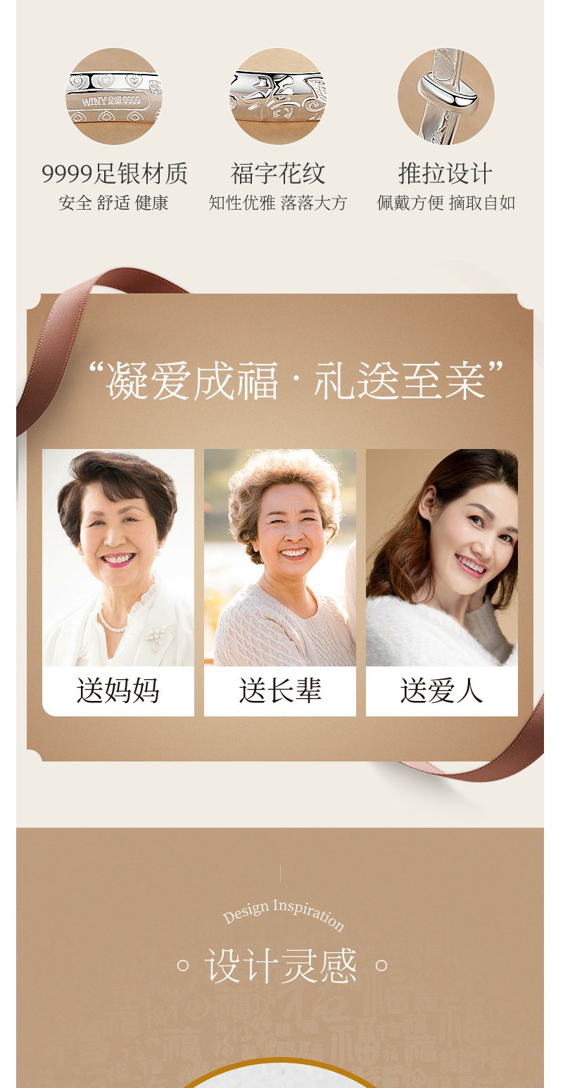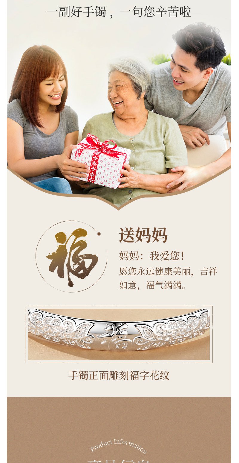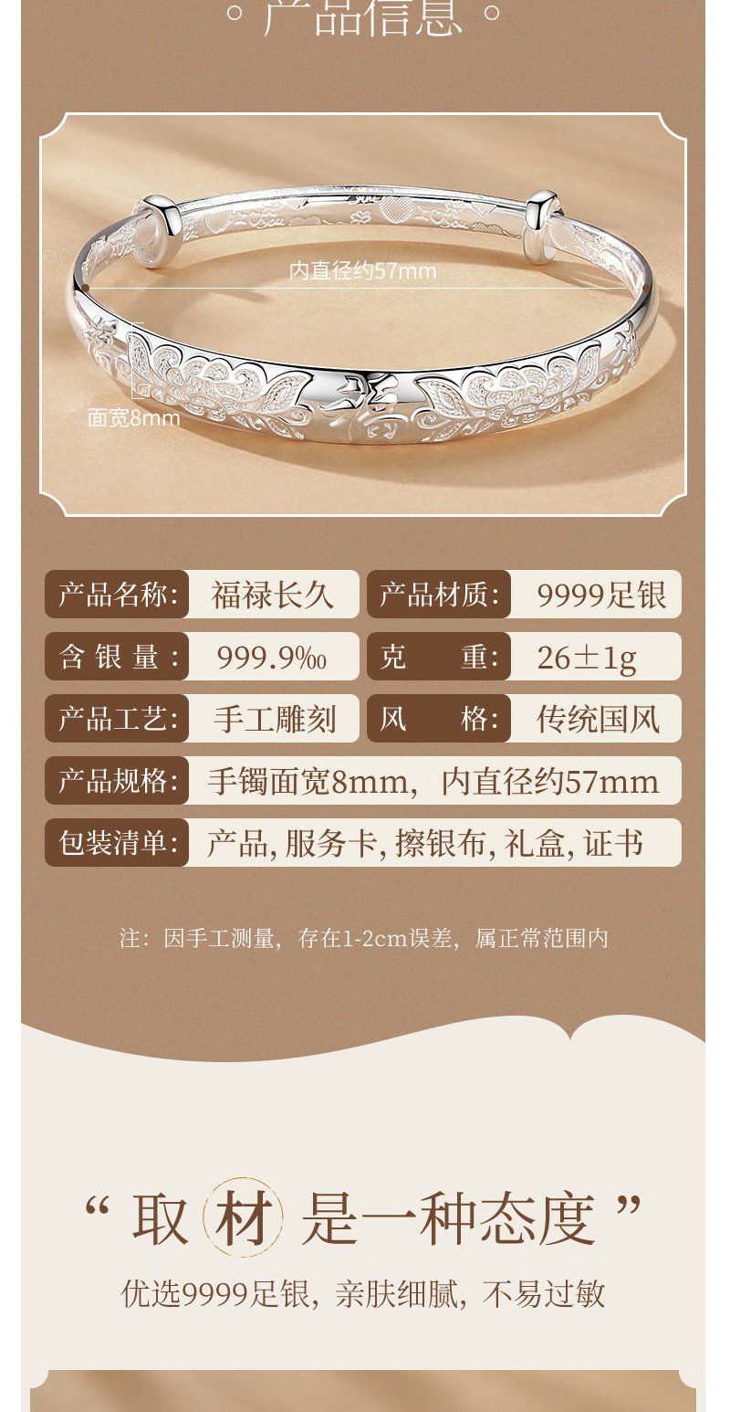 Winy9999足银福禄长久手镯送女友闺蜜节日生日礼物