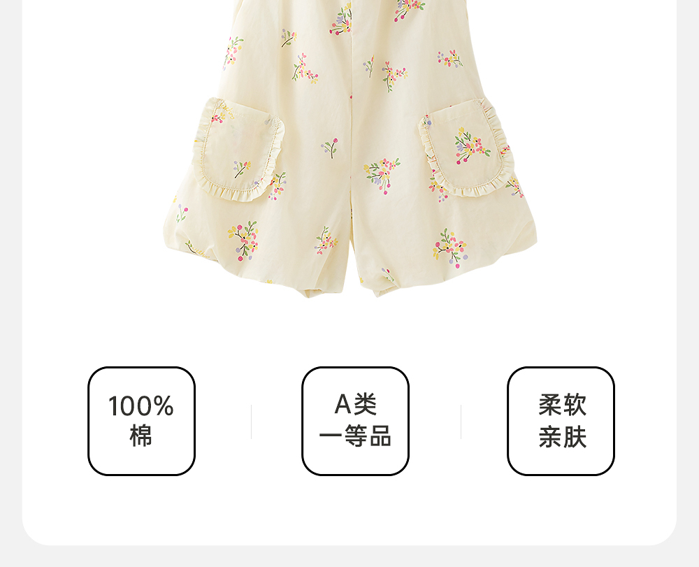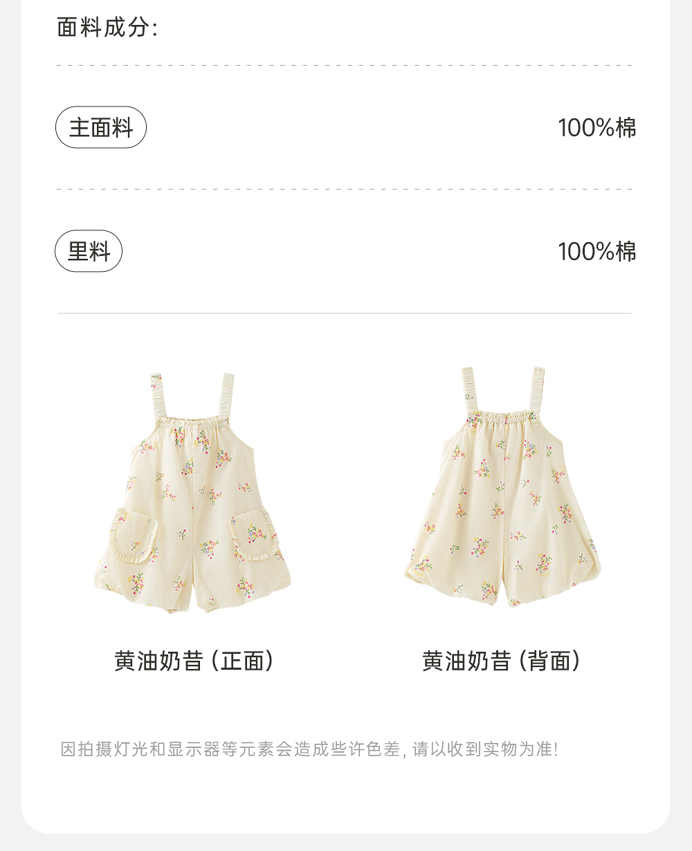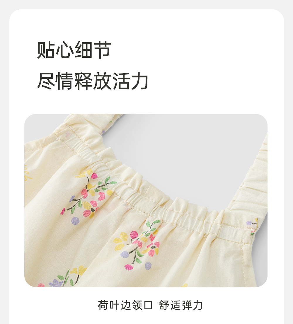 【商场同款】英氏儿童裤子夏季透气女童背带裤可爱碎花纯棉连体裤