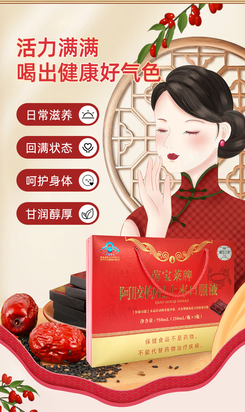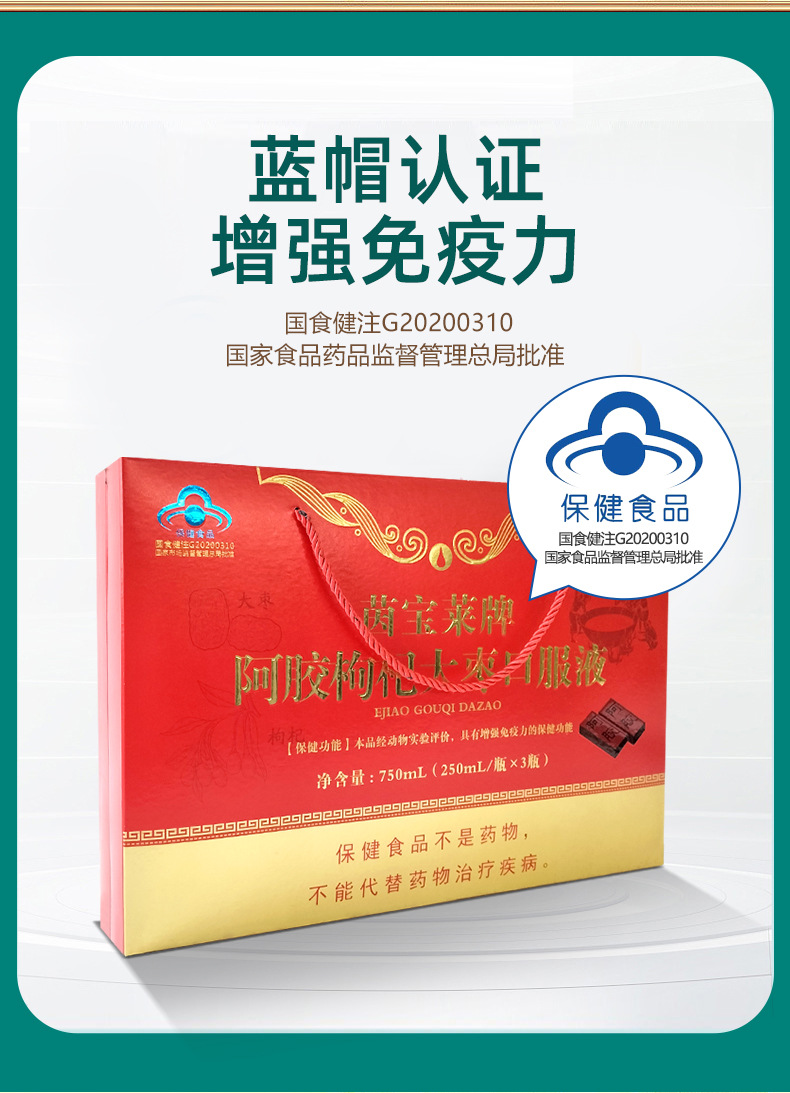 2盒装【茵宝莱牌阿胶枸杞大枣口服液】女性补气血安神 补脑养颜滋补母亲节礼物礼品装