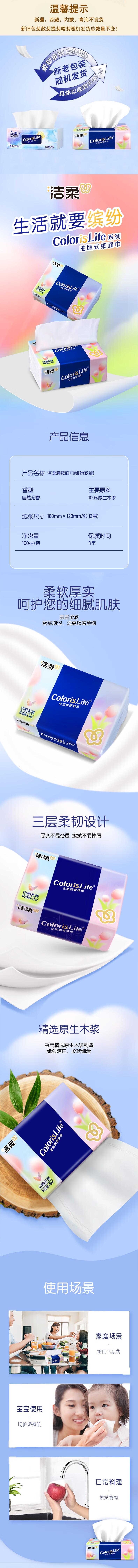 洁柔 缤纷系列自然无香抽纸3层100抽*24包 J0R-24B-BF