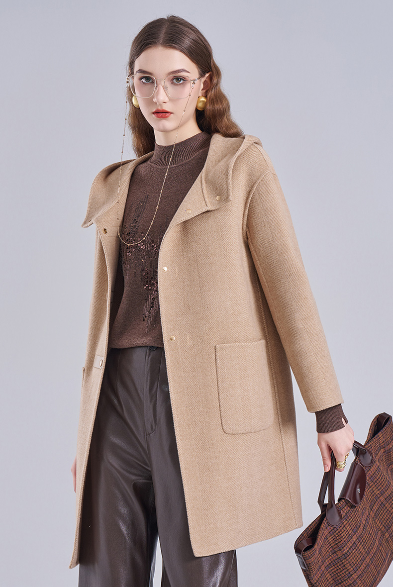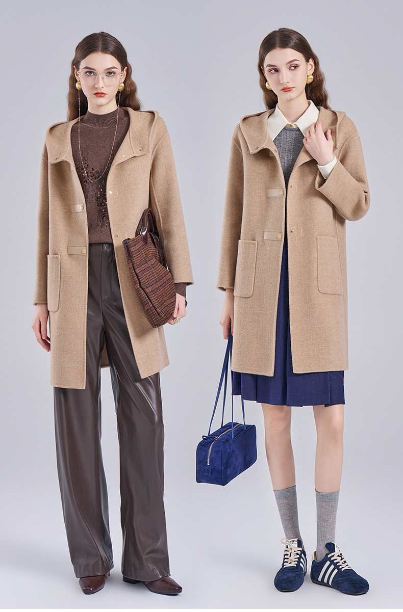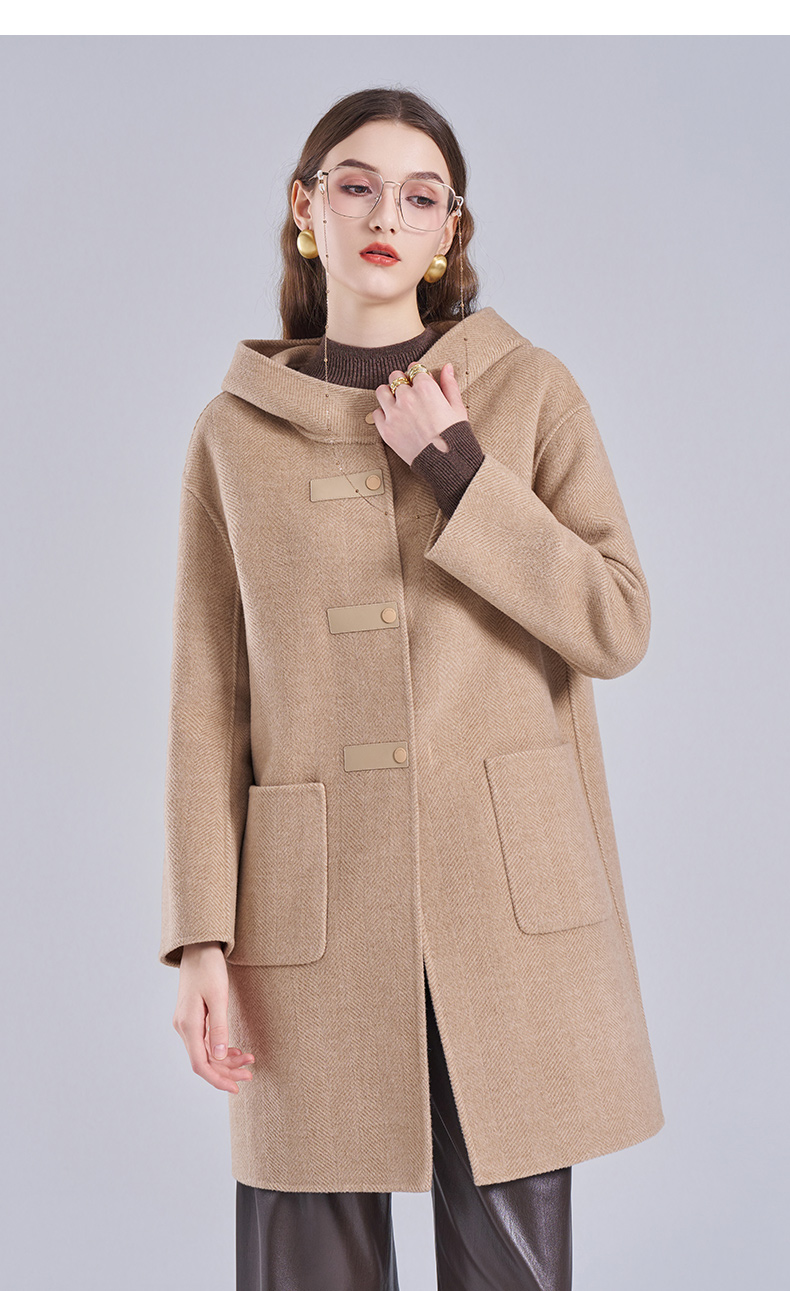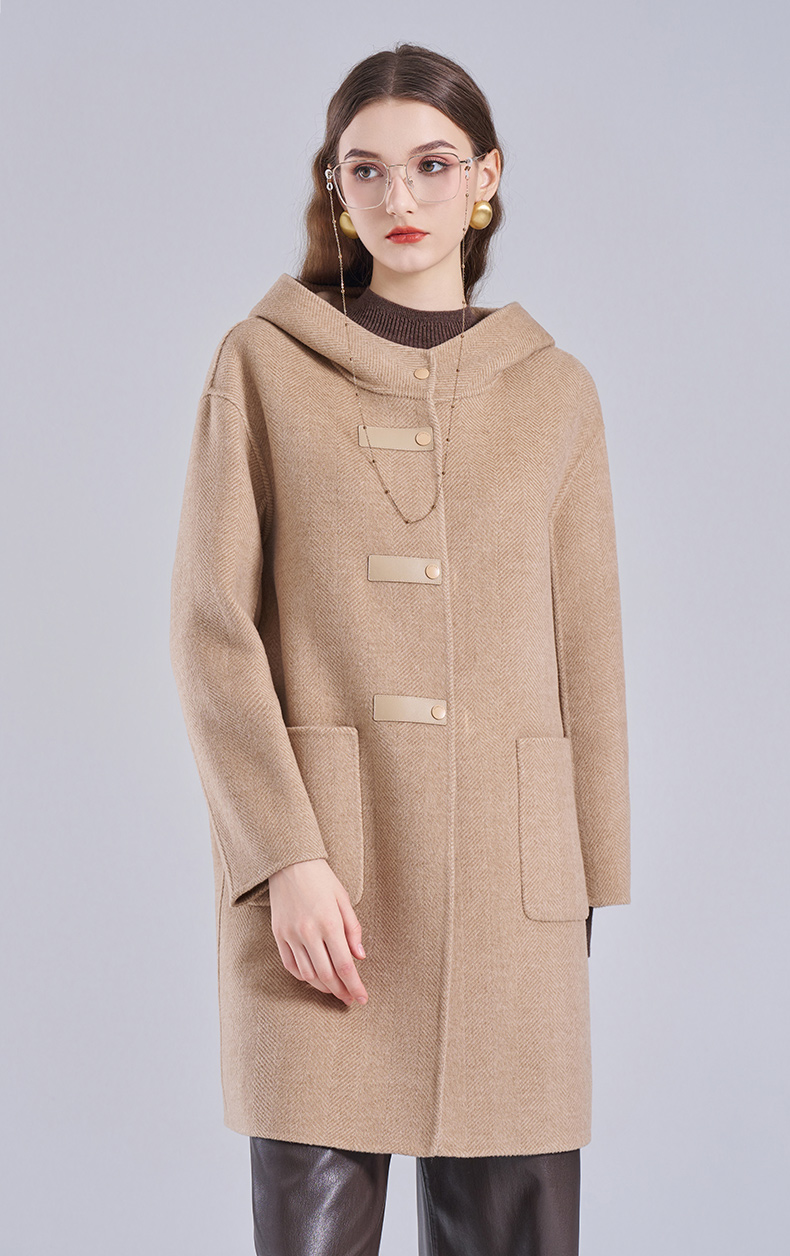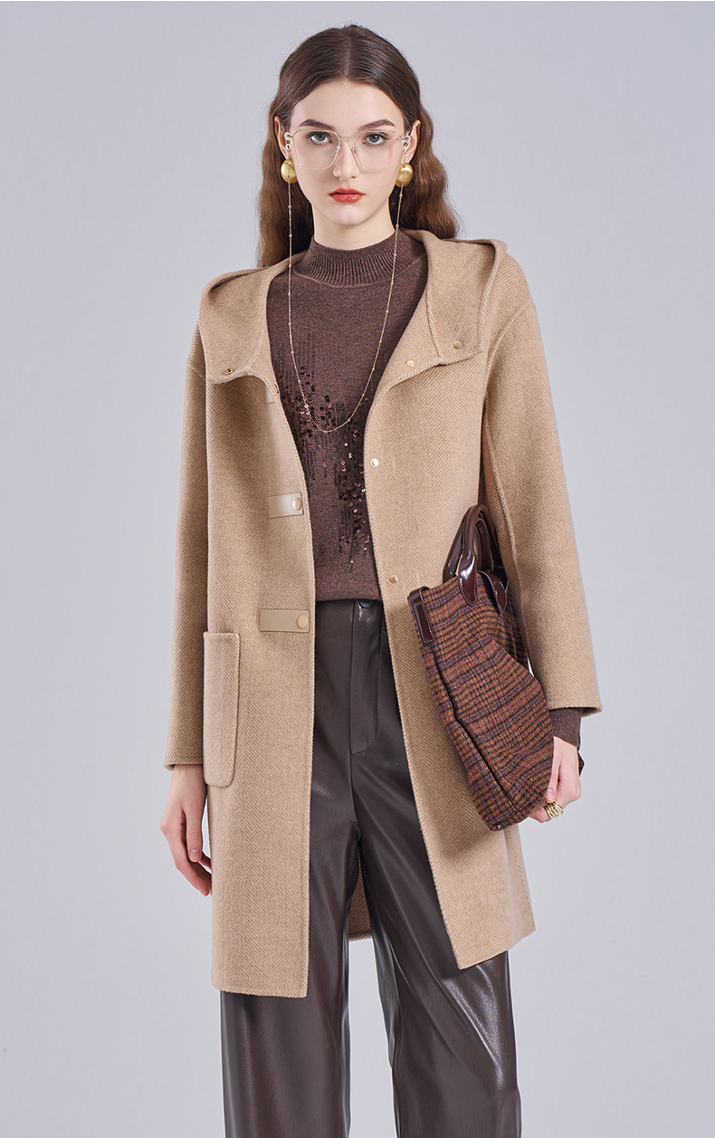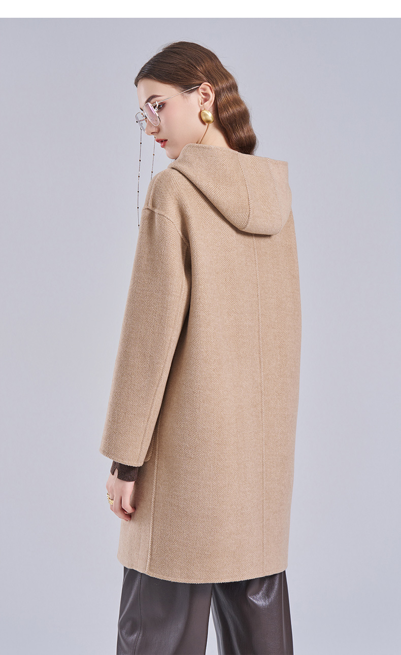 乔万尼新款羊毛大衣小个子毛呢外套连帽减龄ET4A831