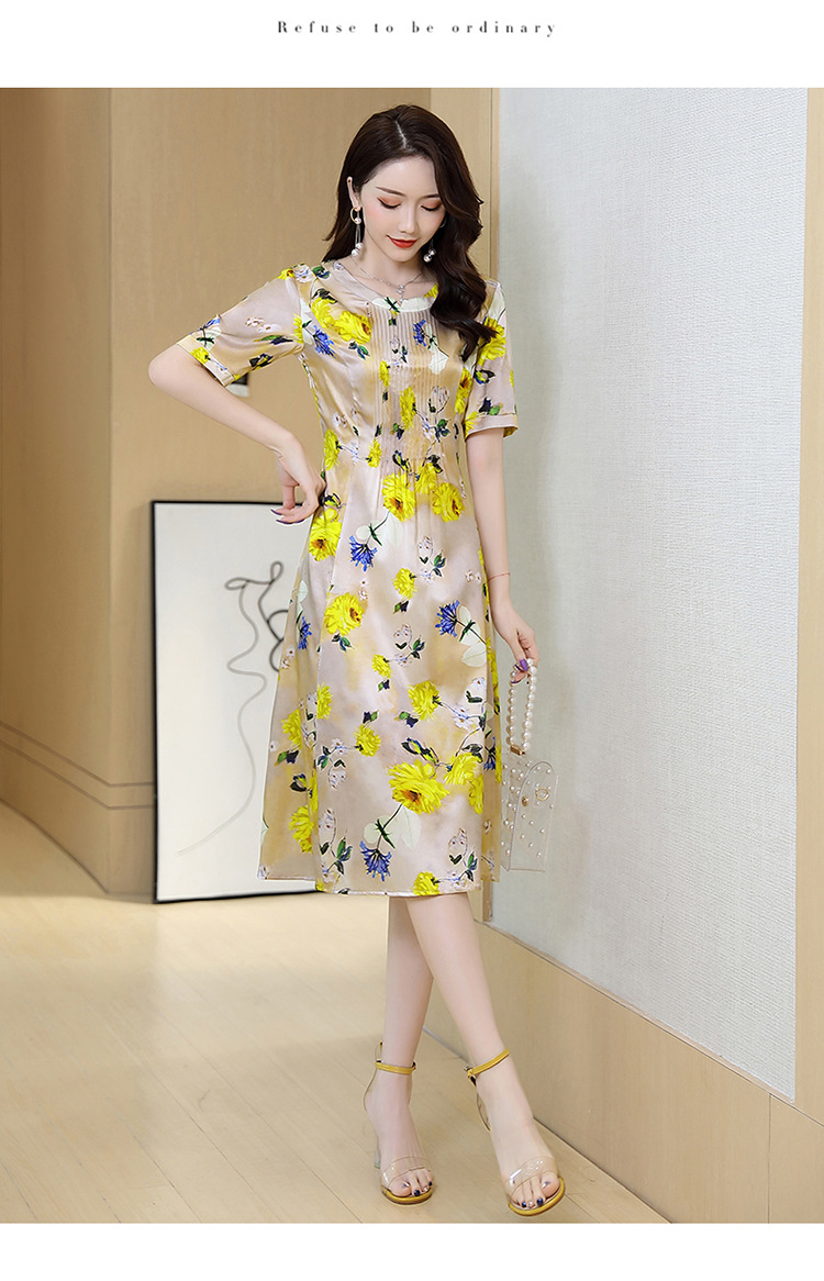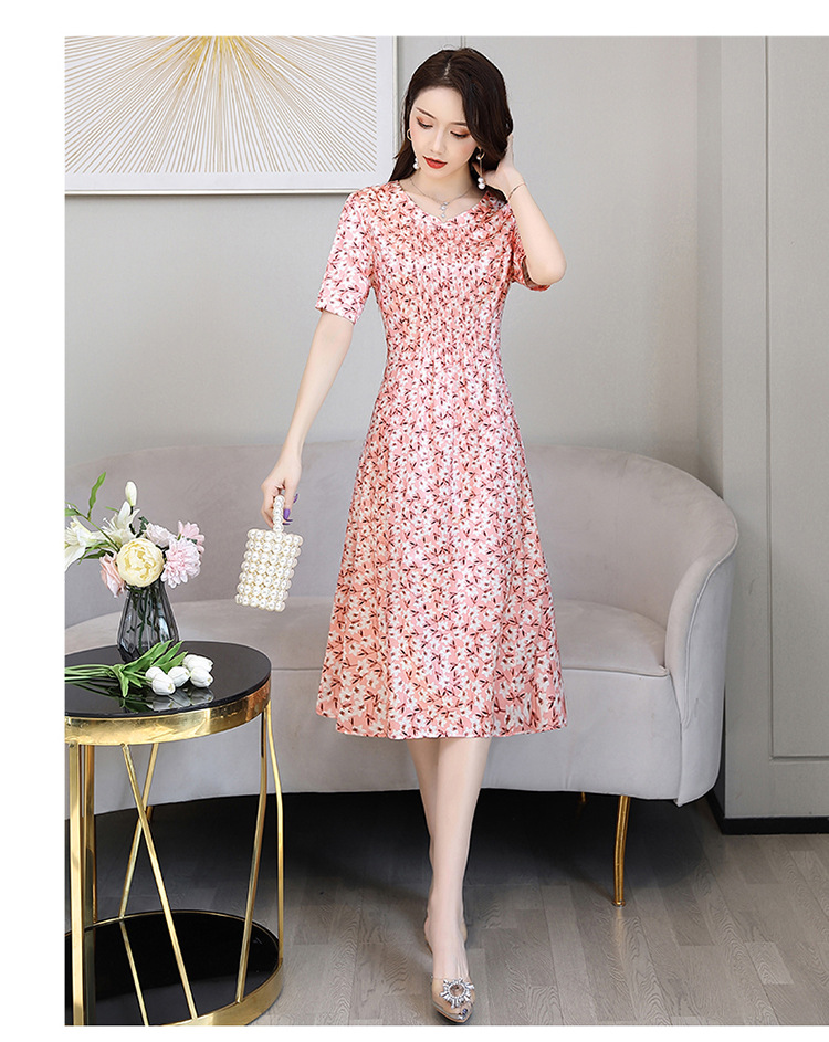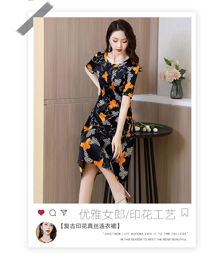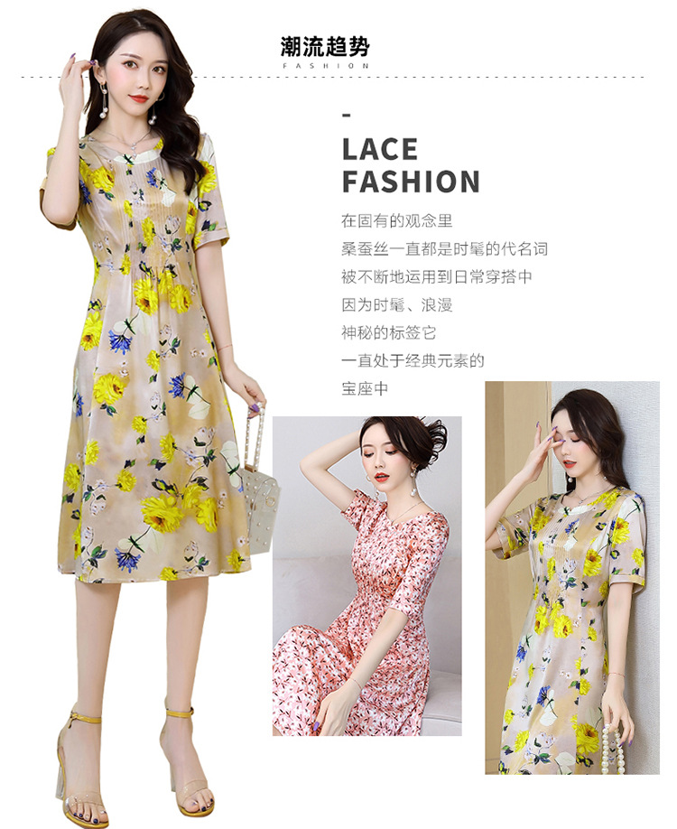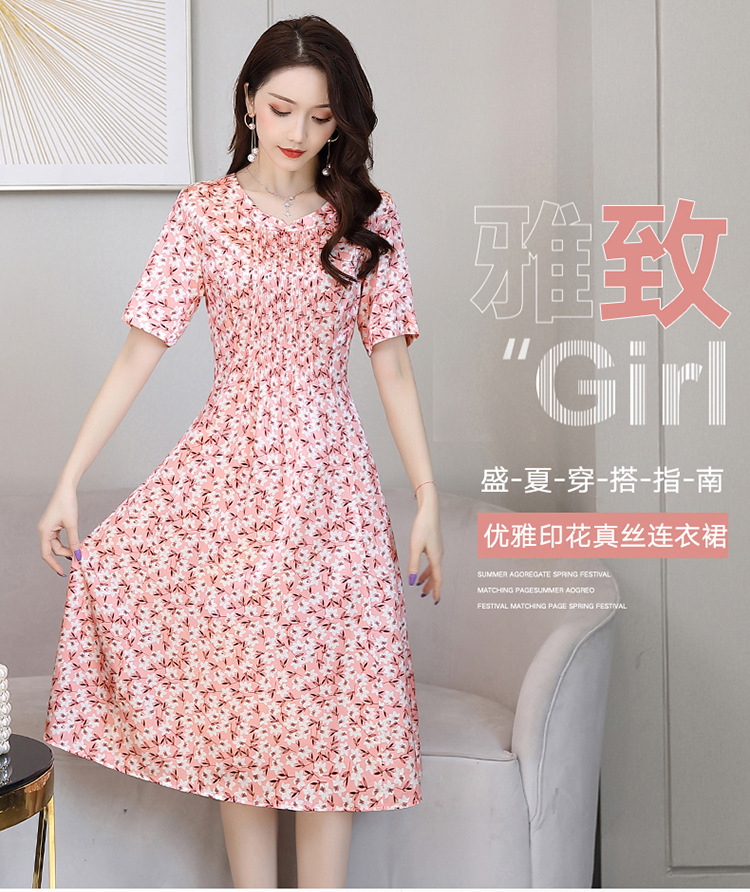 LS-ASE2278杭州桑蚕丝2020年夏新款气质碎花过膝裙