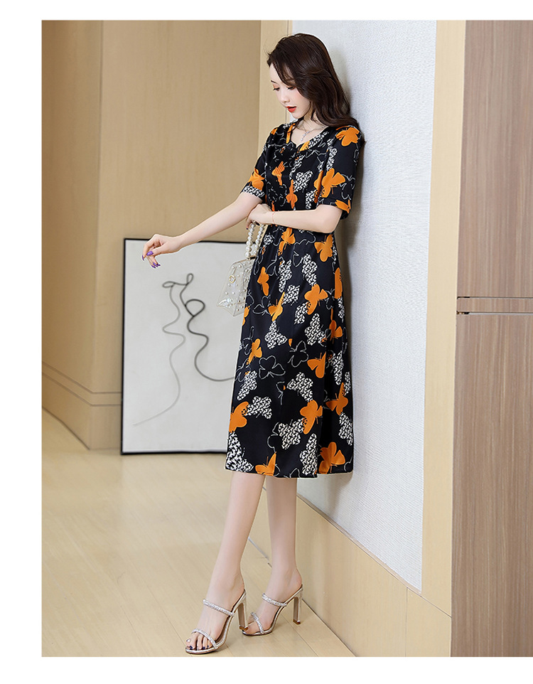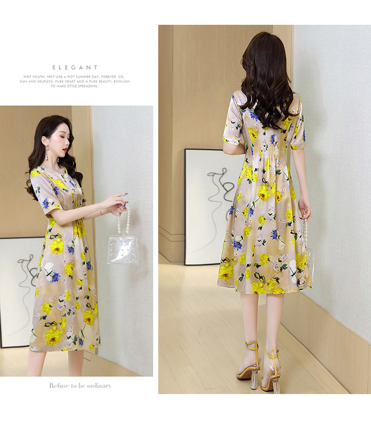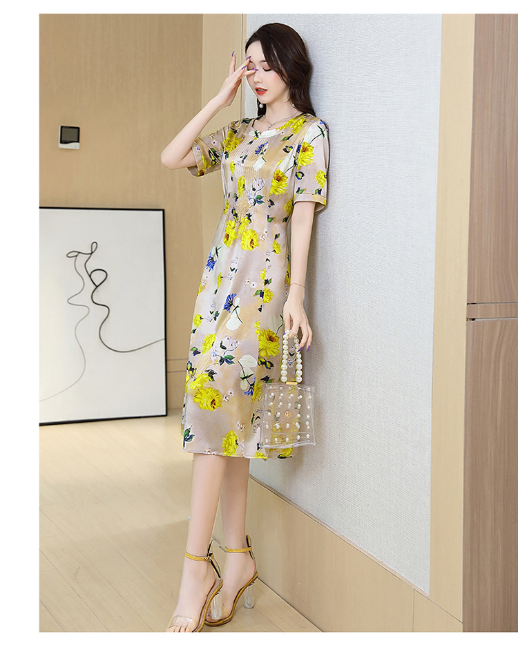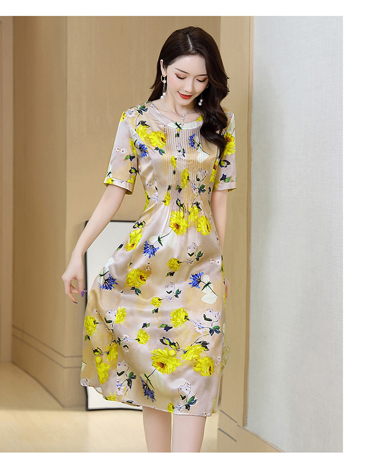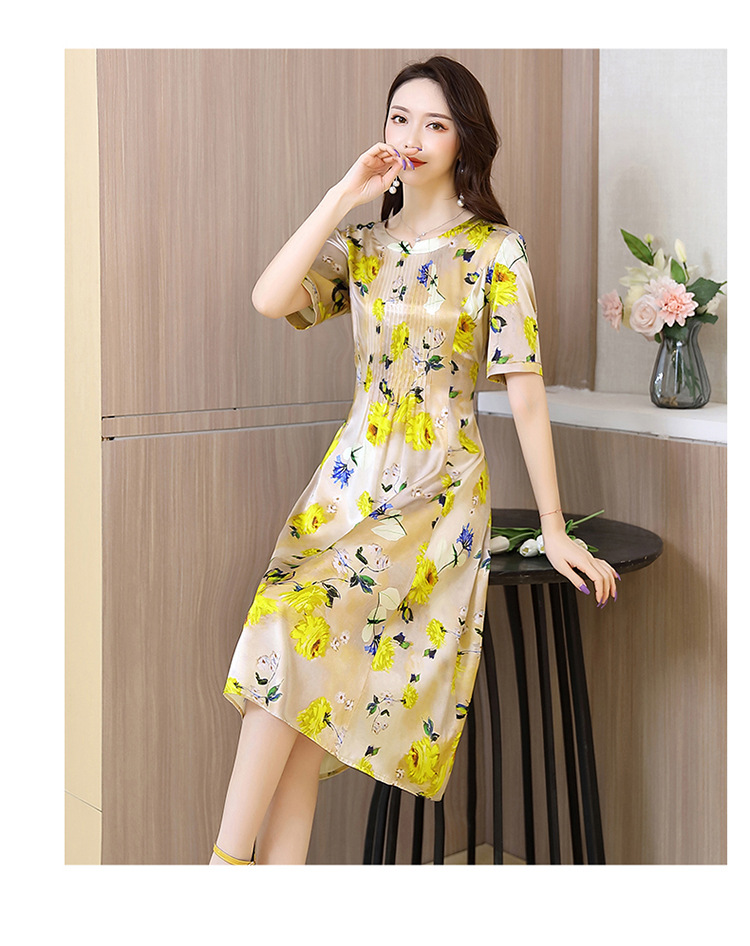 LS-ASE2278杭州桑蚕丝2020年夏新款气质碎花过膝裙