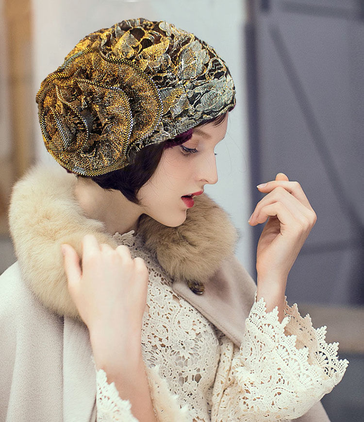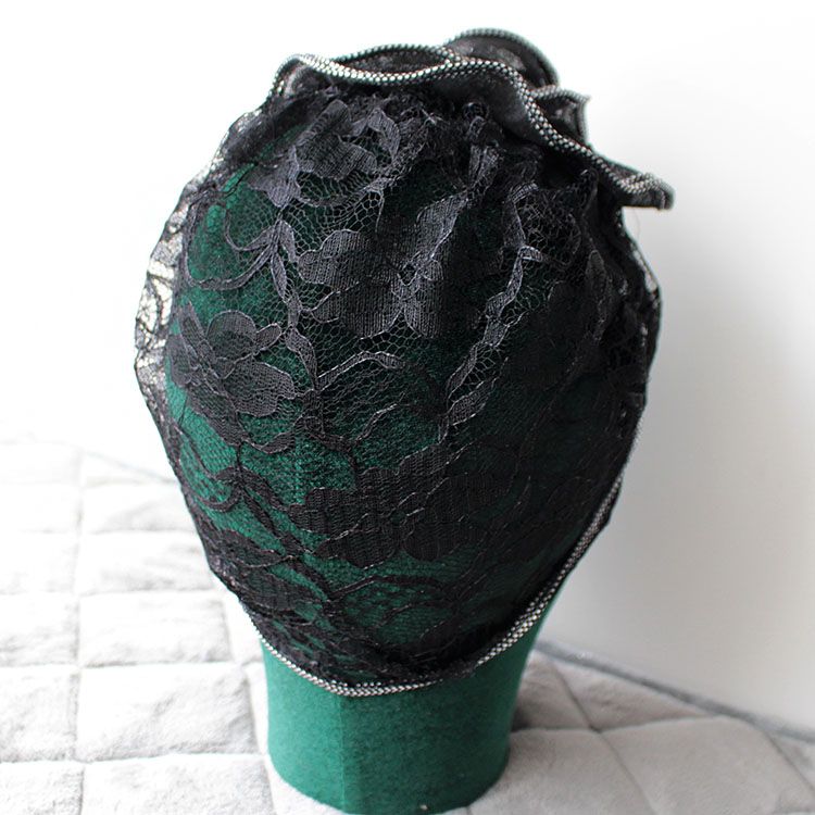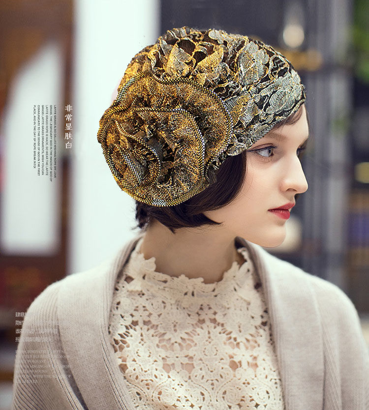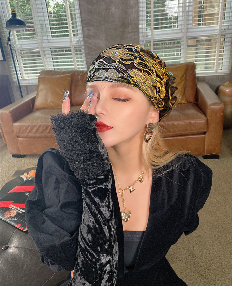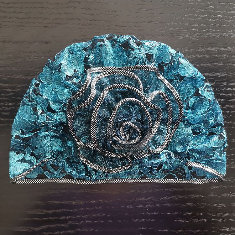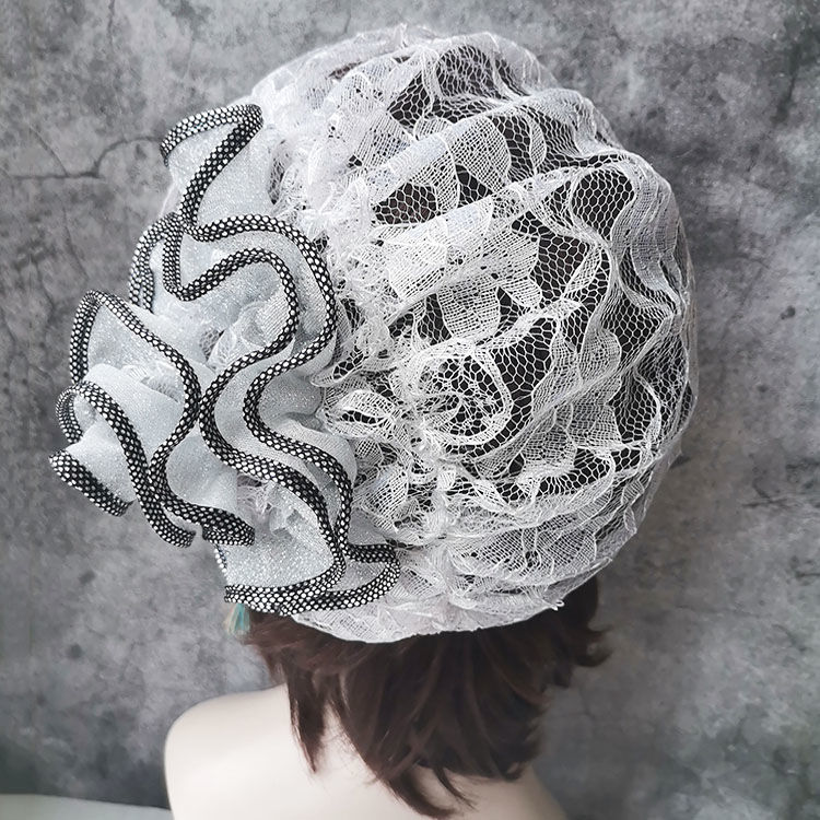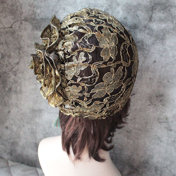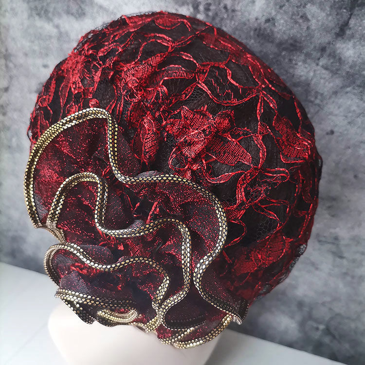 DD-新款复古镂空蕾丝头巾帽洋气大花朵包头帽遮白发薄头套女帽子