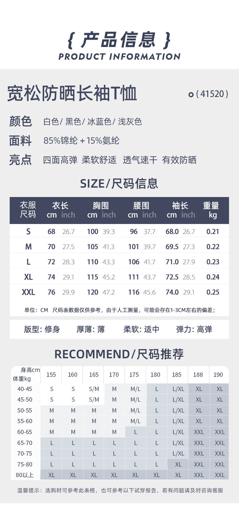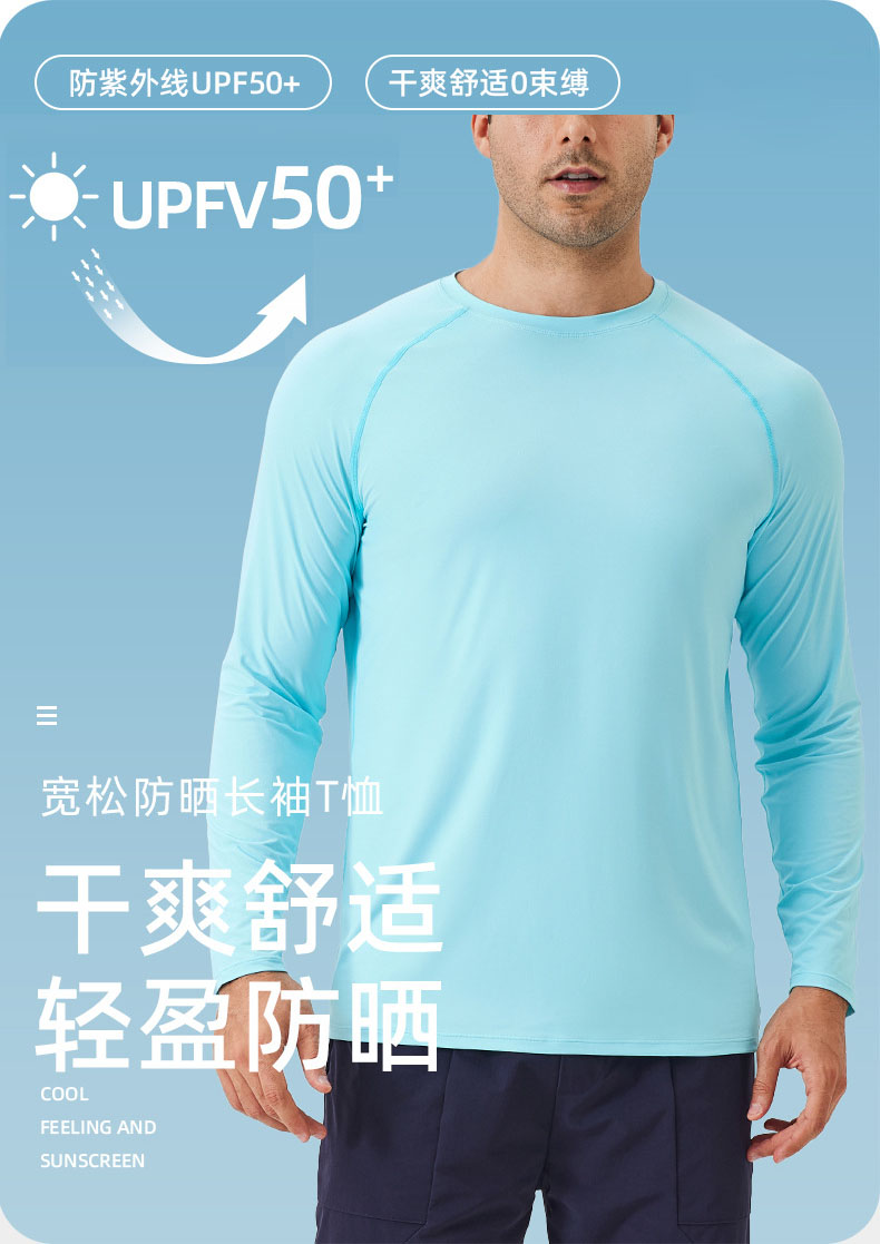 跃牌【欲动春风】男装系列 男士冰丝防晒运动长袖t恤宽松透气长袖上衣41520