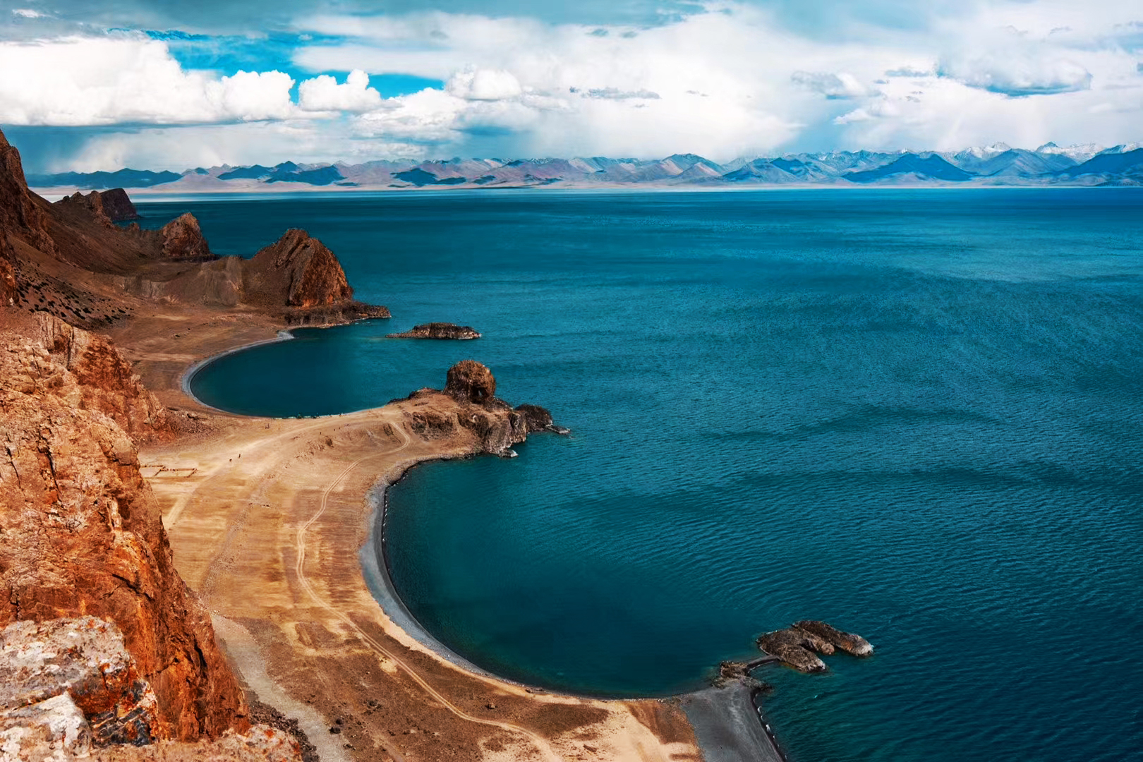 7.圣象天门:纳木错北岸标志性景观,“象鼻” 岩石与湛蓝湖水、雪山同框,日出日落光影绝美。