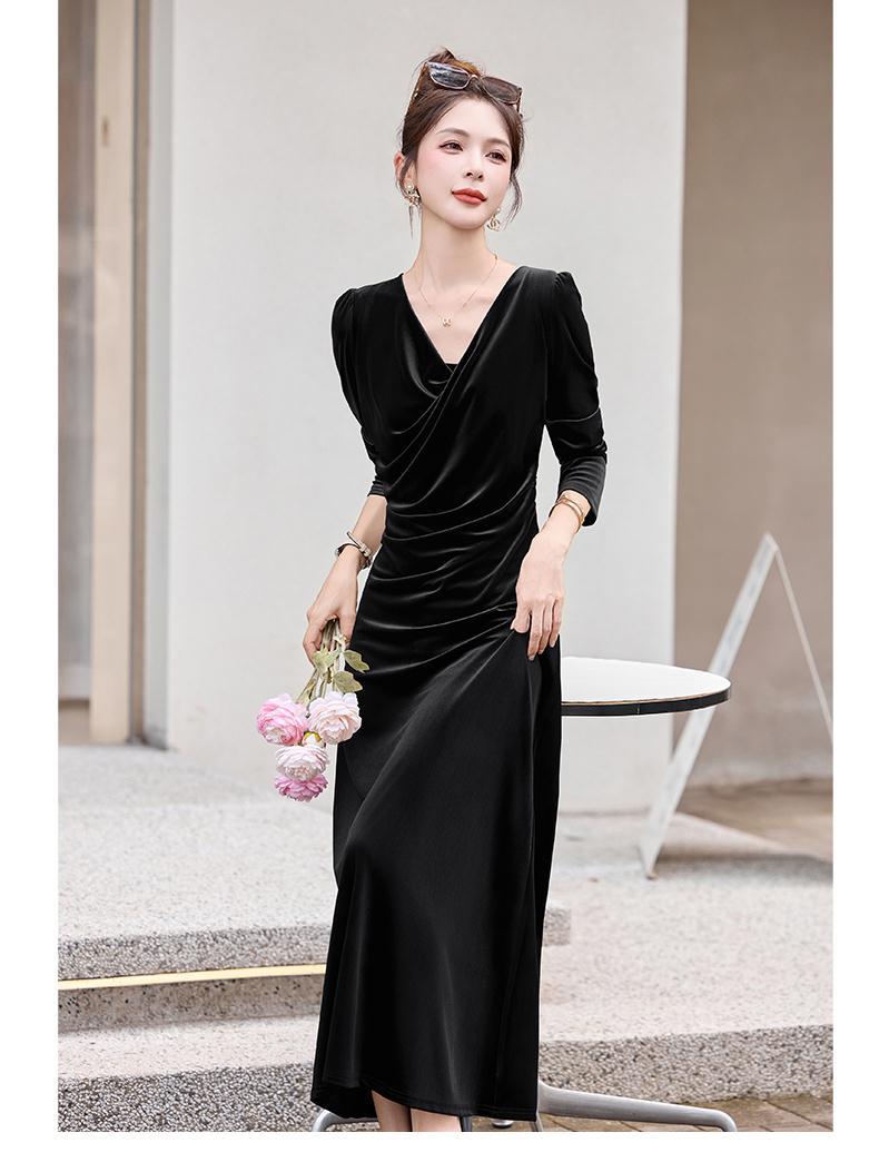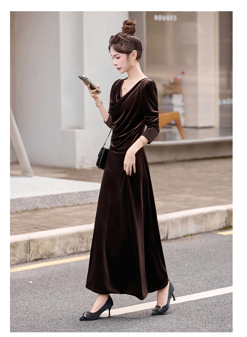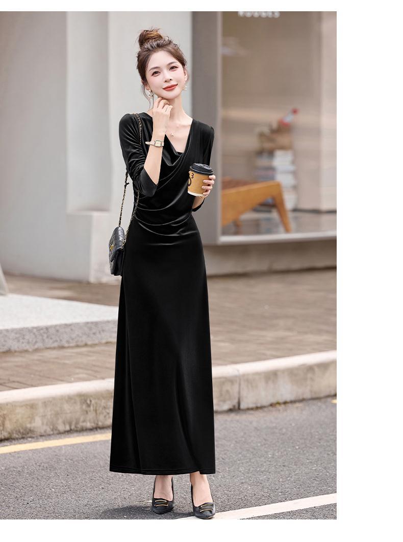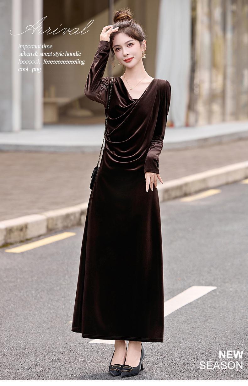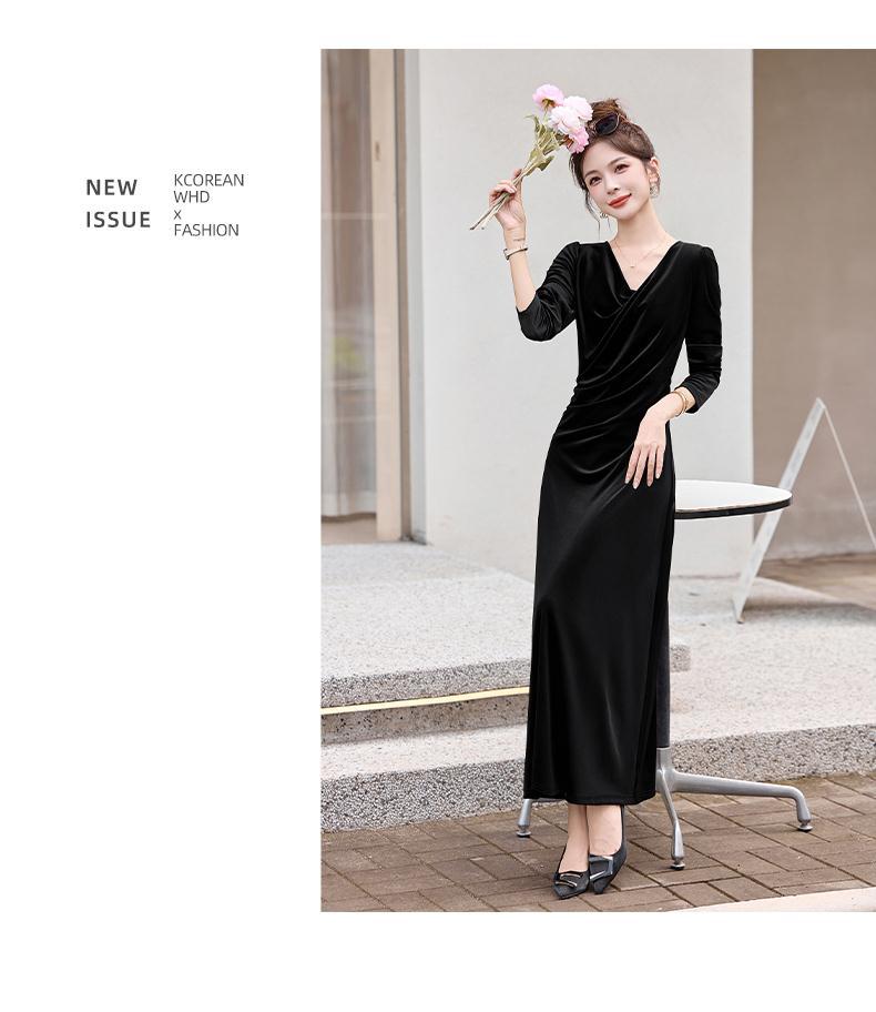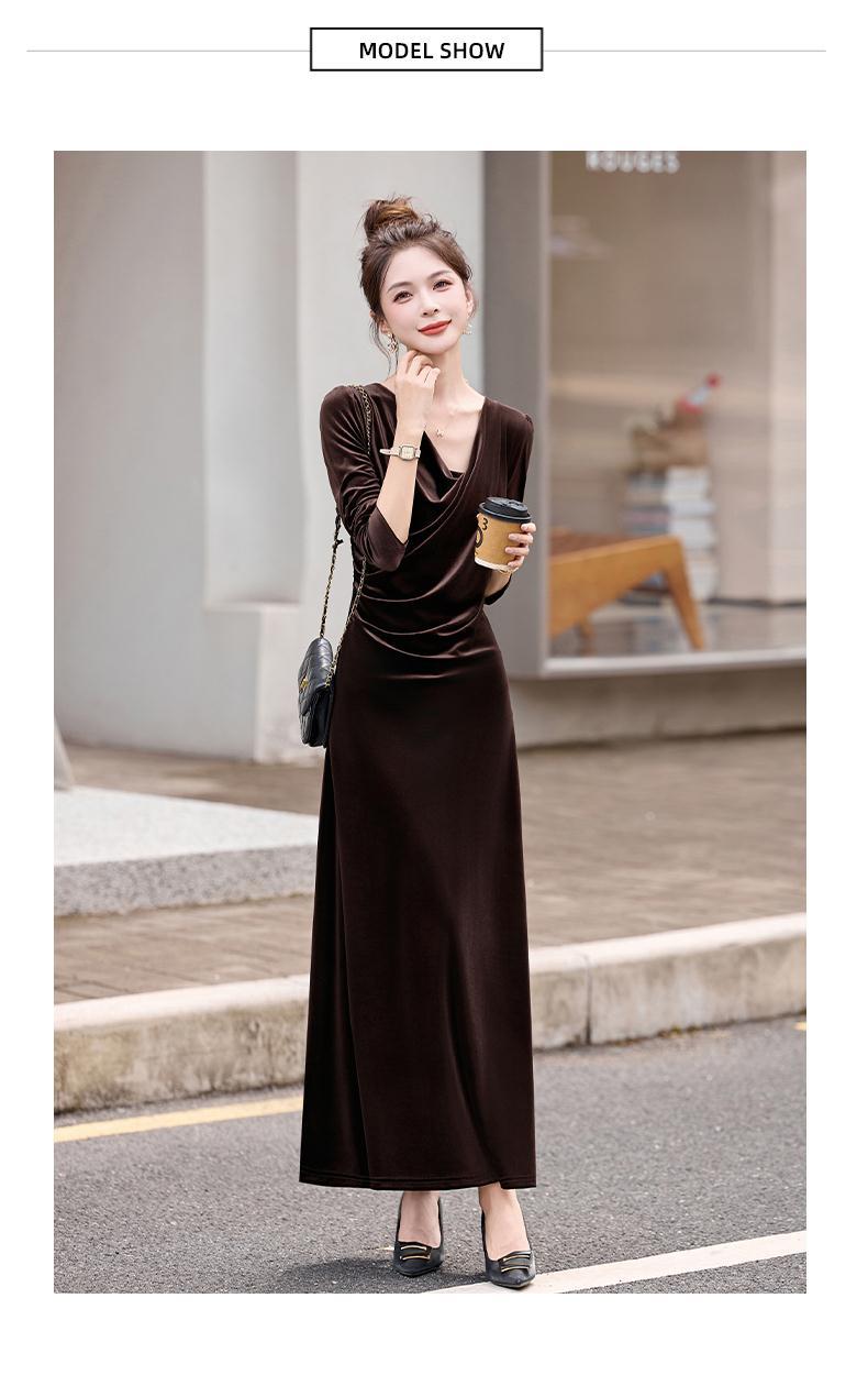 时尚收腰显瘦,轻熟风V领连衣裙HR-SNX3182