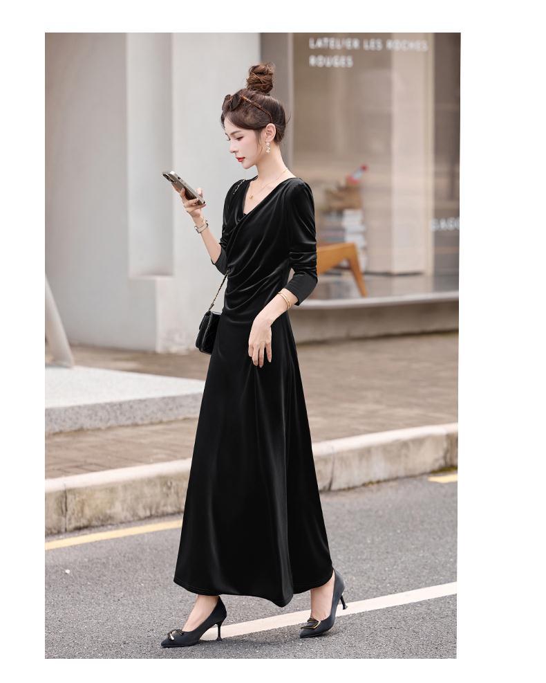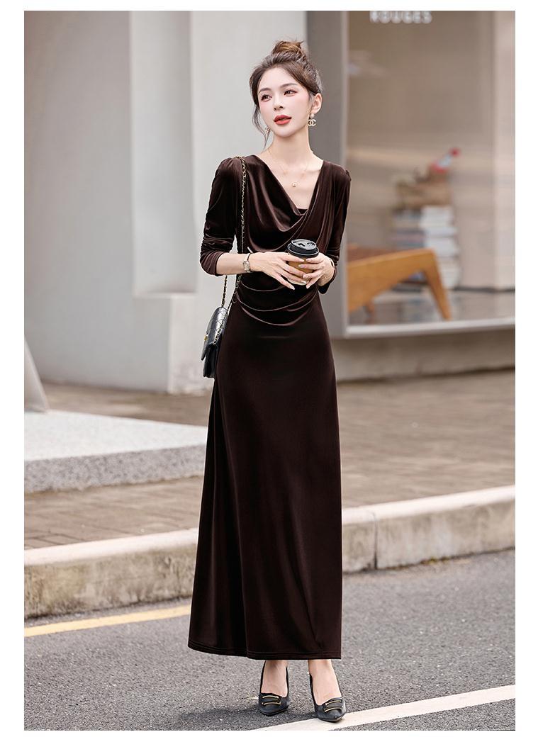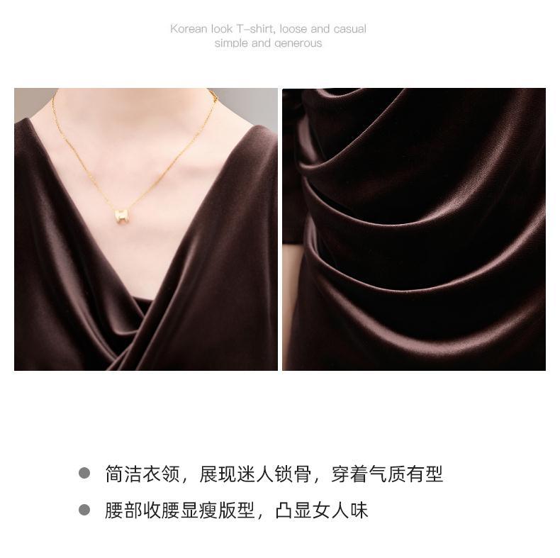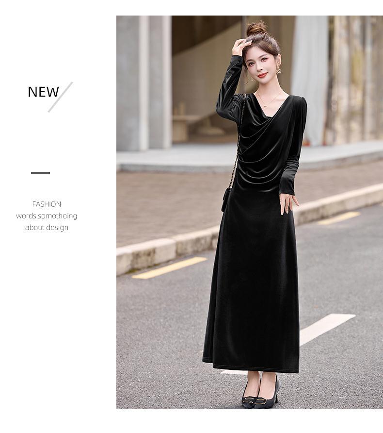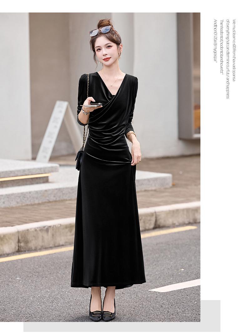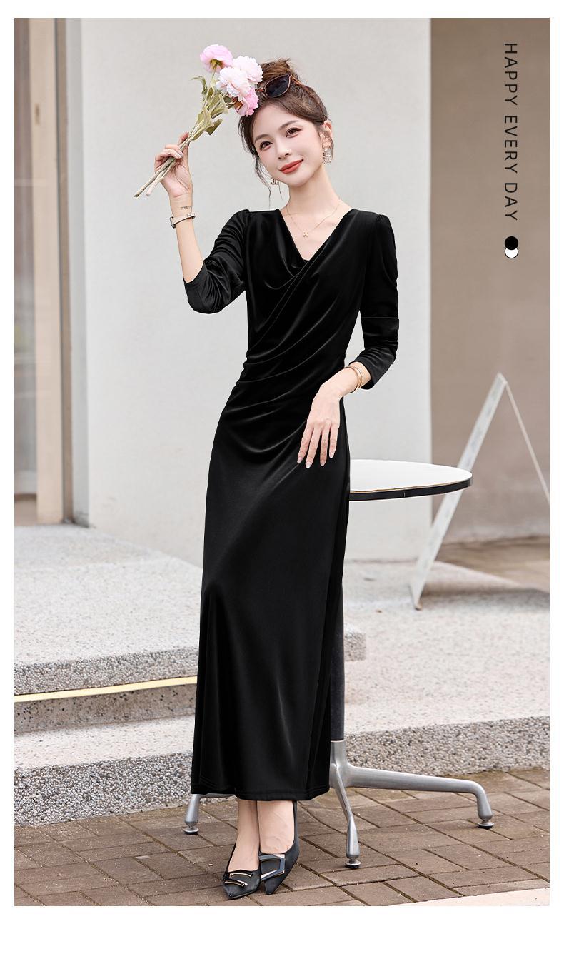 时尚收腰显瘦,轻熟风V领连衣裙HR-SNX3182