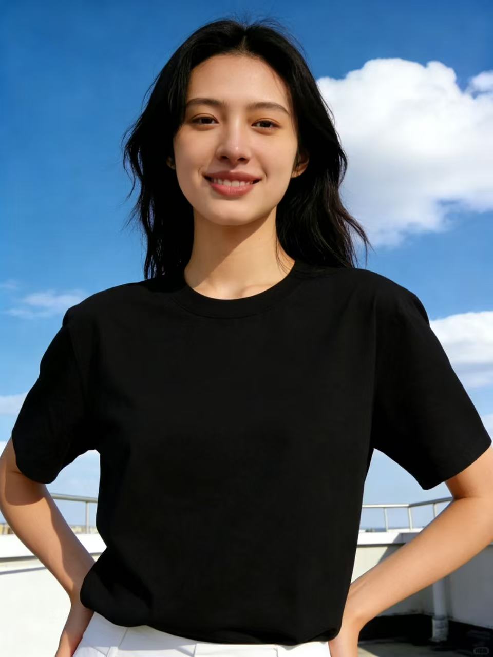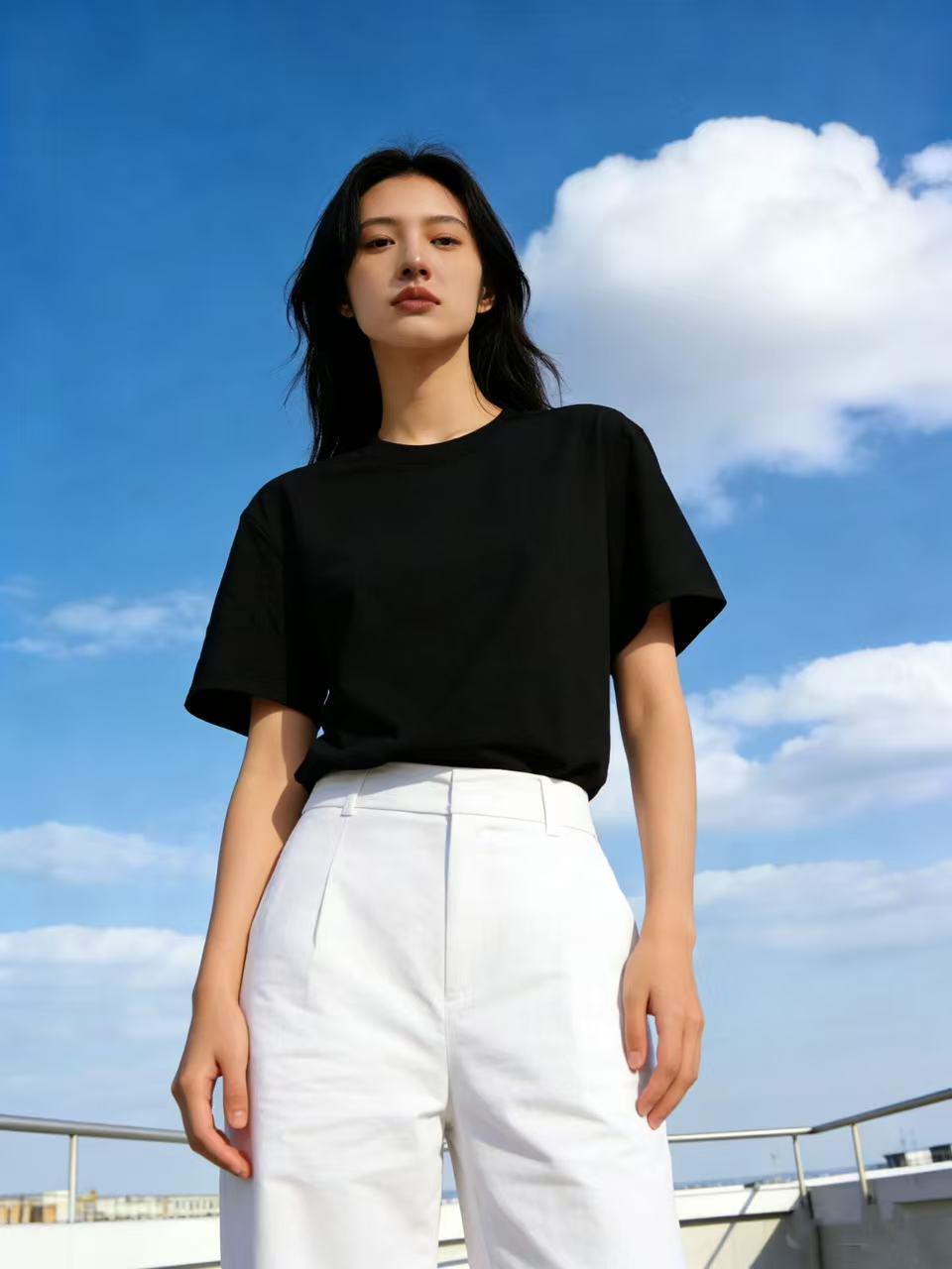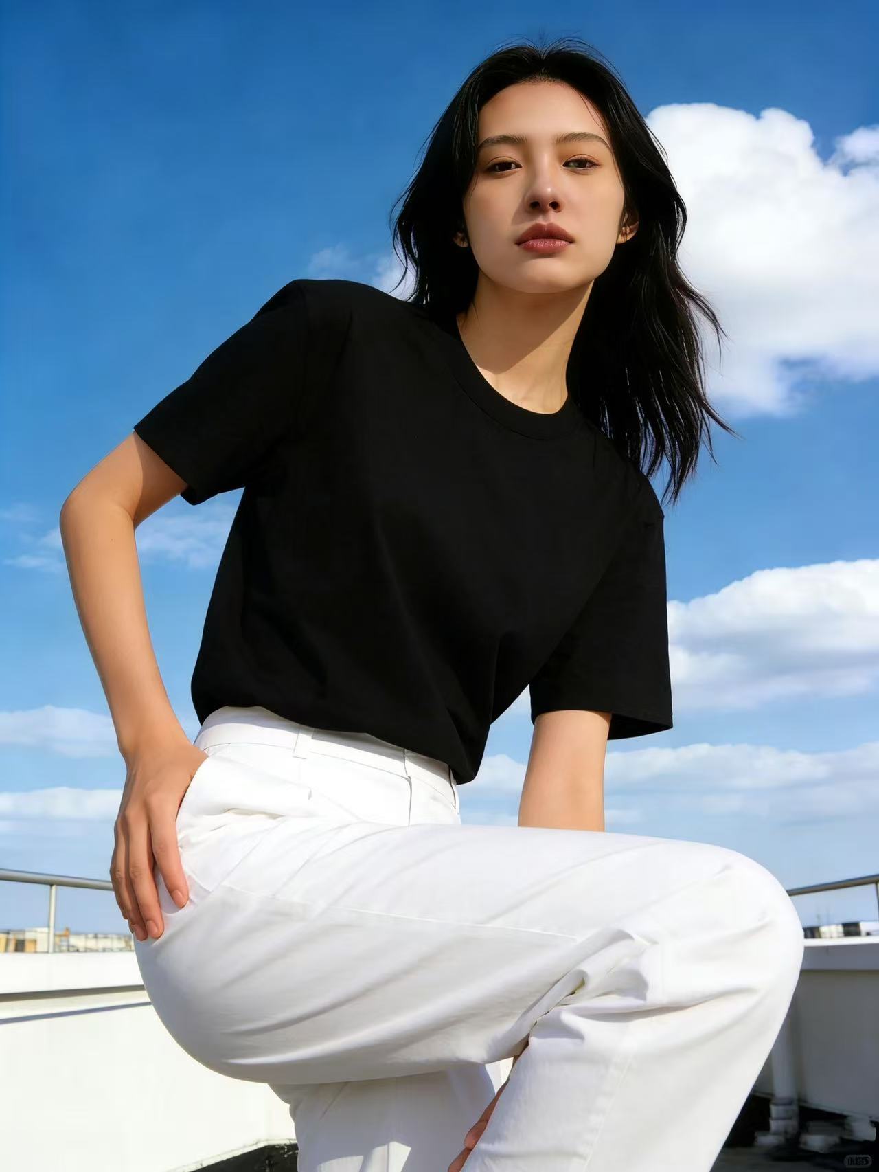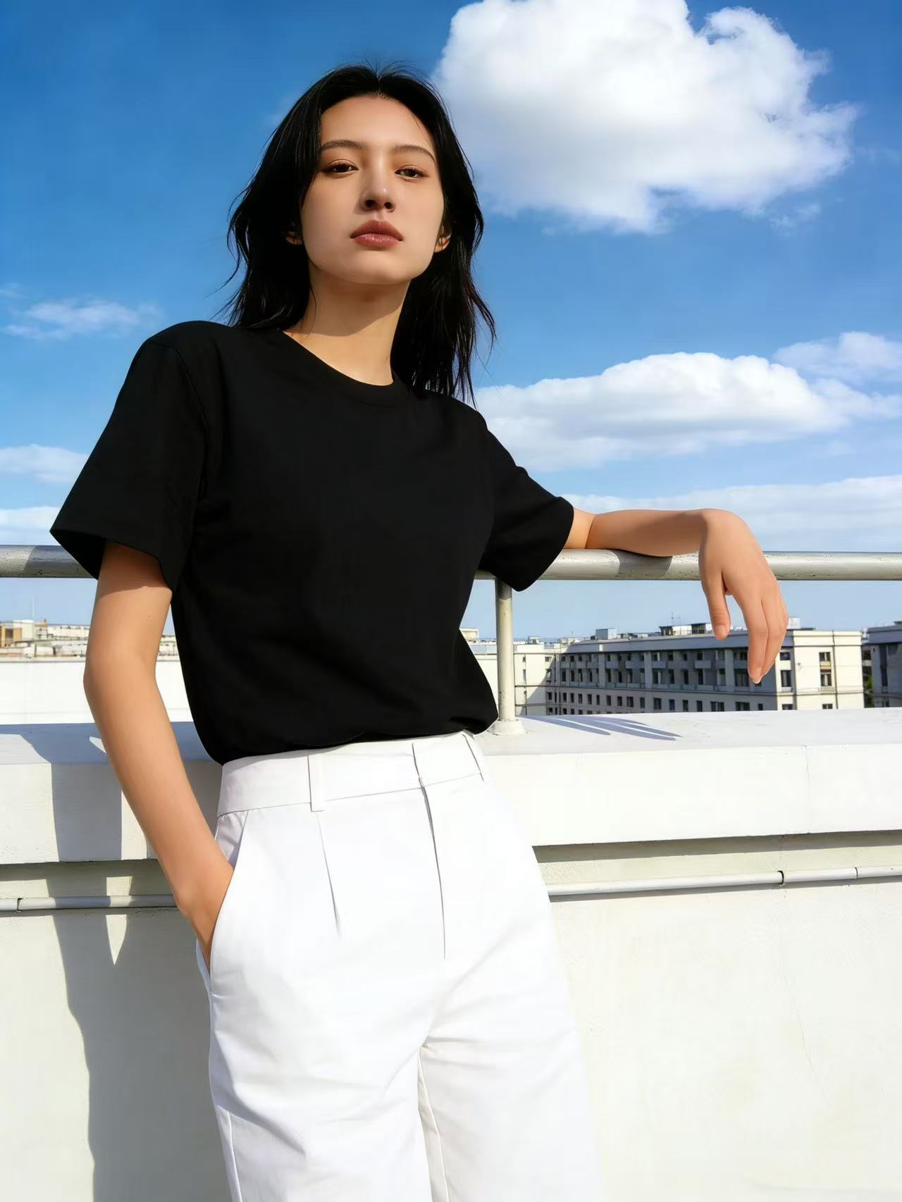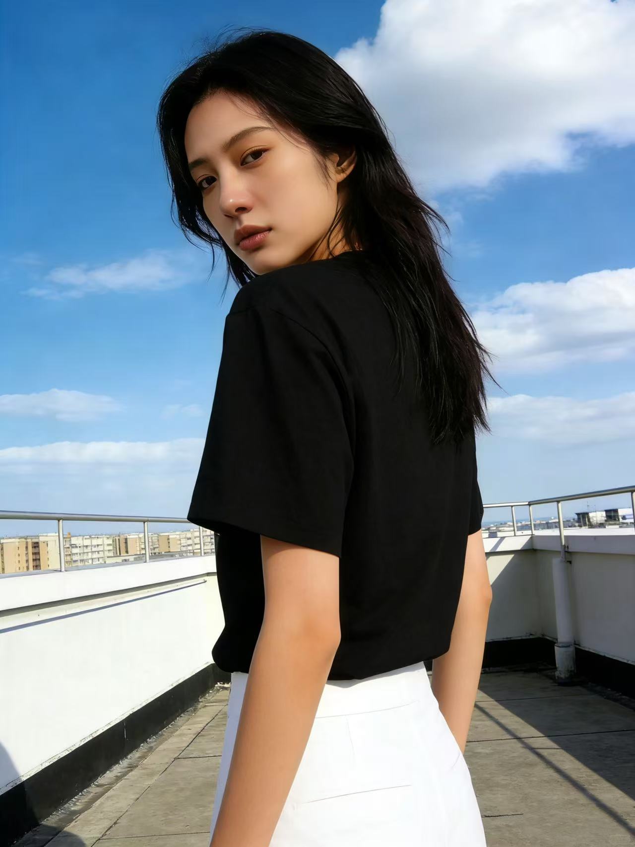 【自营】“黑色”纯色T恤!7808百搭95%棉圆领简约休闲短袖T恤上衣-喜出