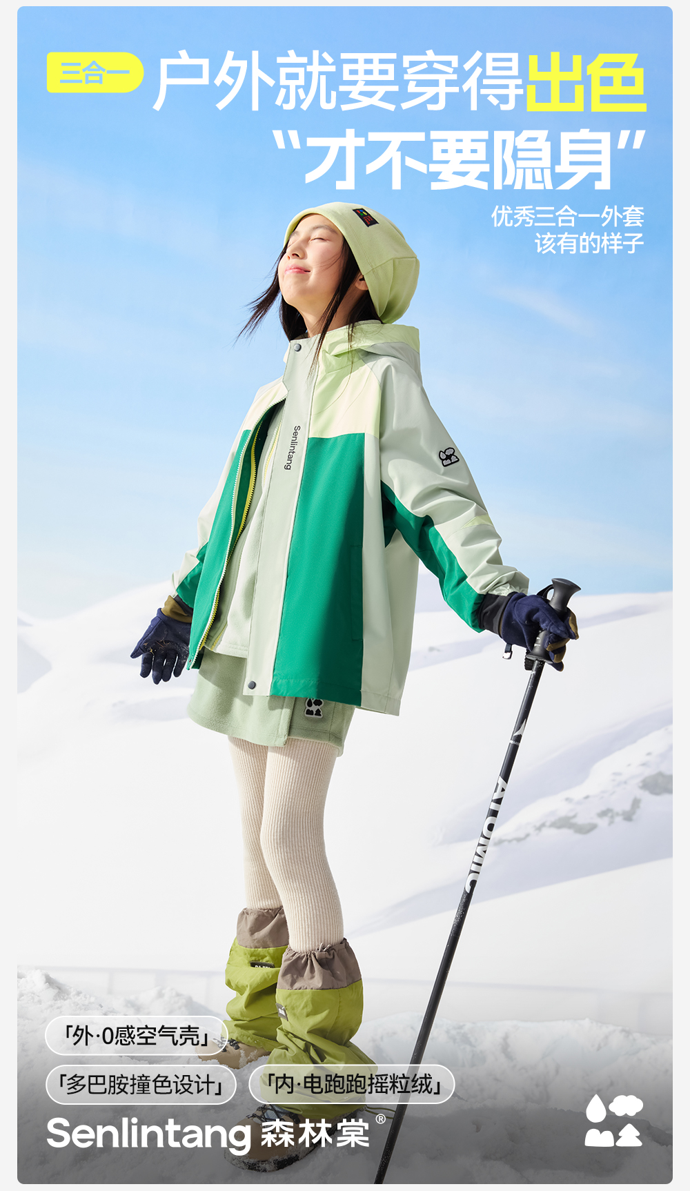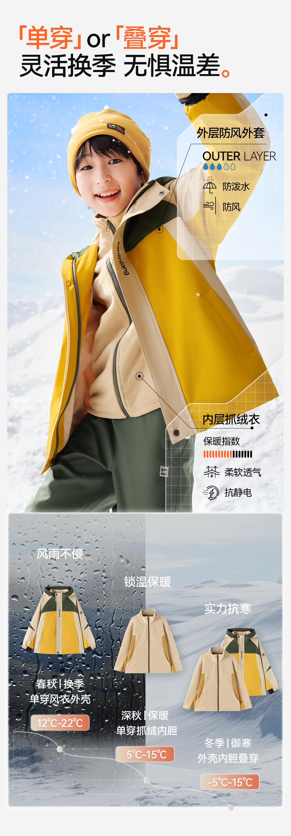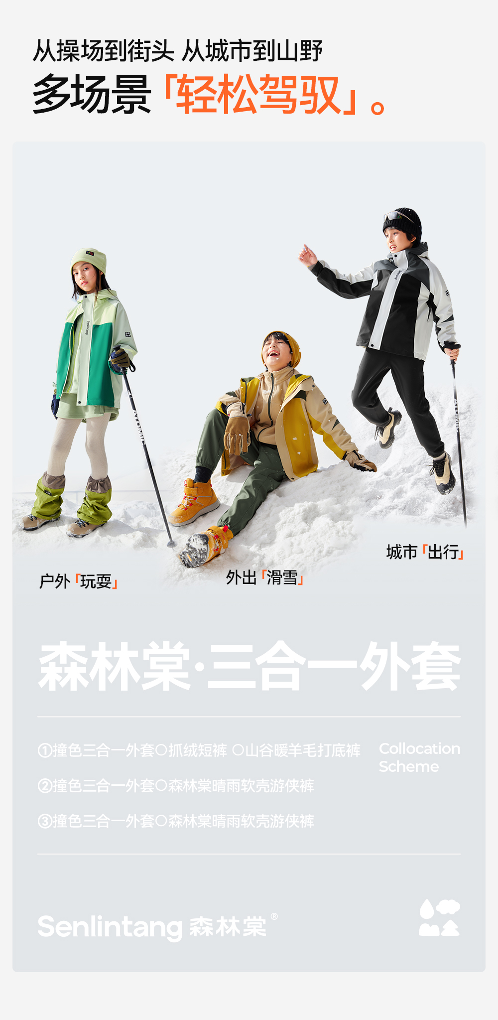 【撞色三合一外套】森林棠25秋冬新款防风儿童三合一风衣中大童外套61653014