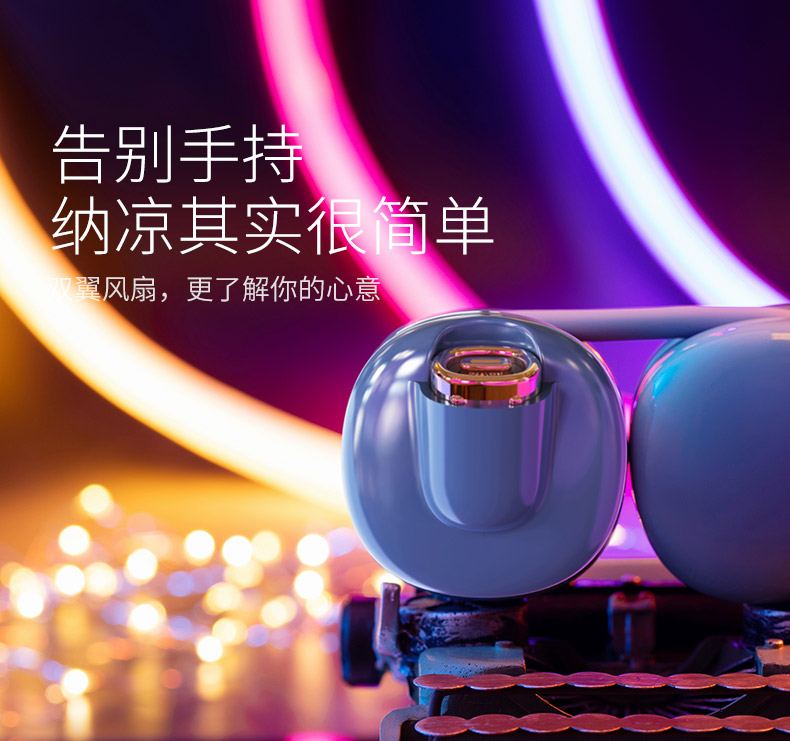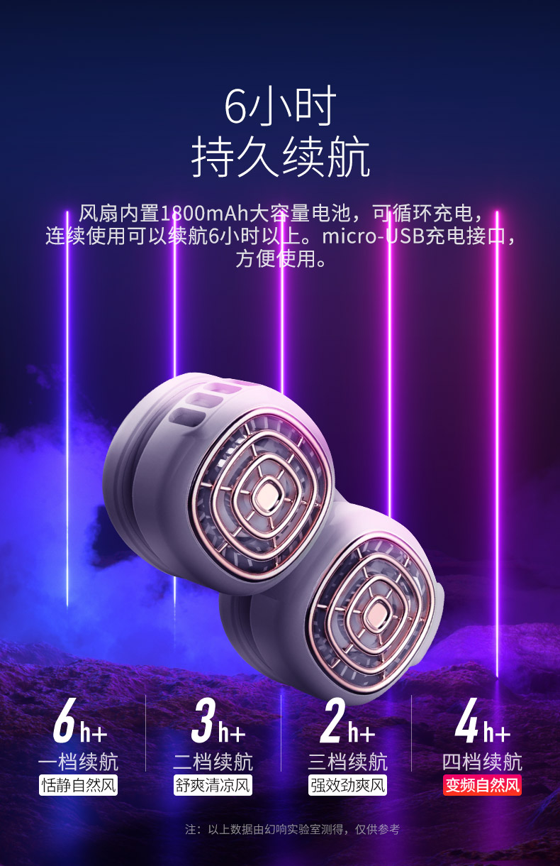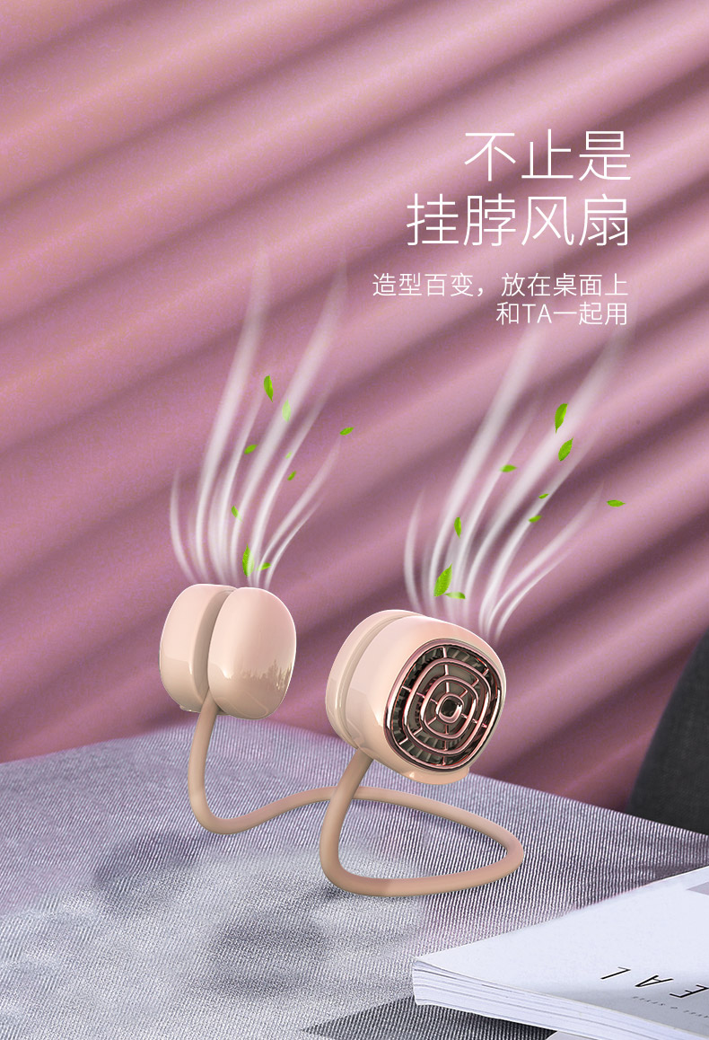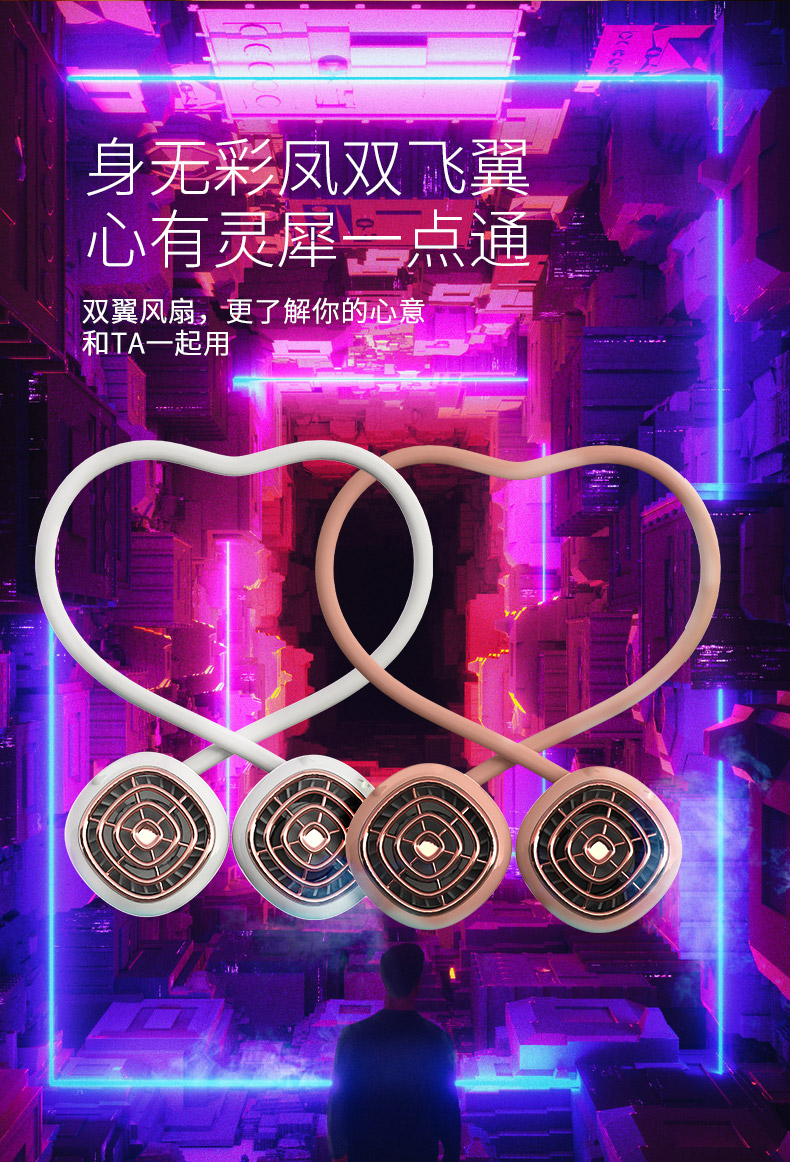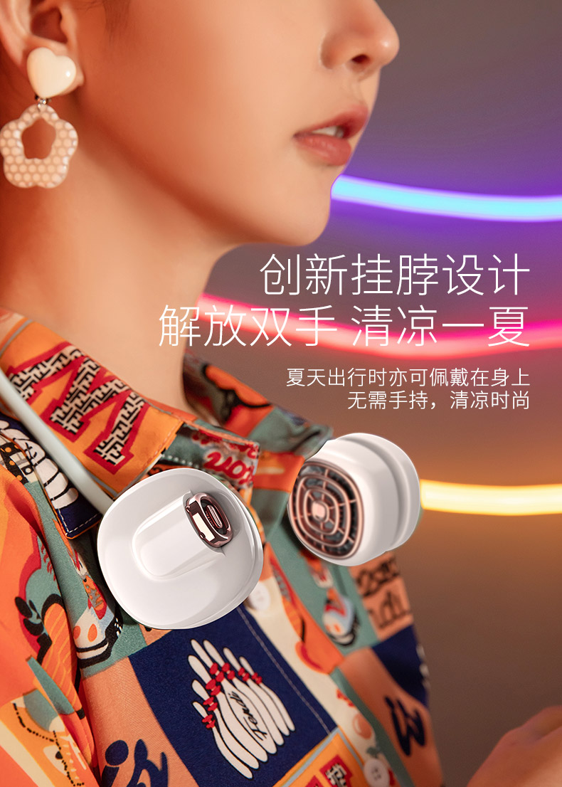 【夏天必备 时尚搭配】国潮幻响挂脖风扇双翼可收纳静音不绞发