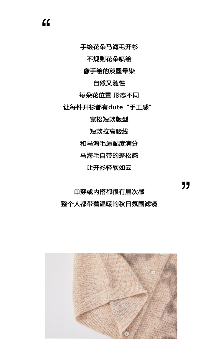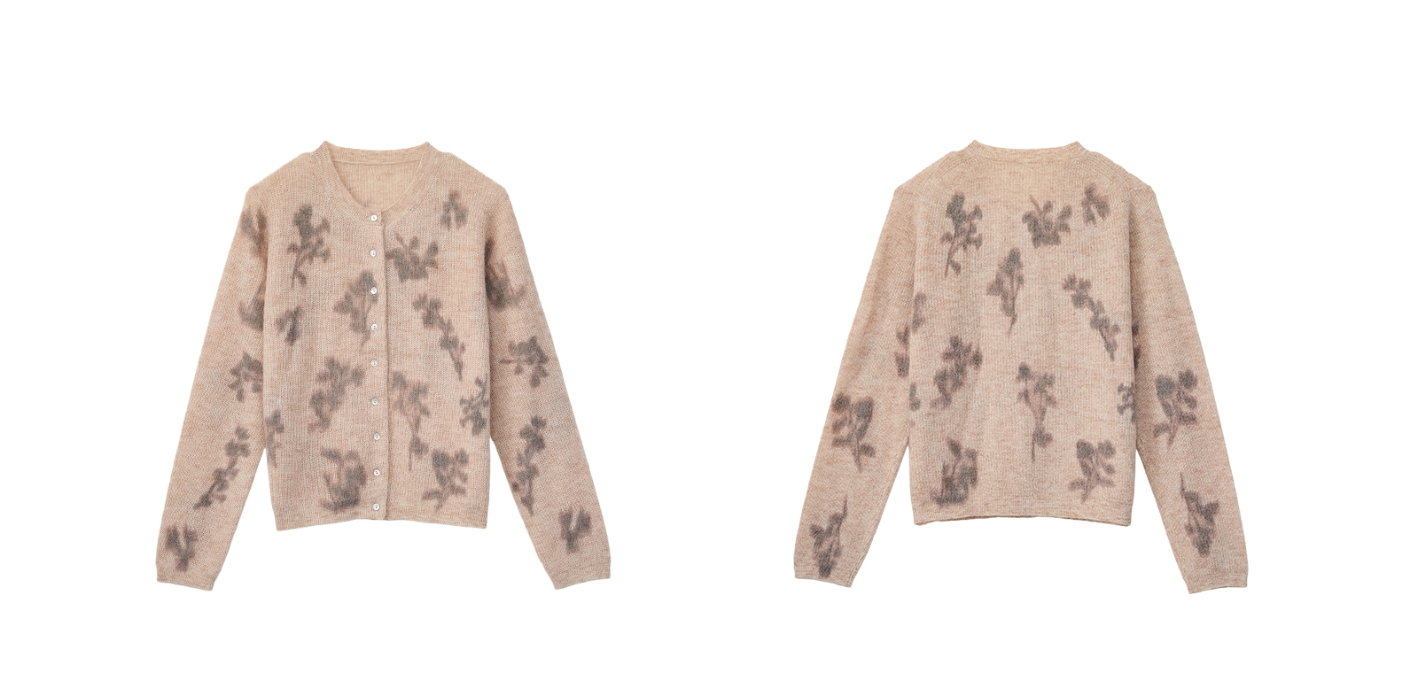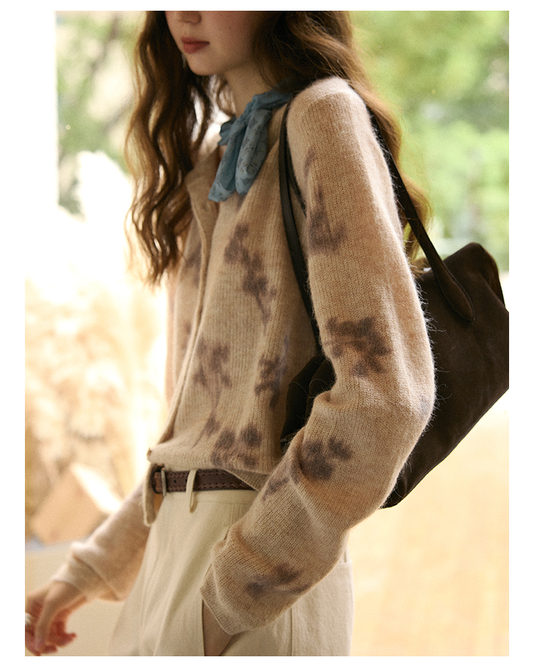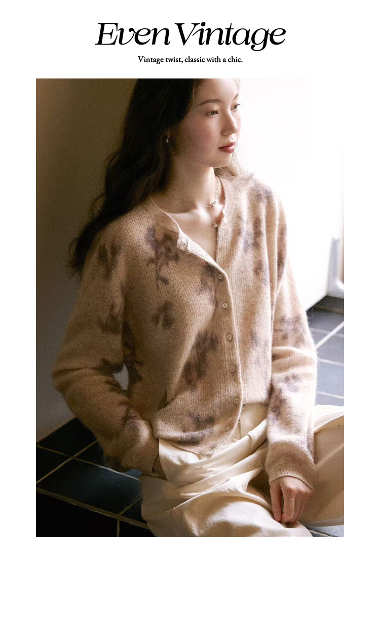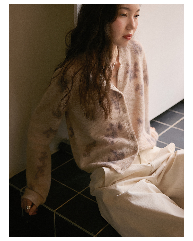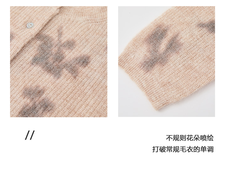 Even Vintage | 羊驼绵羊毛混纺 手绘不规则花朵喷绘空气感开衫