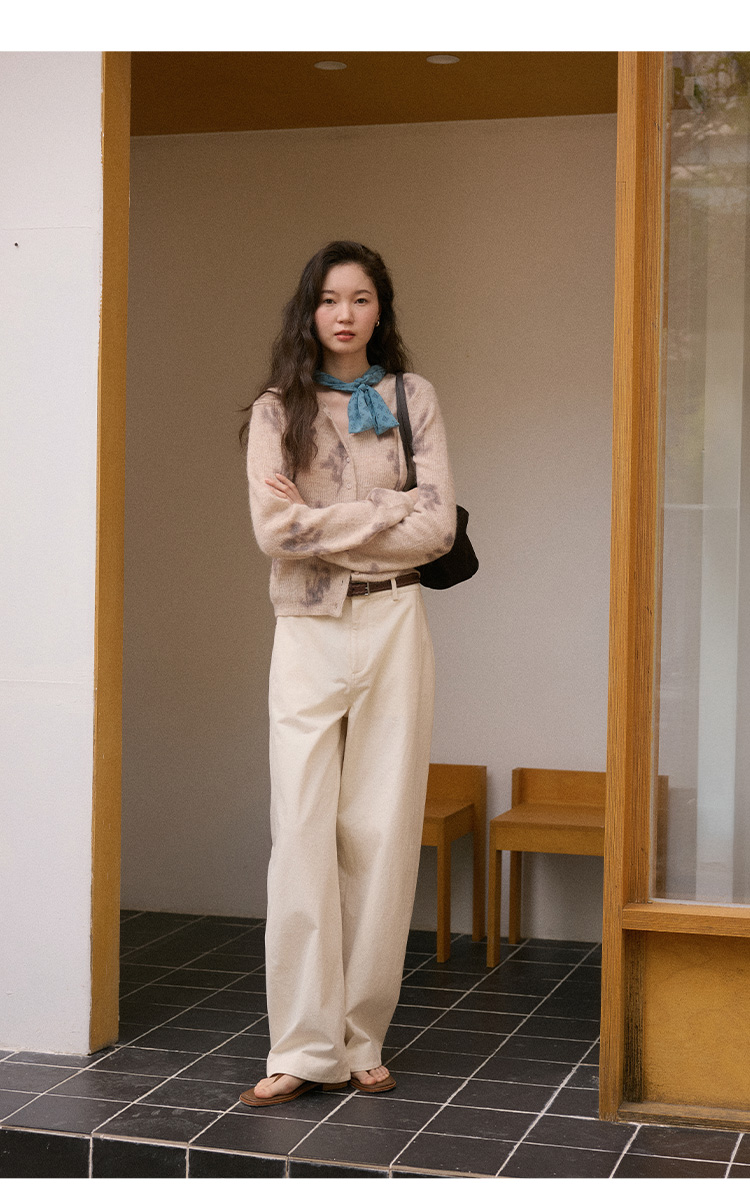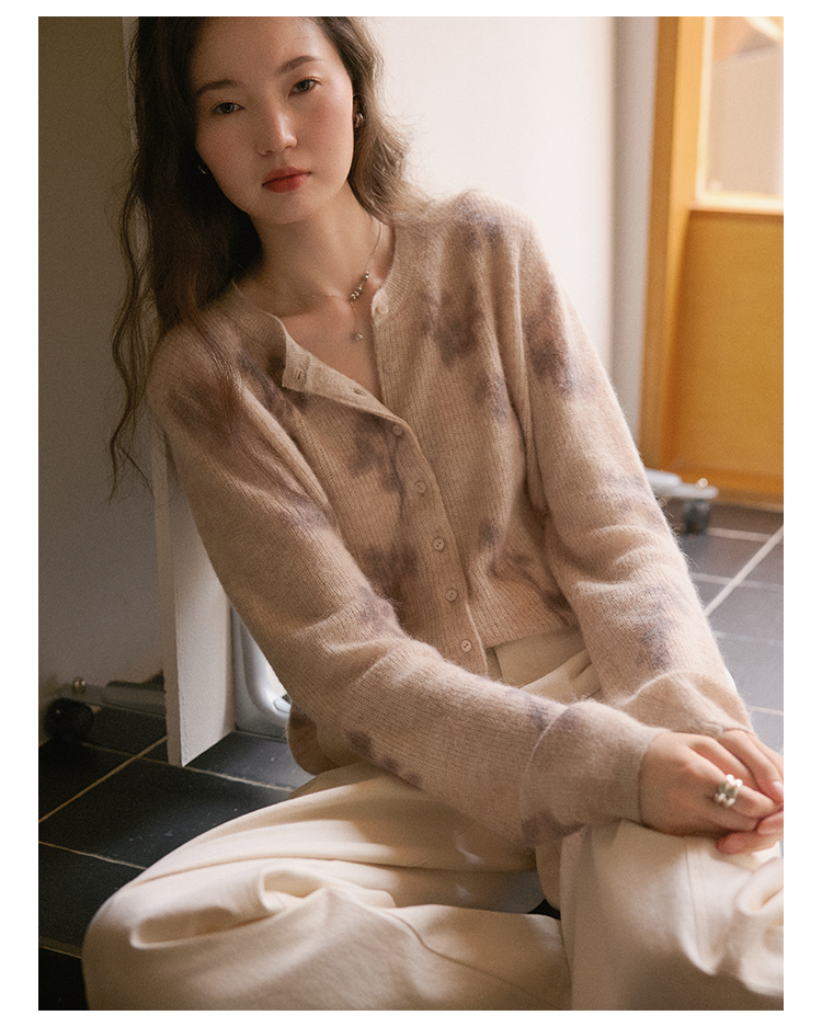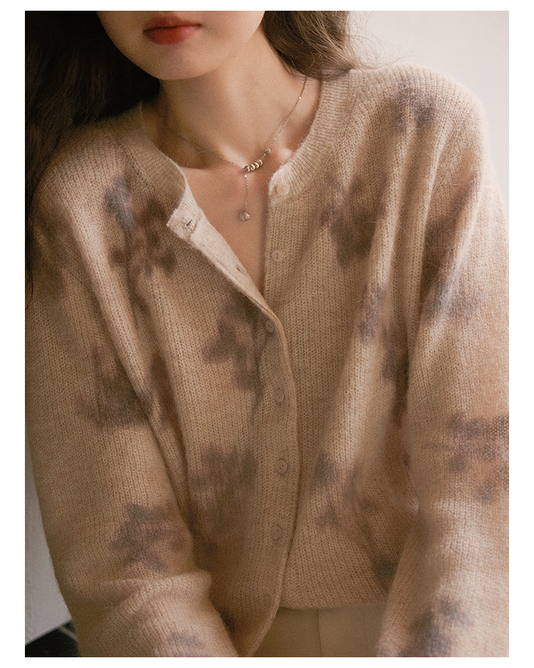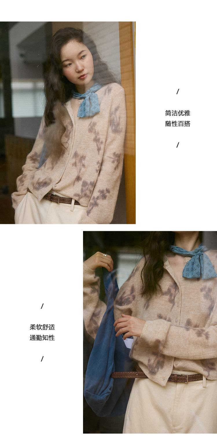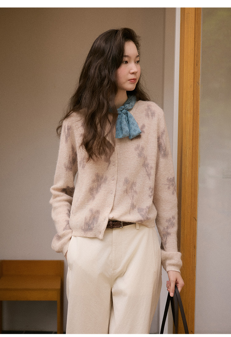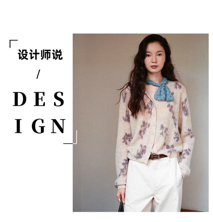 Even Vintage | 羊驼绵羊毛混纺 手绘不规则花朵喷绘空气感开衫