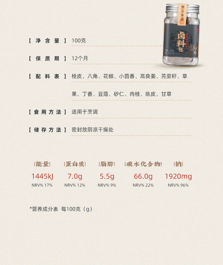 潮汕集锦五香卤料包 大瓶装100g (10包/瓶)