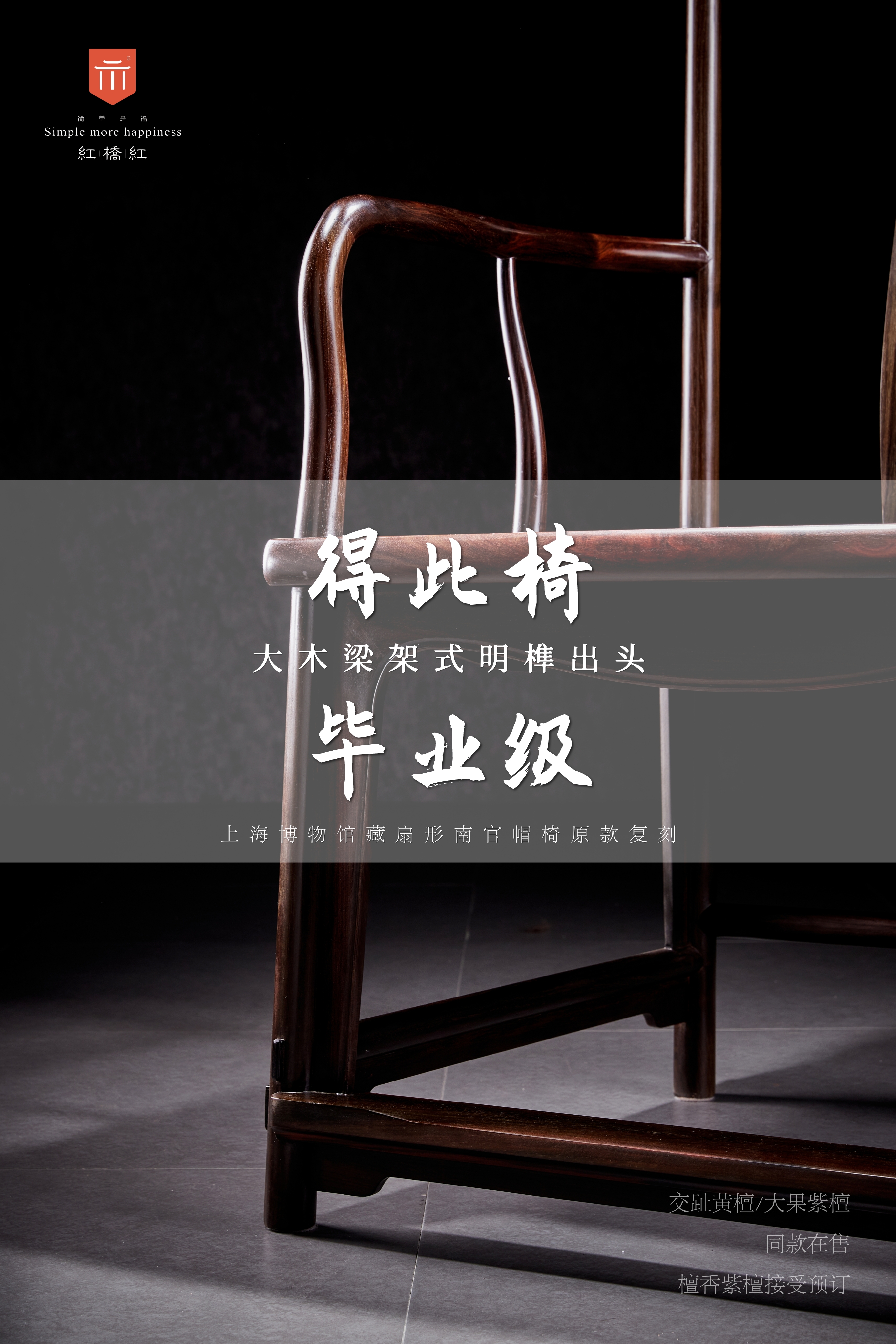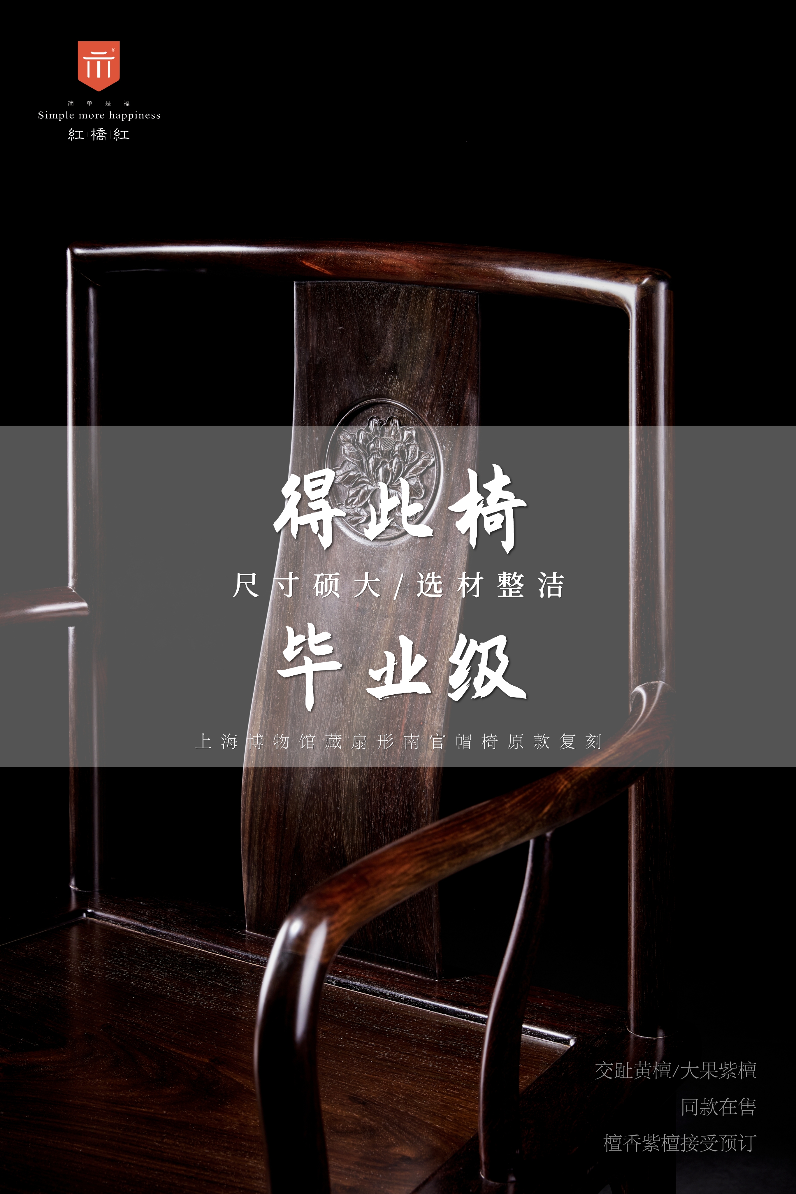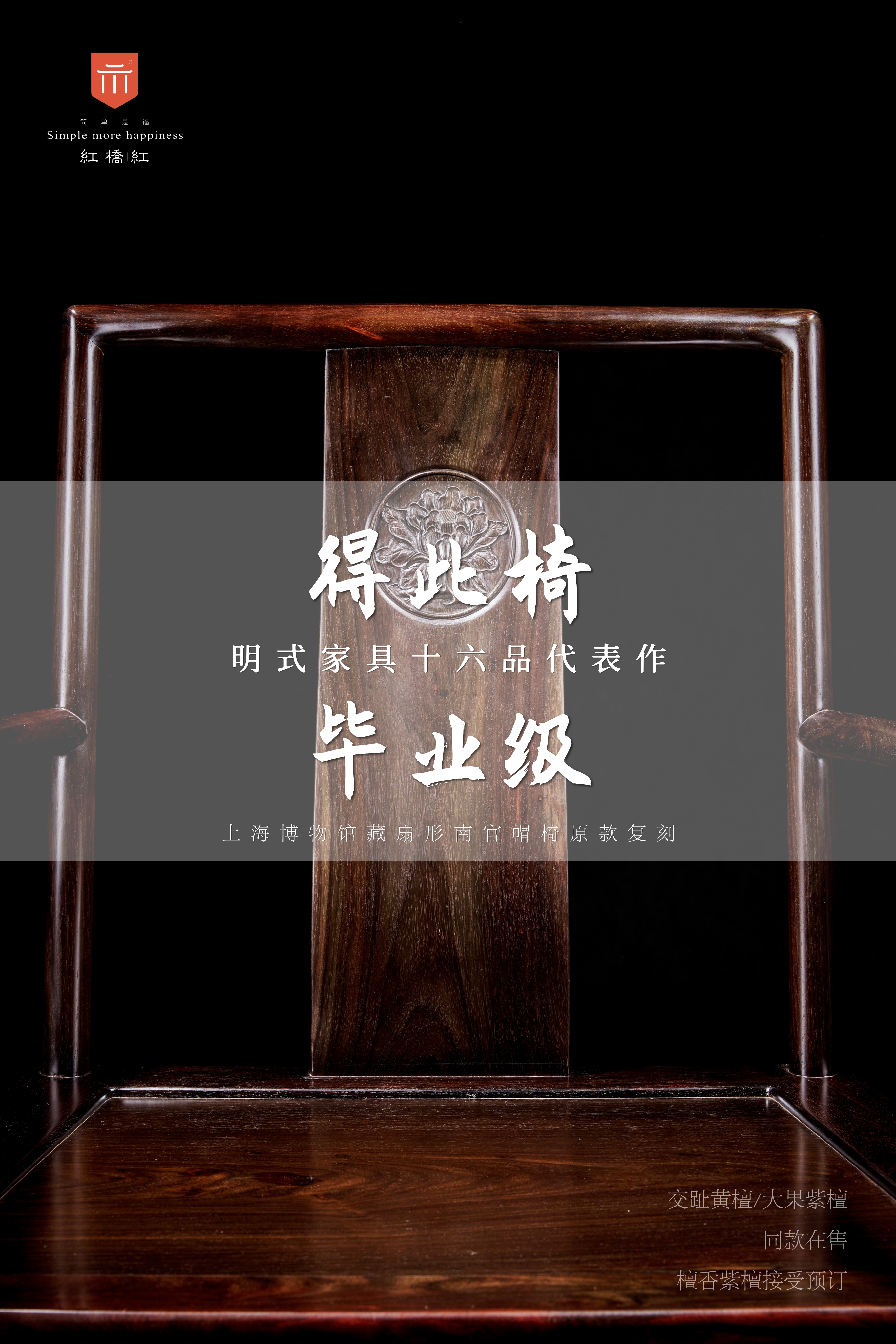 此官帽椅原型是王世襄“明式家具十六品”之凝重派的代表作扇面形南官帽椅,被王老先生选作《明式家具研究》的封面。