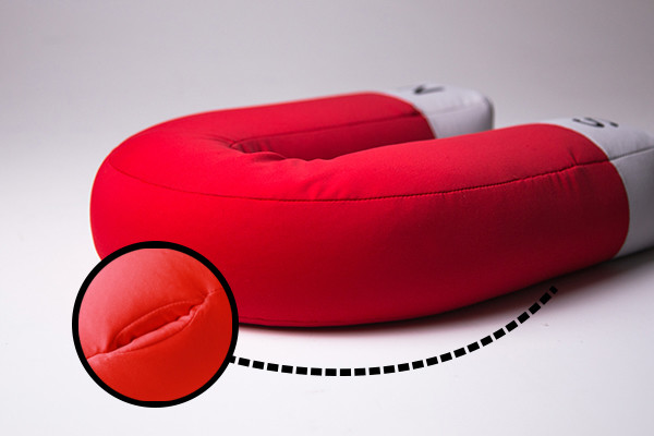 磁铁颈枕的NS两极真的具有磁性,可以对吸起来。