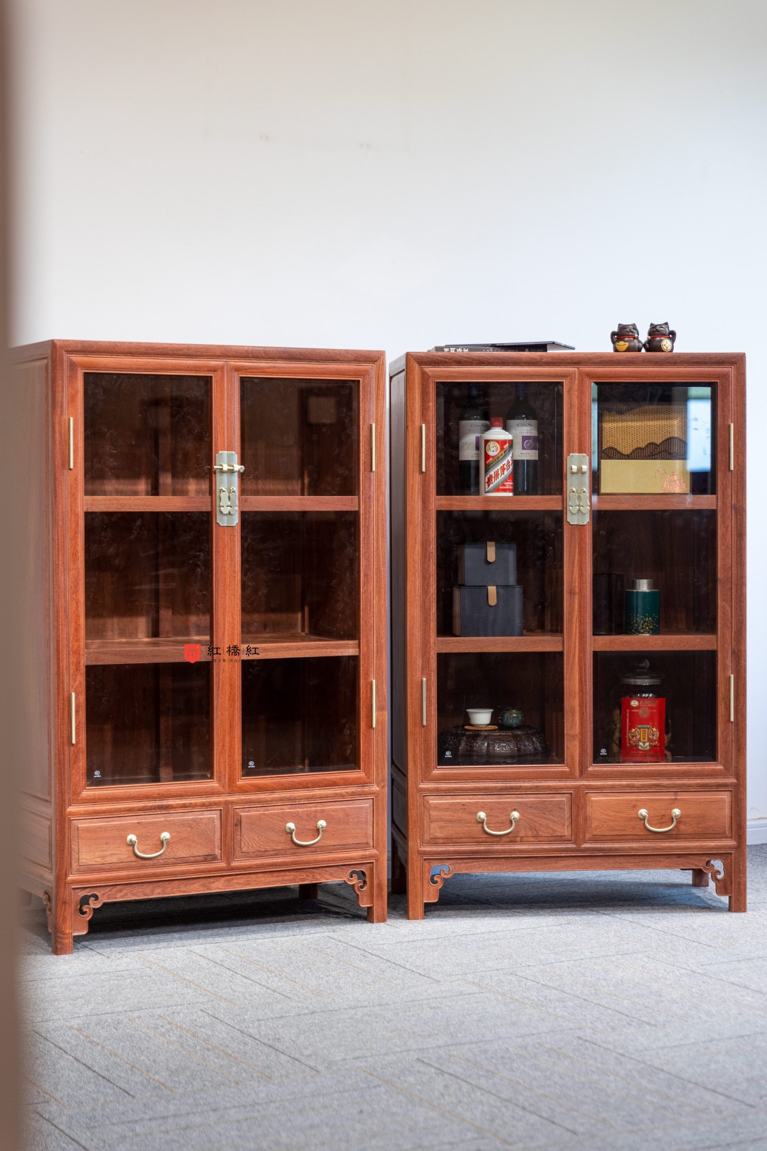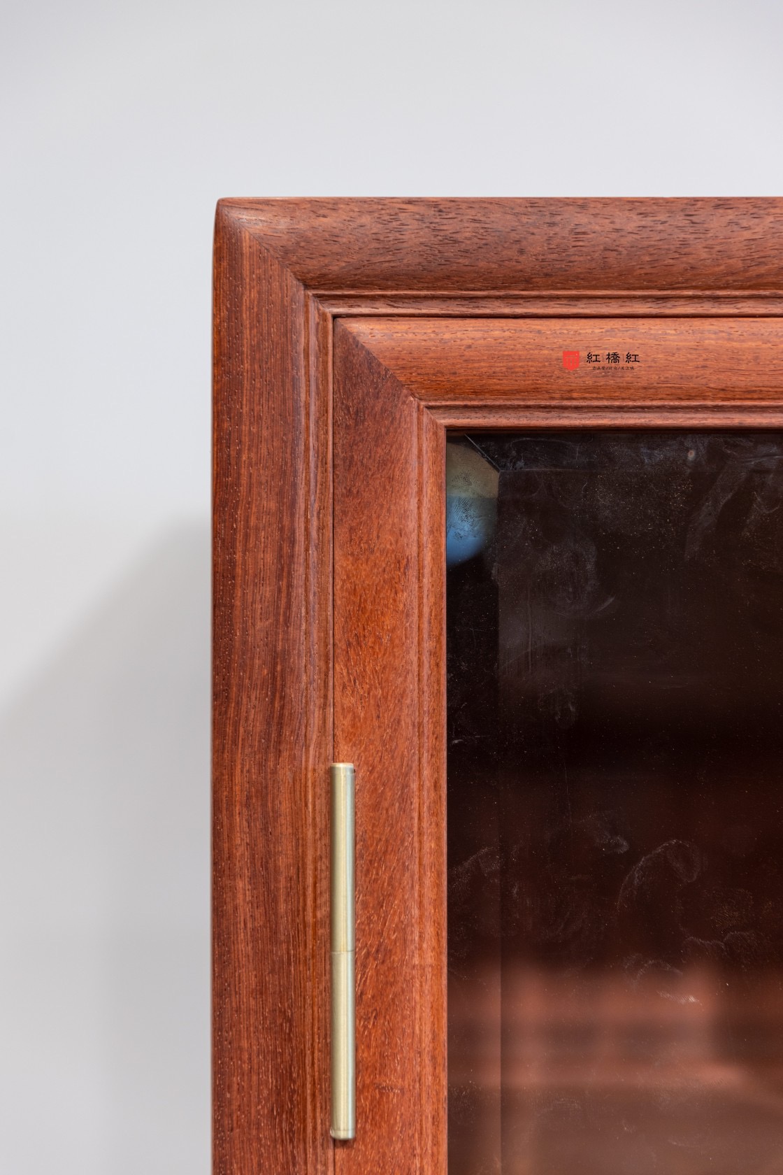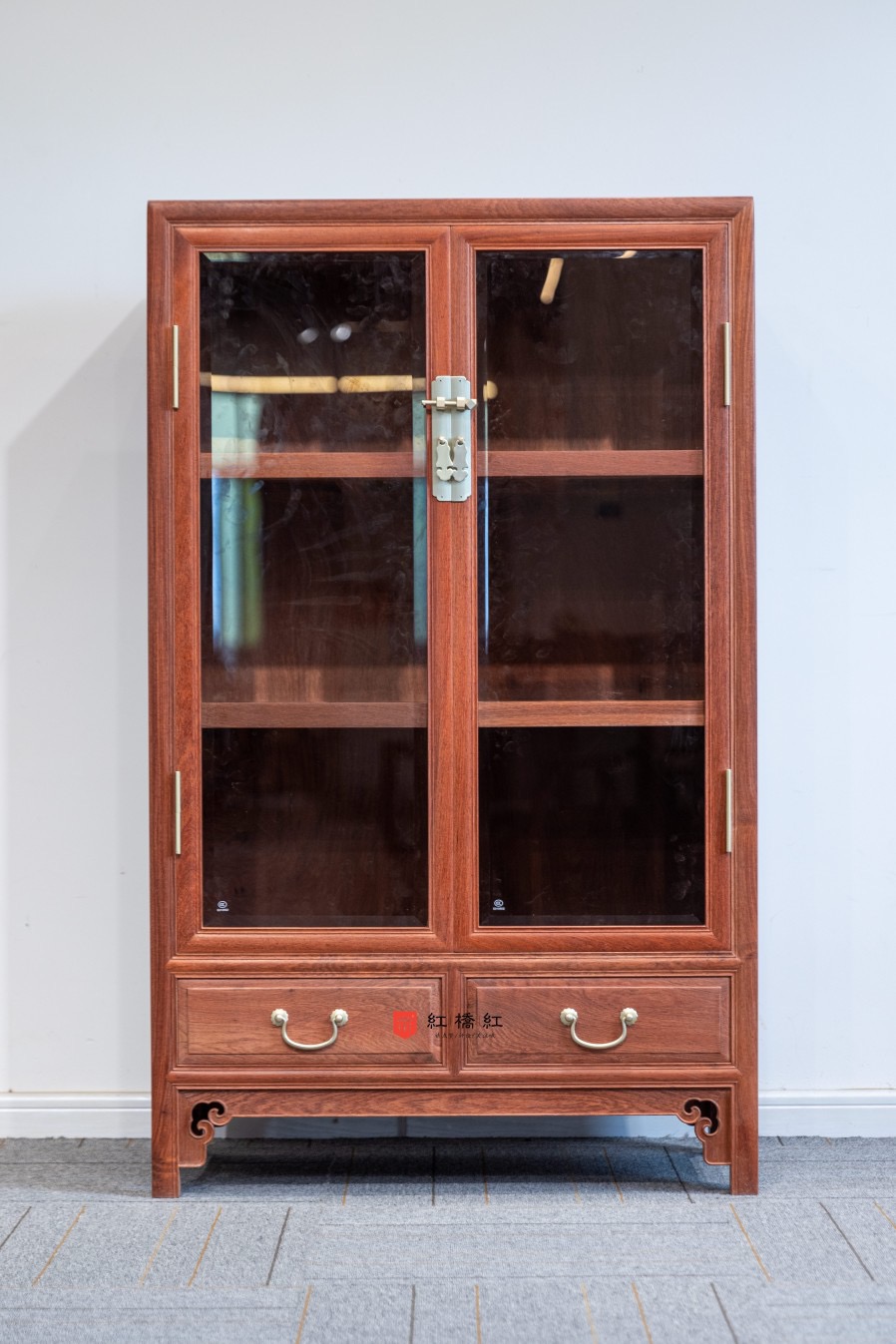 此款玻璃展示柜周正大方,柜内采用分层设计,上方做透明玻璃柜展示,可放置文玩、书籍,一目了然,且有效防尘。