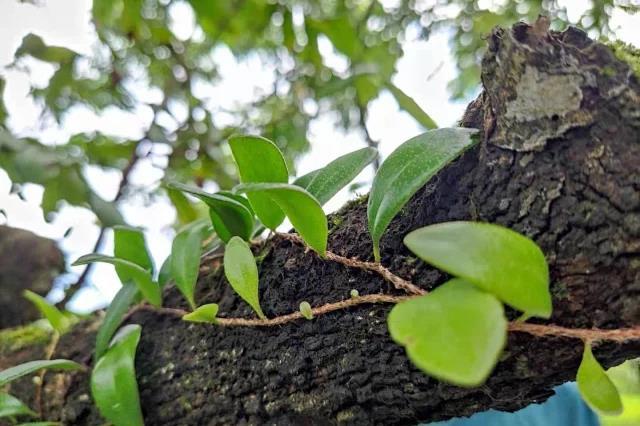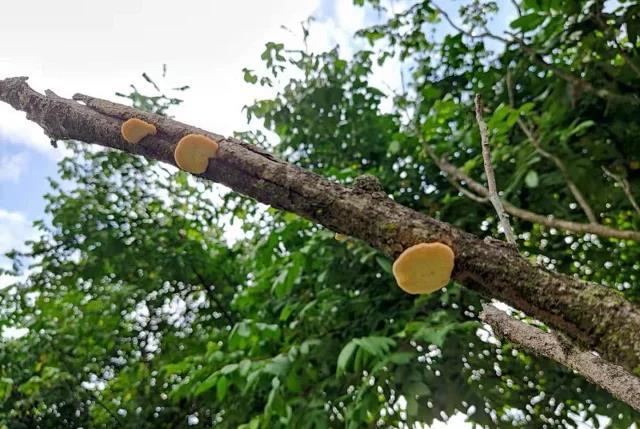野放的树上长满青苔,还有野生菌类、藤蔓