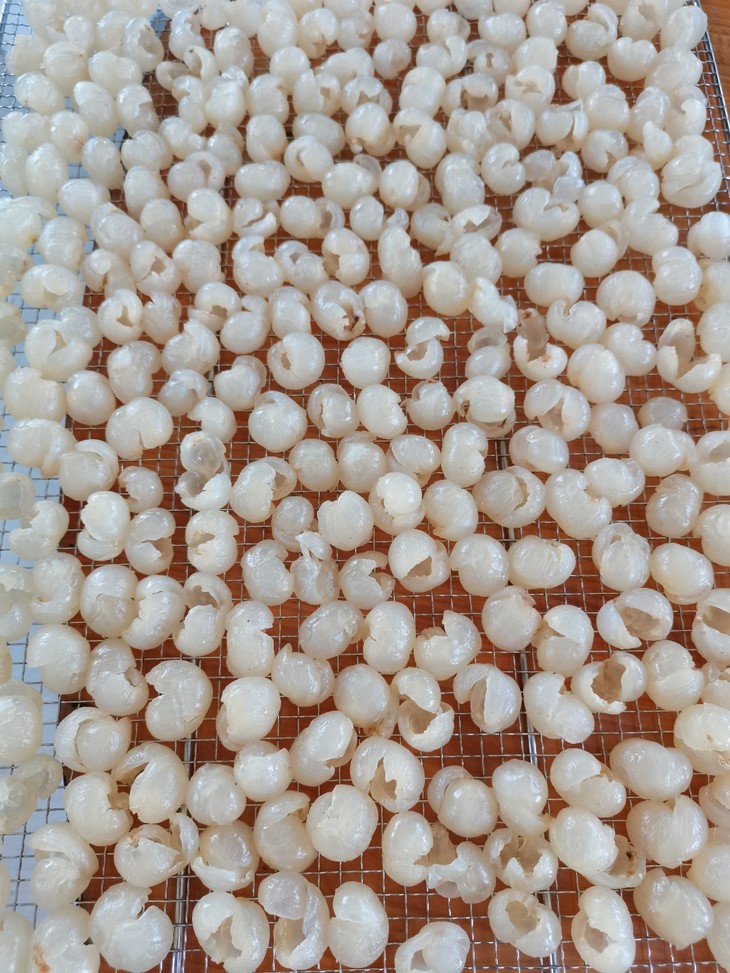 桂圆肉制作先将龙眼从树上采摘下来,去掉被鸟儿虫儿叮过和坏掉的果子,龙眼一粒粒的去核留肉,把龙眼肉整齐的铺在烤网上烘烤,烤干后还要太阳晾晒。十斤龙眼可以烤出(1斤~1斤2两)的桂圆肉。