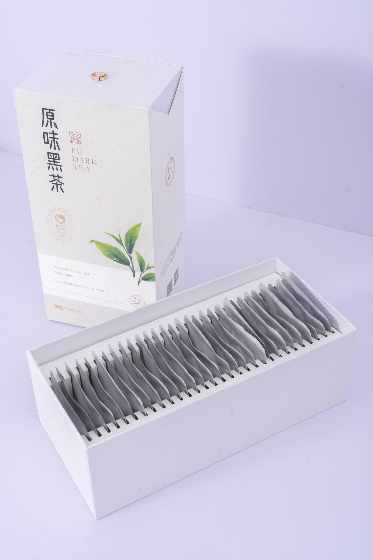 玫瑰黑茶、陈皮黑茶、荷香黑茶、原味黑茶;一箱16盒,有双盒装和单盒装。