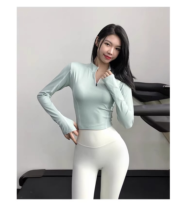 跃牌【倚窗听雨系列】宽松速干健身服显瘦裸感跑步长袖运动上衣 CX29(无胸垫)