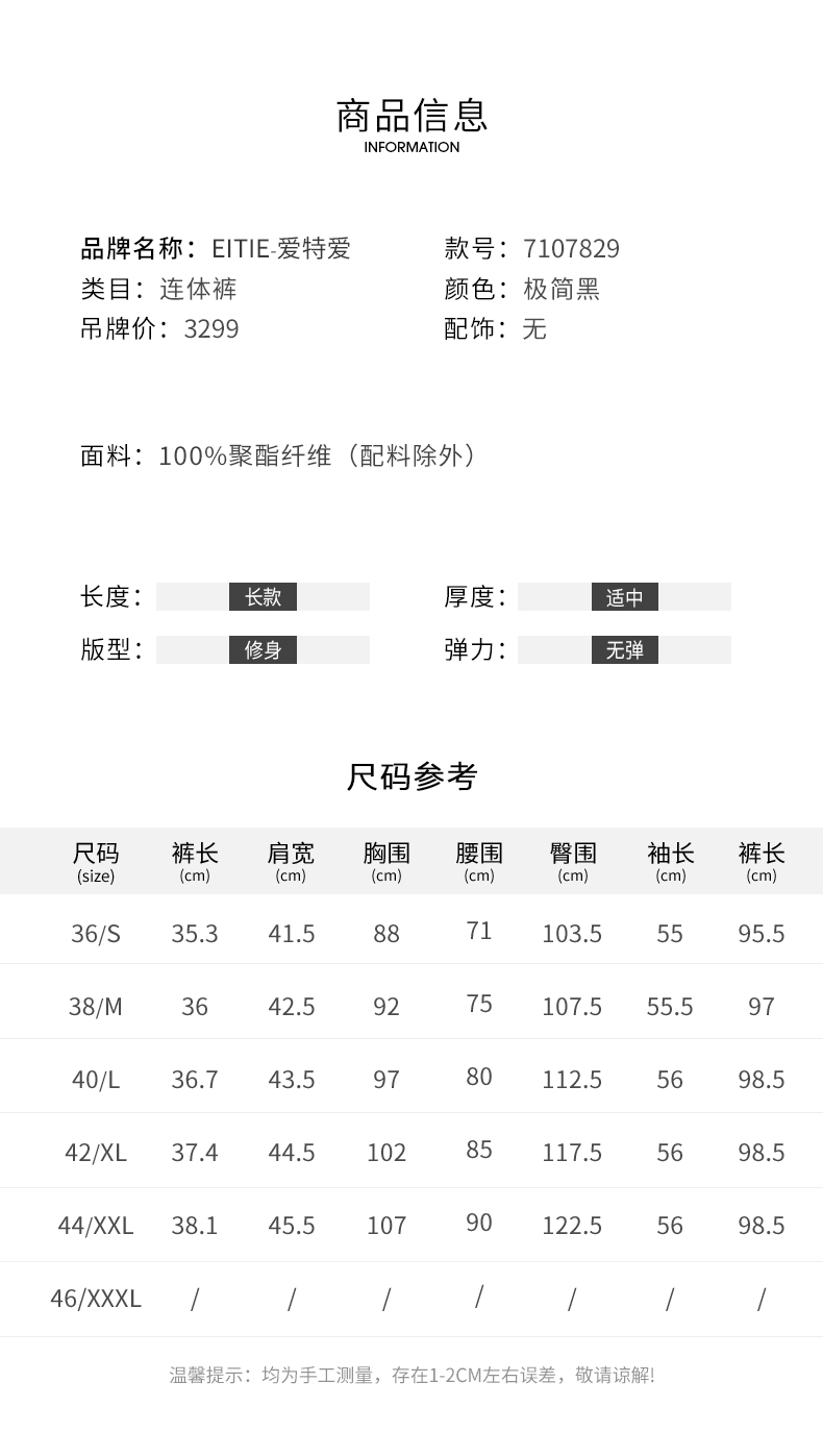 EITIE爱特爱秋季新款时尚干练职业通勤翻领显瘦连体裤女7107829