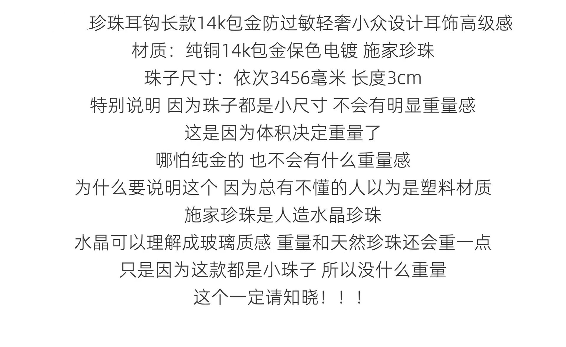 雀说新品施家珍珠耳钩长款14k包金防过敏轻奢小众设计耳饰高级感ALWBT202503004