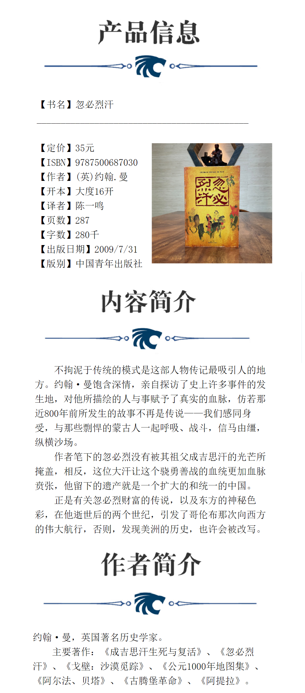 忽必烈汗(英)约翰.曼著/陈一鸣译 中国青年出版社