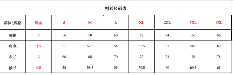帽衫与圆领的尺寸不太一样,大家仔细看下面的尺码表哈,衣长和袖长一致,区别是胸围和肩宽,快选参考推荐尺码是一致的。