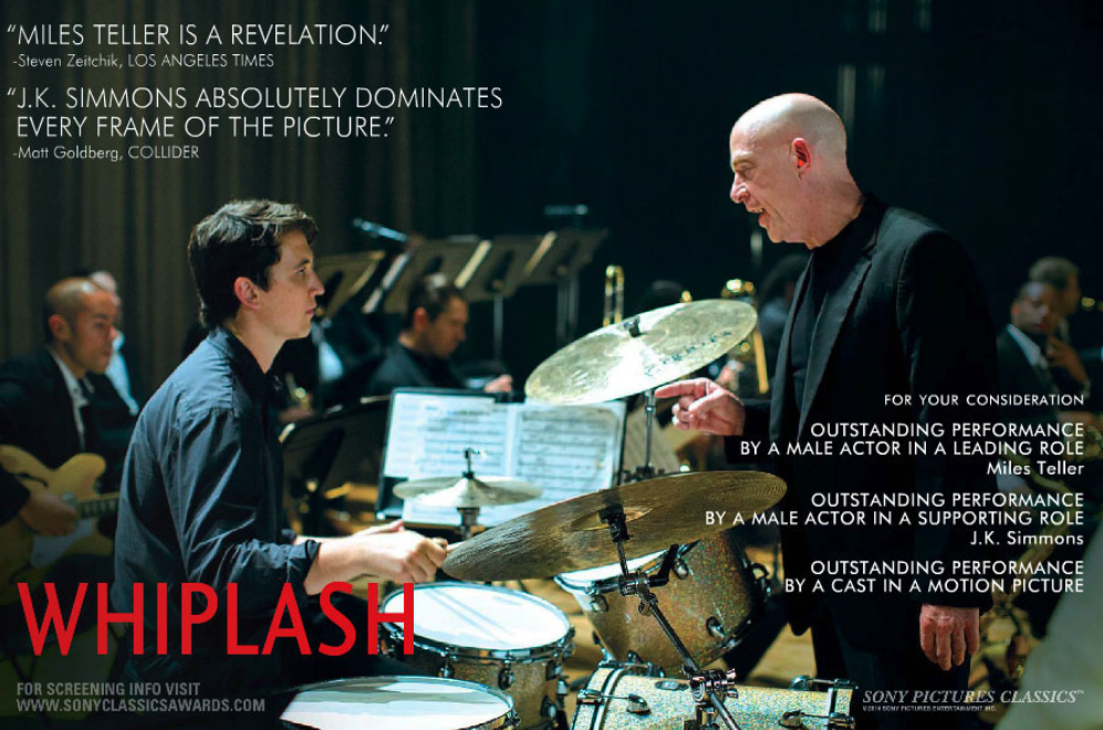 男主安德鲁与魔鬼导师弗莱切的对位,是新世纪以来好莱坞最精彩的双雄人物刻画,留着血的手是片中最重点的意象,设计是酱紫: